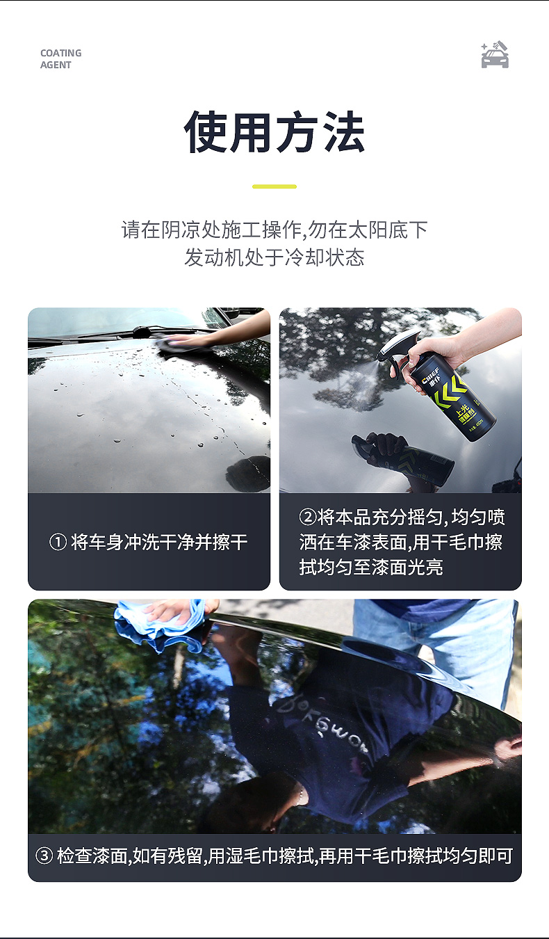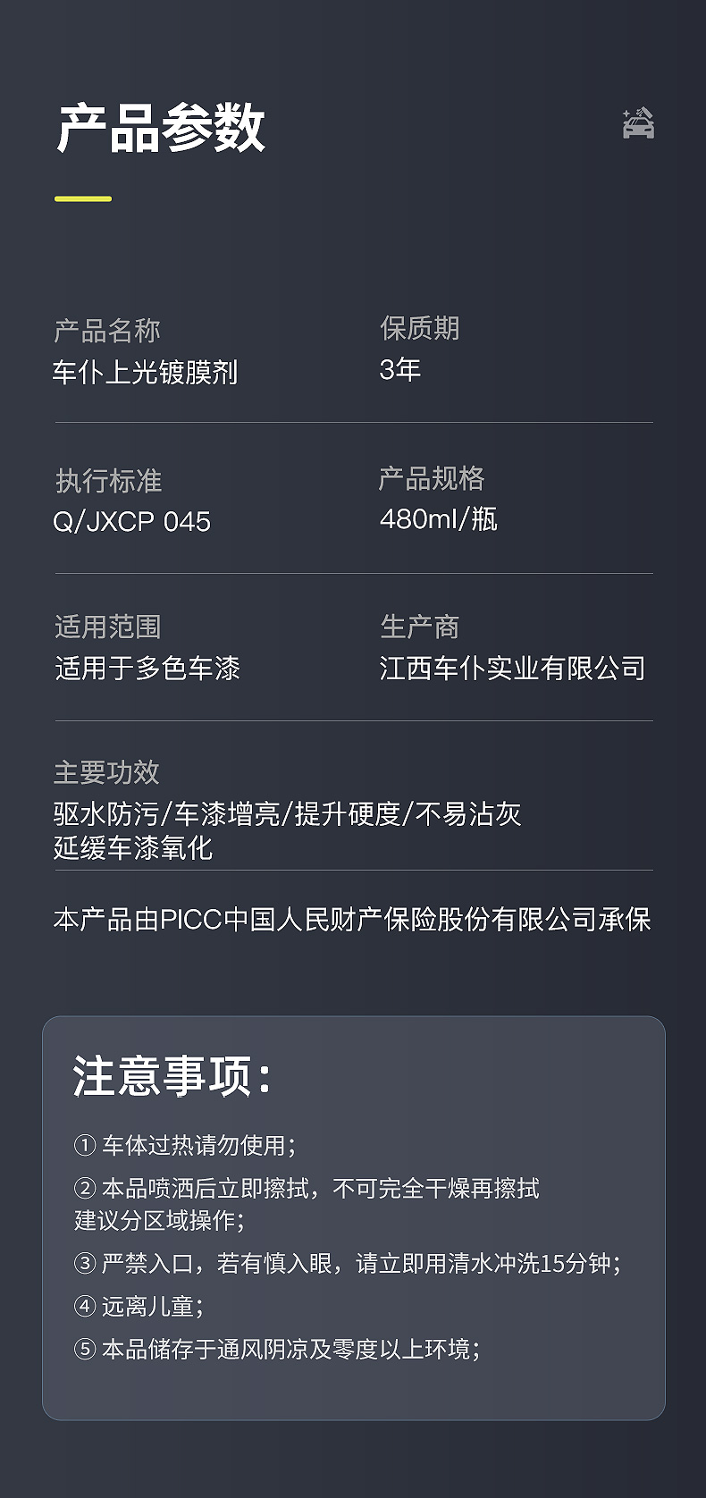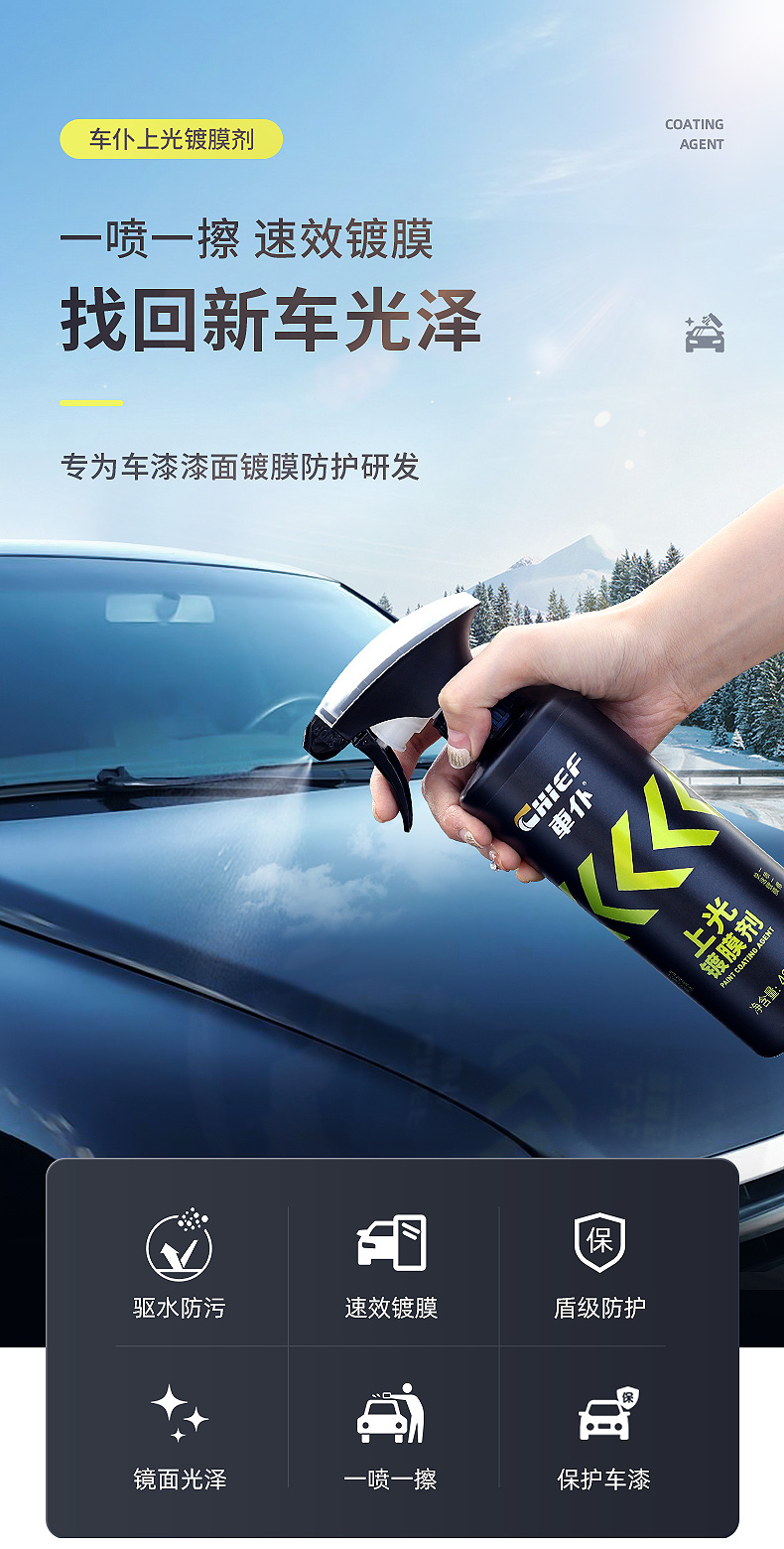 车仆汽车上光镀膜剂 喷雾水晶液体蜡 正品车漆镀晶 各色车漆通用