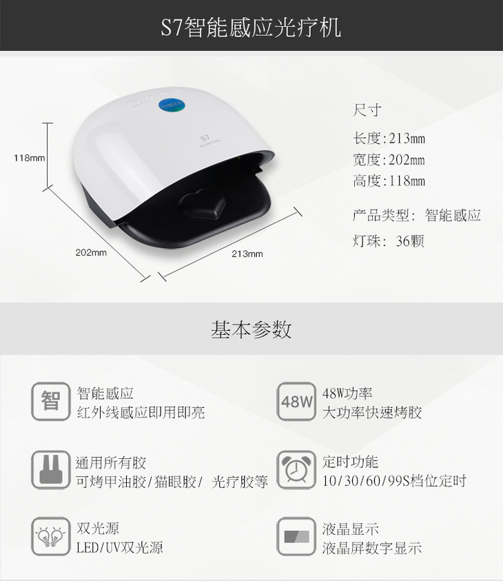 【美甲】48瓦智能美甲灯 四档定时可控无痛模式36灯珠甲油胶烤灯美甲工具