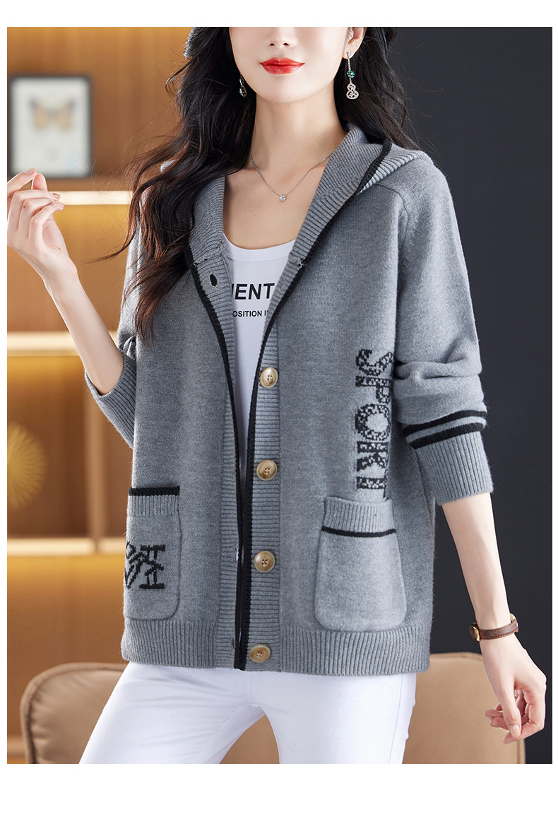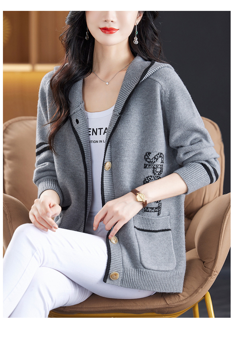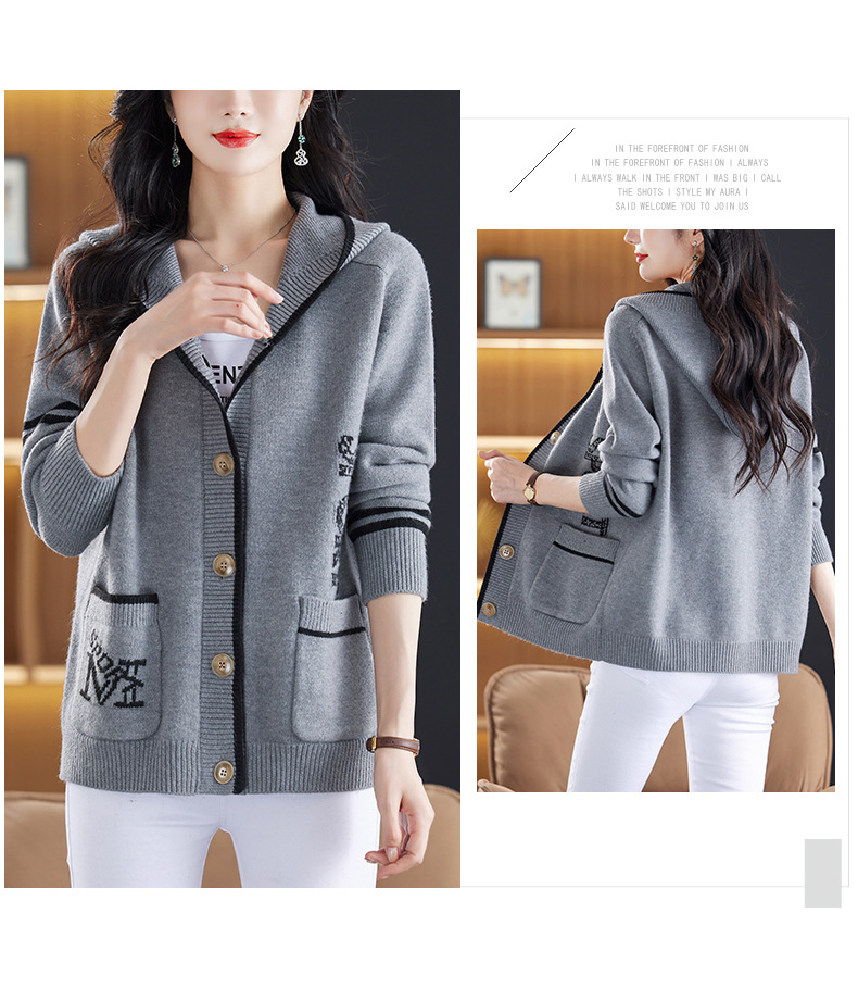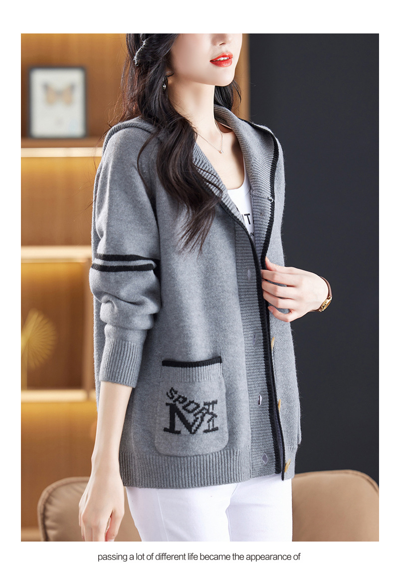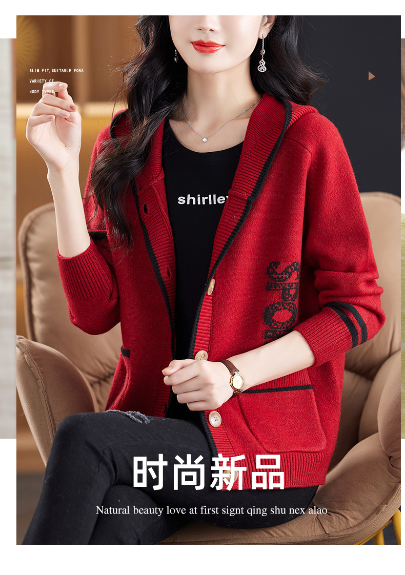 CC-26-8191连帽毛衣外套女短款宽松卫衣韩版外穿春秋刺绣外搭针织棒球服开衫