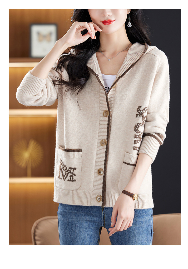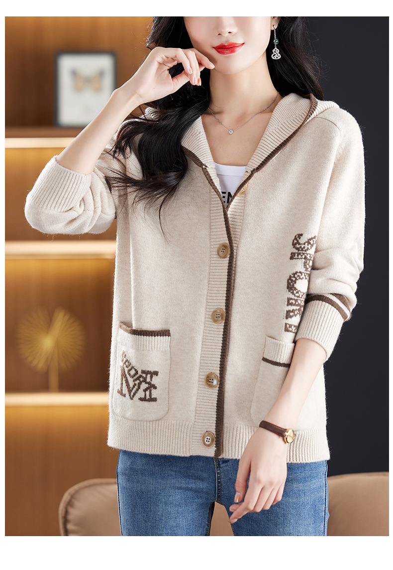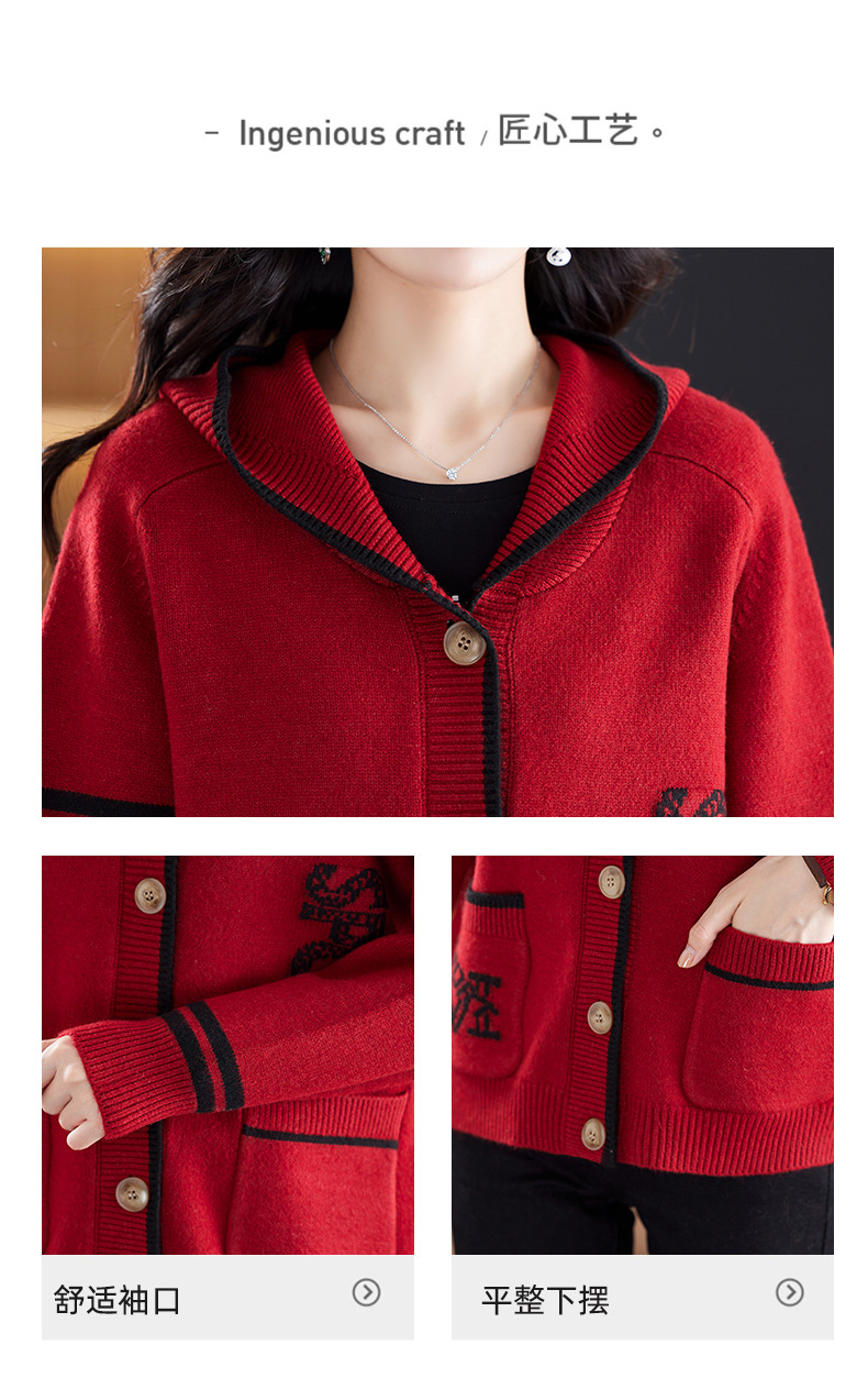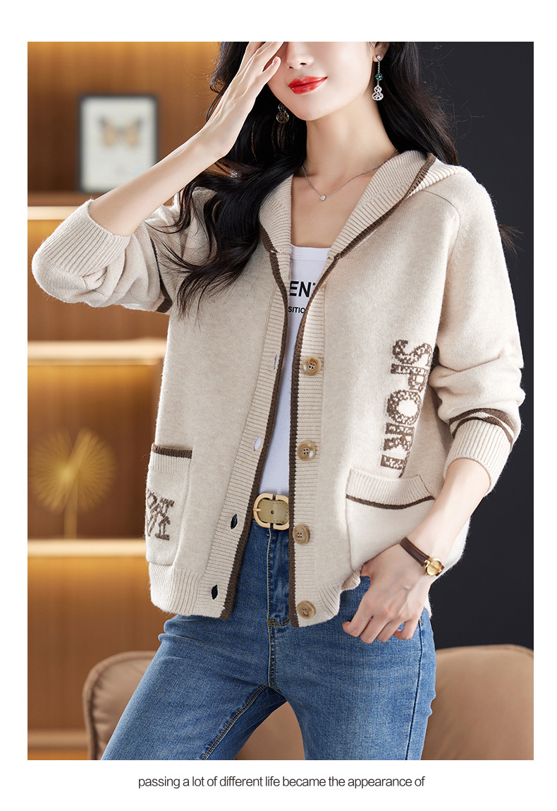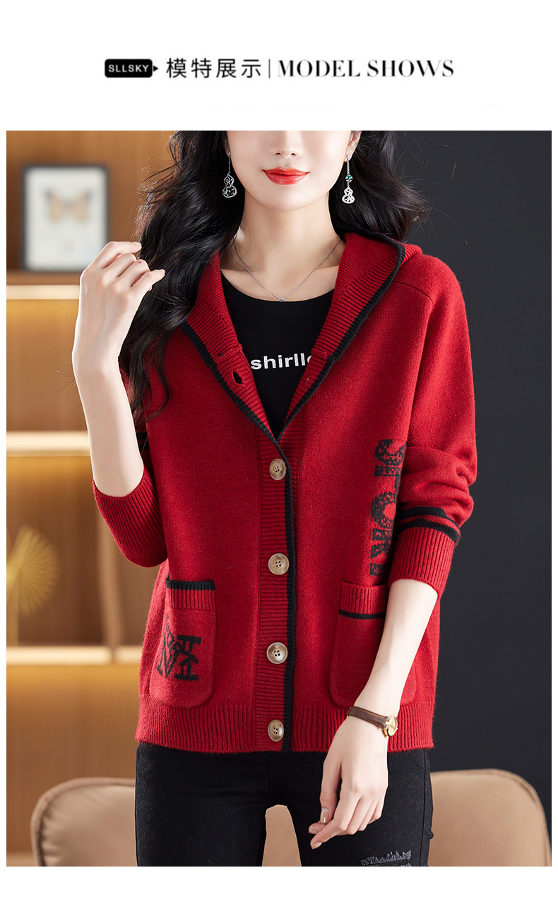 CC-26-8191连帽毛衣外套女短款宽松卫衣韩版外穿春秋刺绣外搭针织棒球服开衫