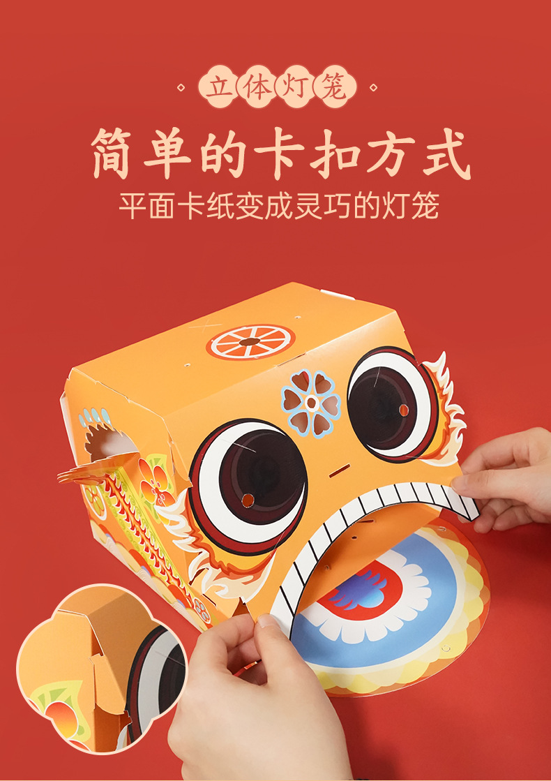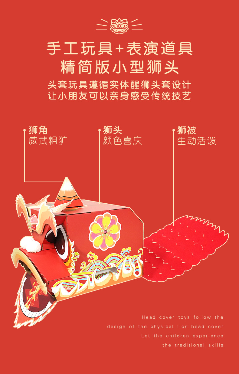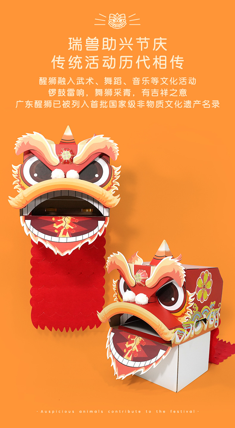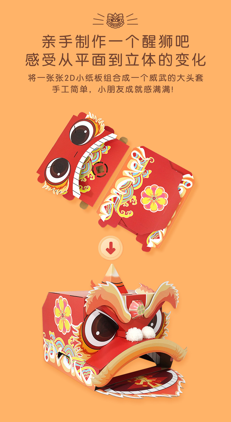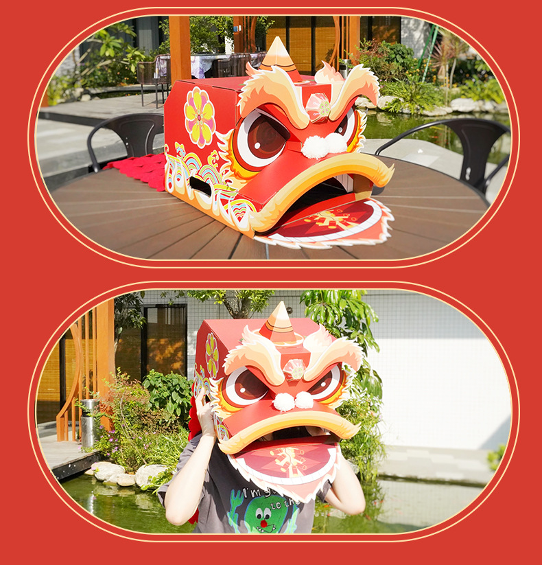 【喜庆年岁 舞狮兴盛】harpaper儿童手工DIY醒狮头套 醒狮灯 2023年幼儿园灯笼手工玩具 春节手工龙 舞龙头套