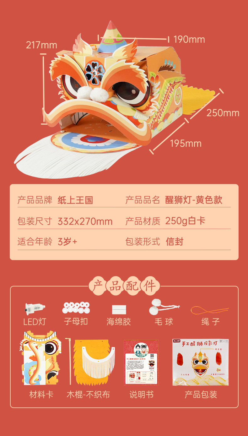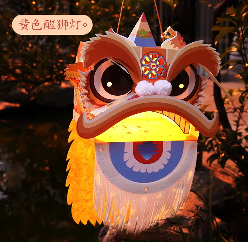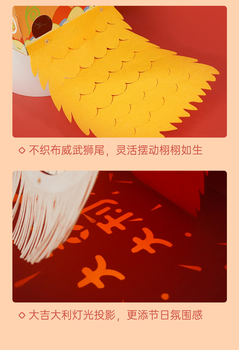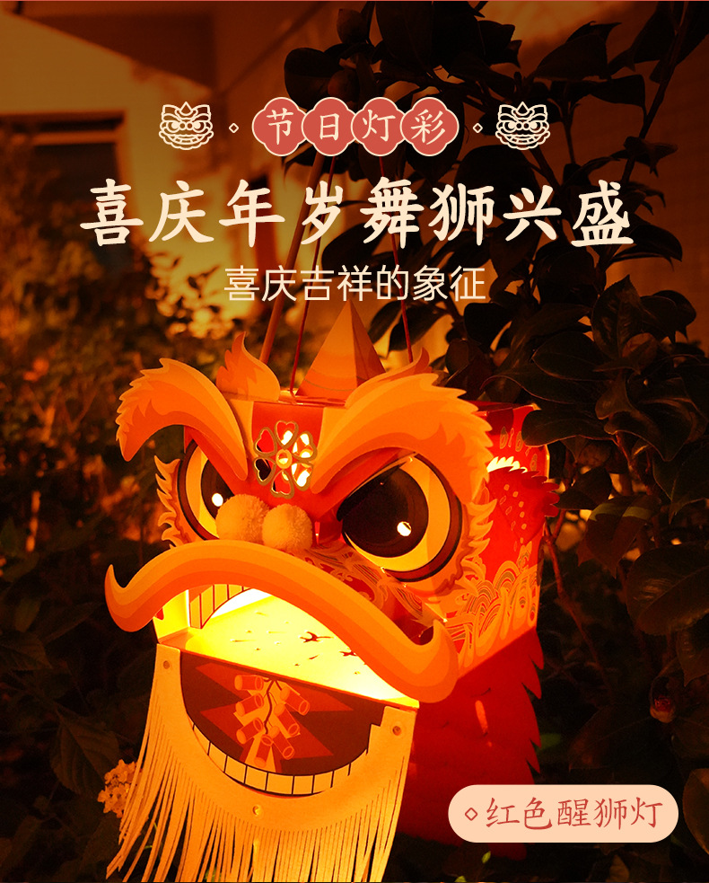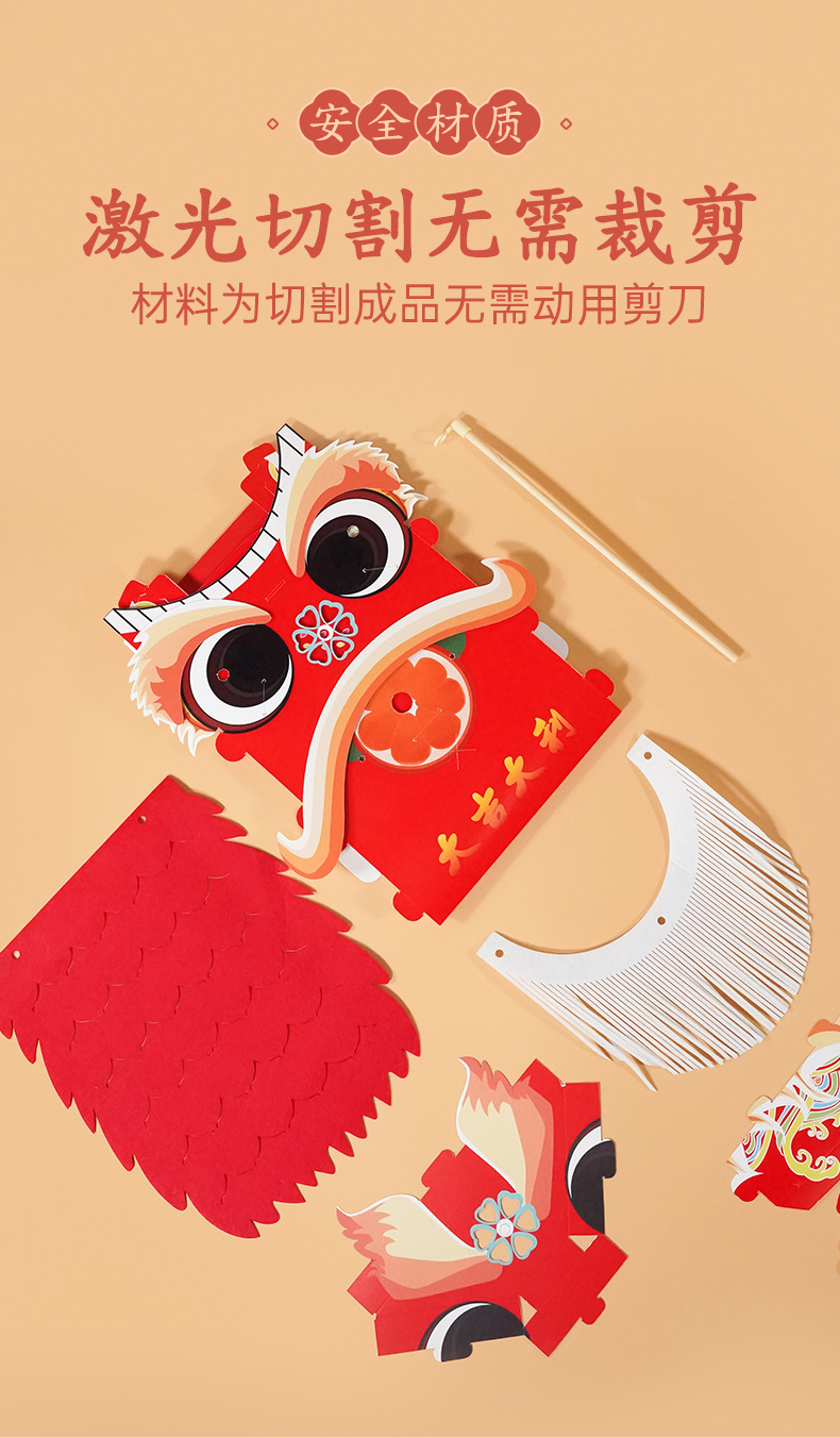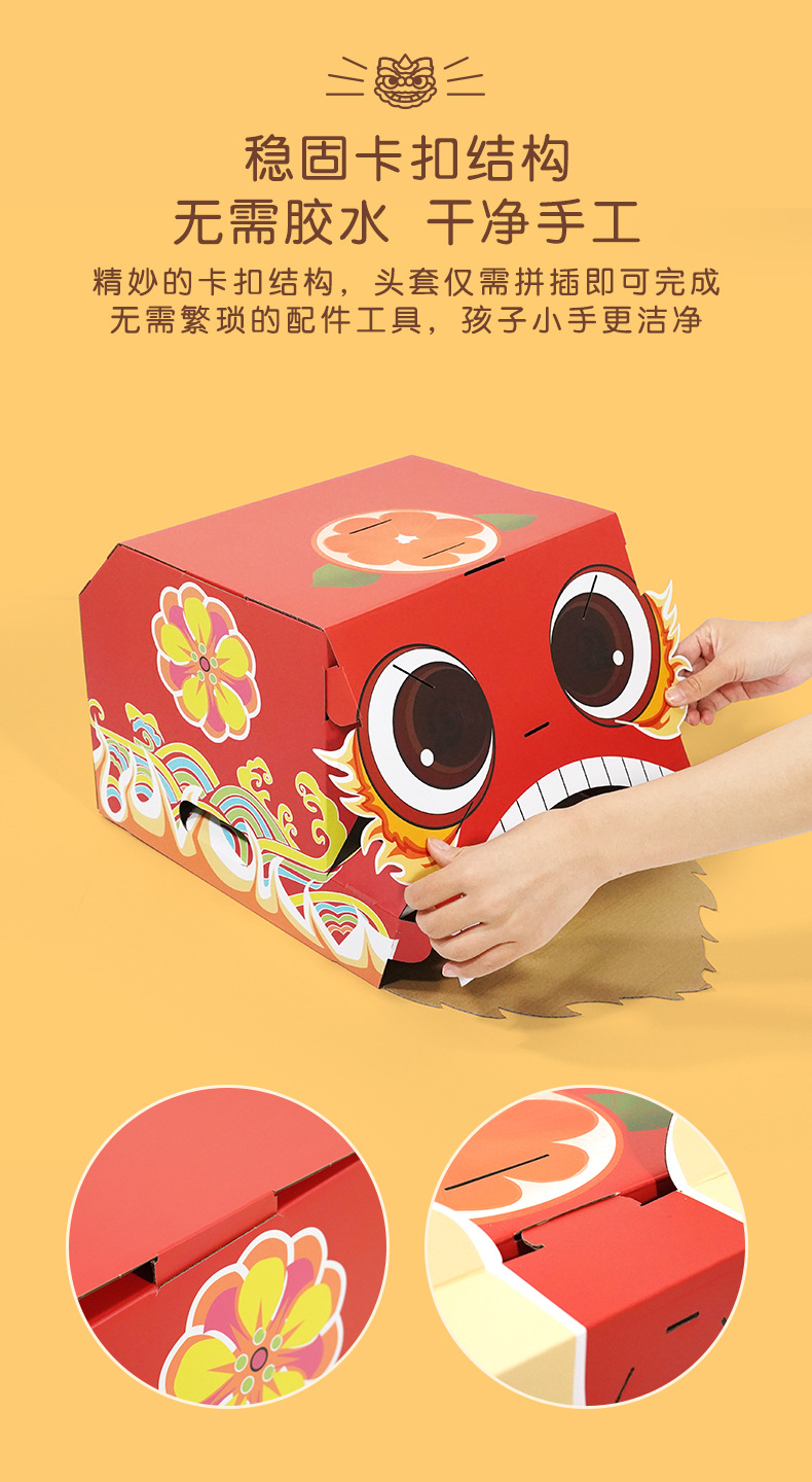 【喜庆年岁 舞狮兴盛】harpaper儿童手工DIY醒狮头套 醒狮灯 2023年幼儿园灯笼手工玩具 春节手工龙 舞龙头套