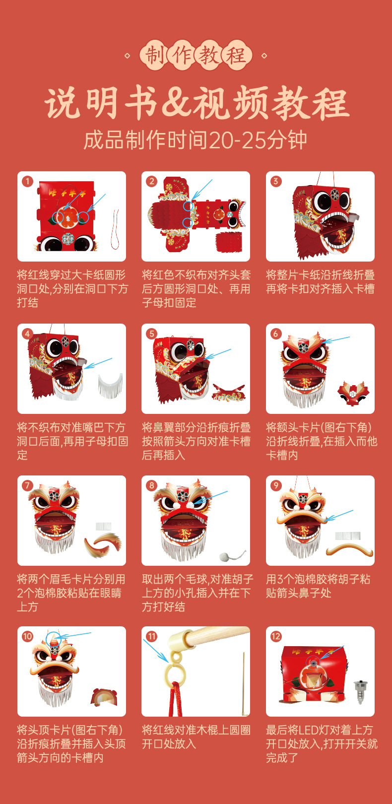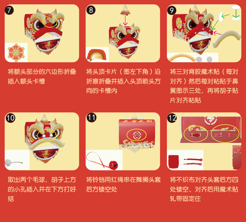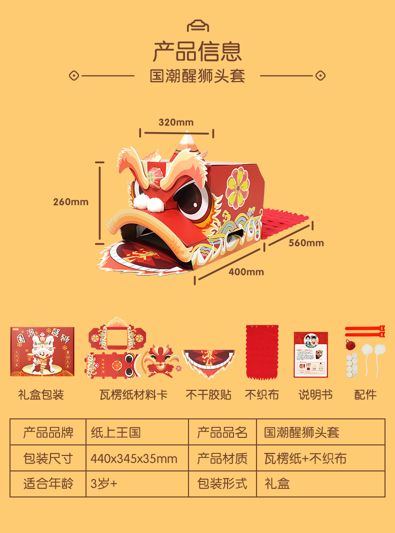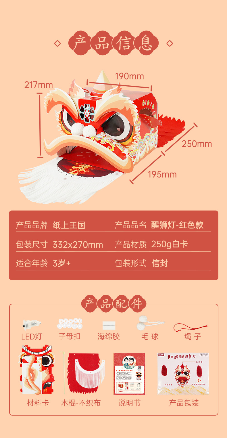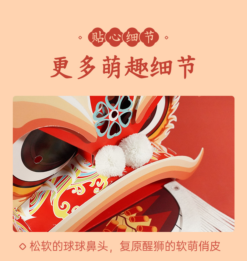 【喜庆年岁 舞狮兴盛】harpaper儿童手工DIY醒狮头套 醒狮灯 2023年幼儿园灯笼手工玩具 春节手工龙 舞龙头套