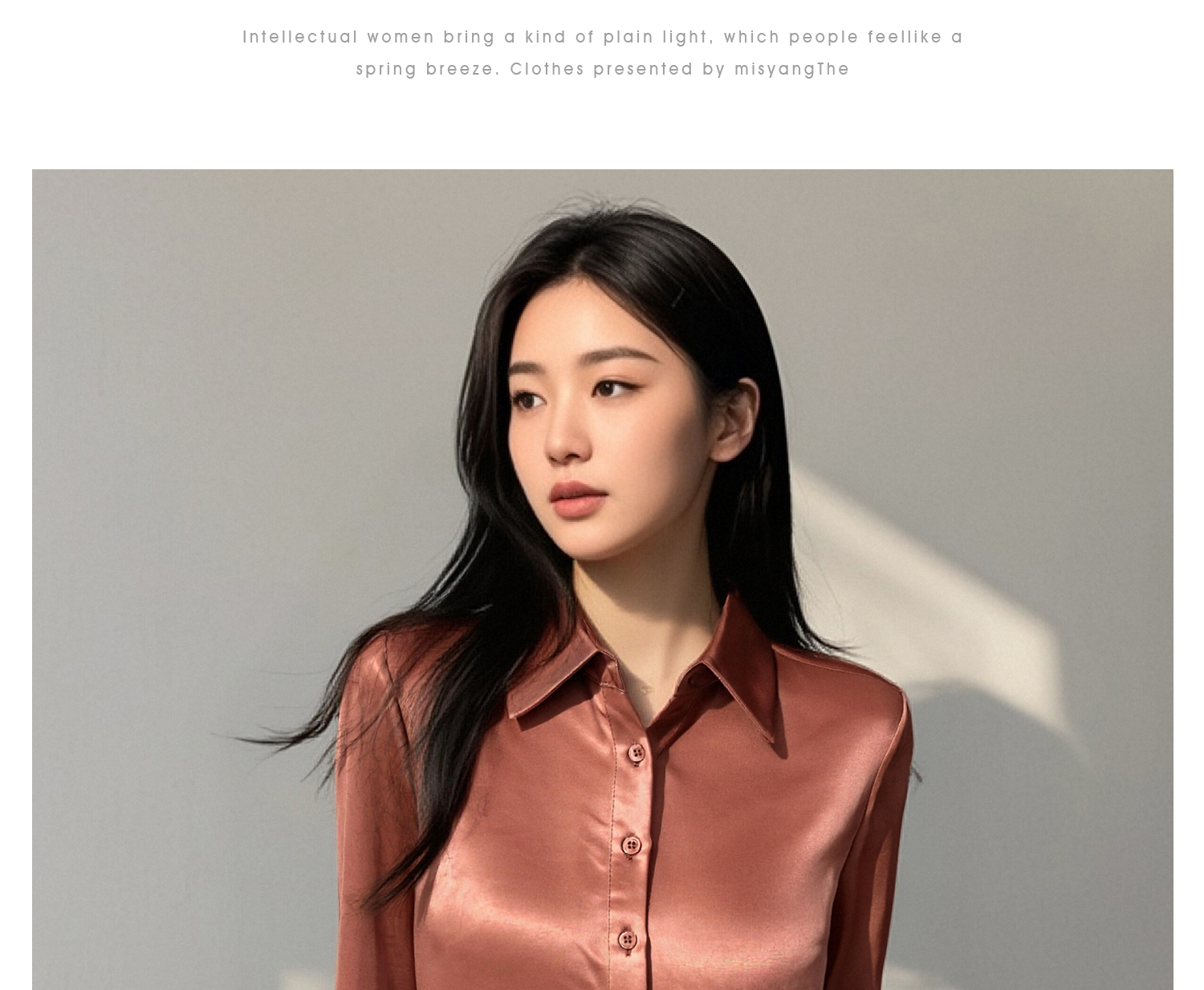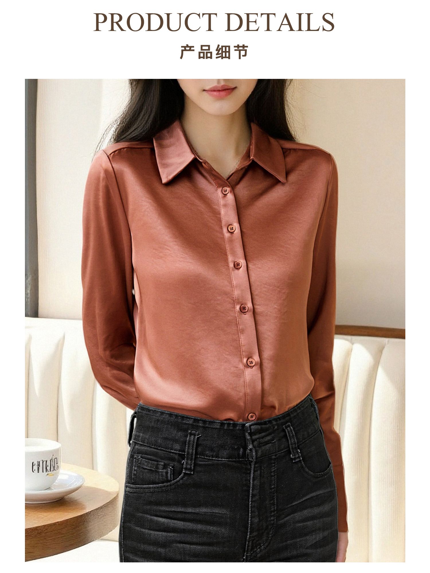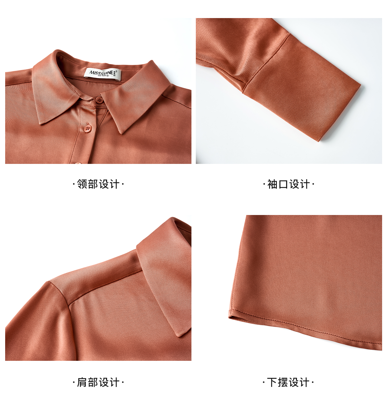 米思阳 知性优雅风 通勤OL简约直筒百搭粉桔色衬衫上衣女4926