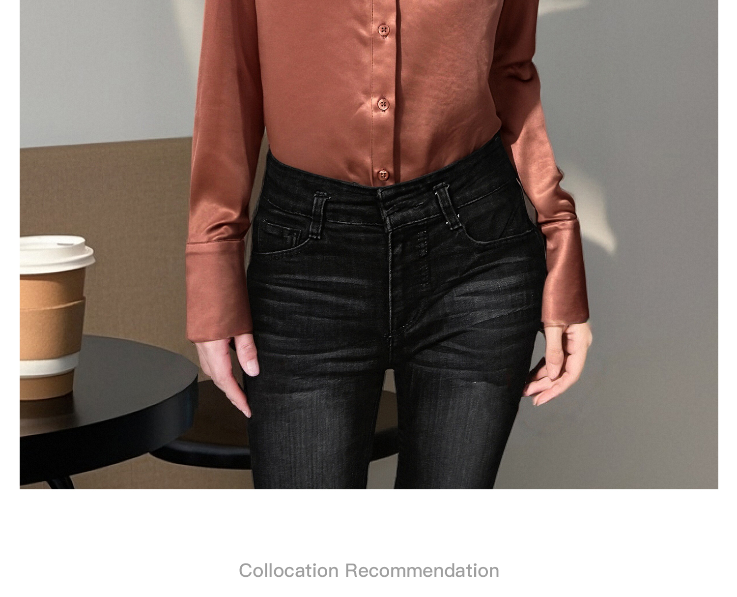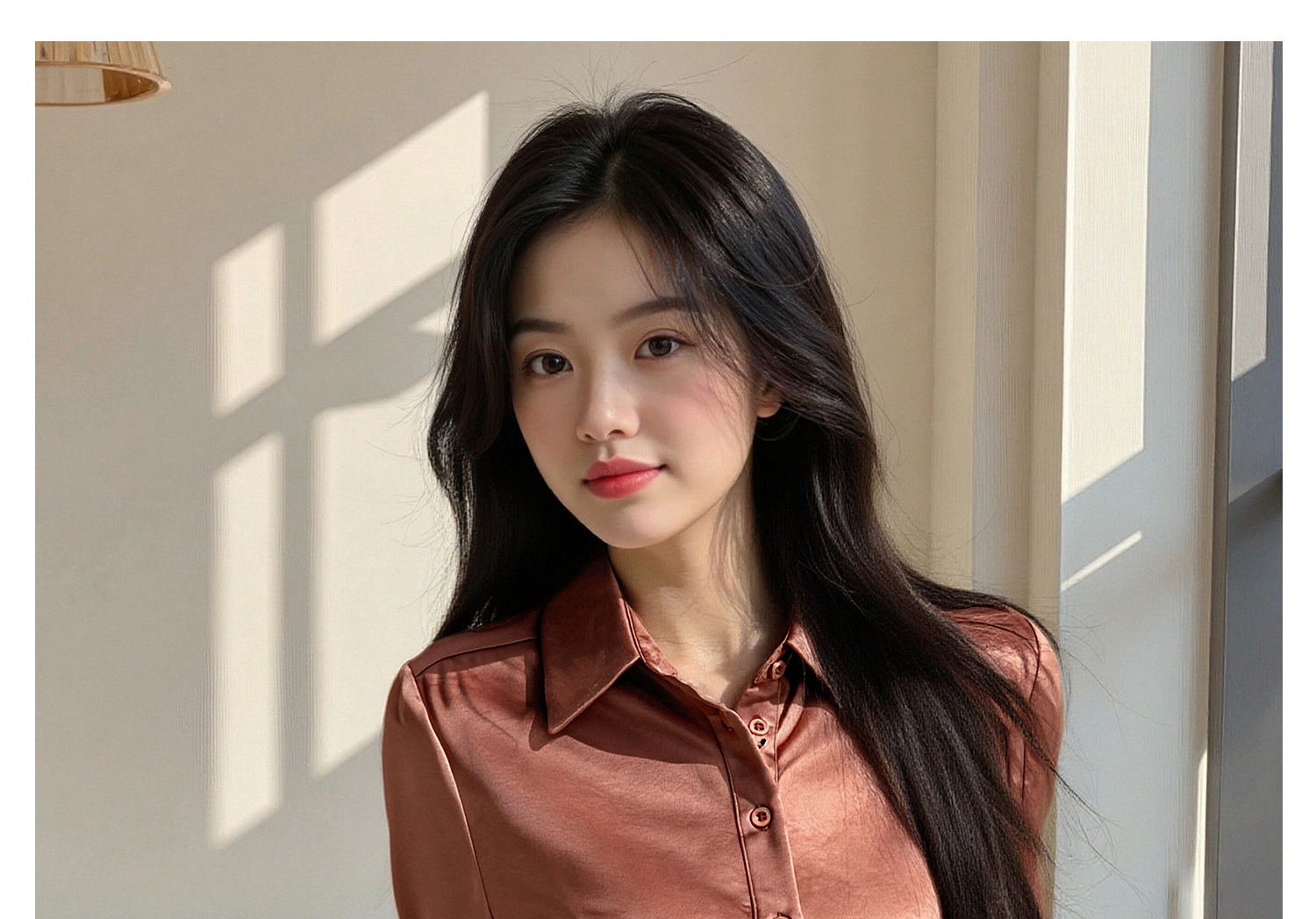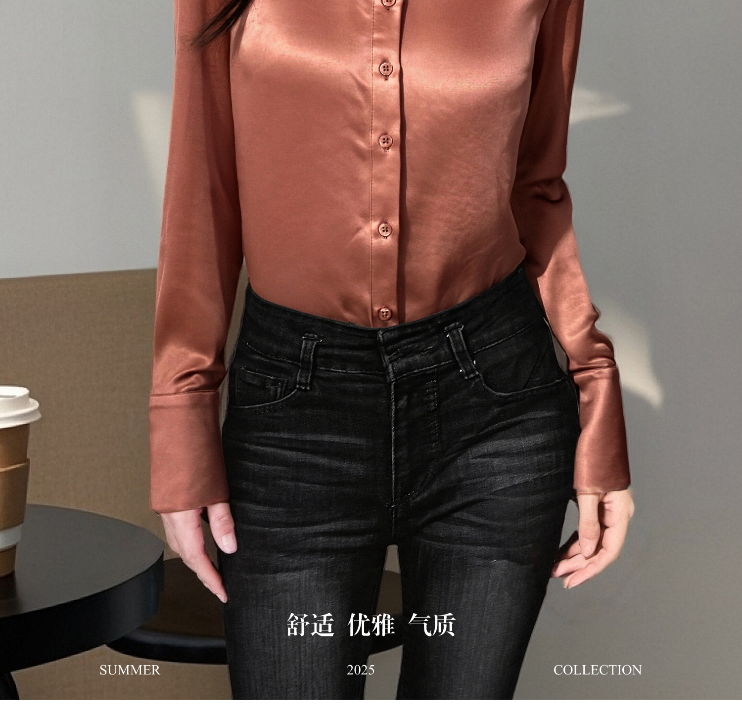 米思阳 知性优雅风 通勤OL简约直筒百搭粉桔色衬衫上衣女4926