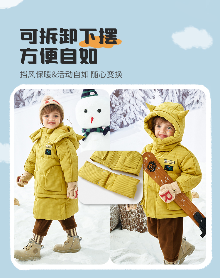 【清仓捡漏】【长短两穿】【90鸭绒】【90-120】【MQDmini】男童冬款保暖中长款羽绒服
