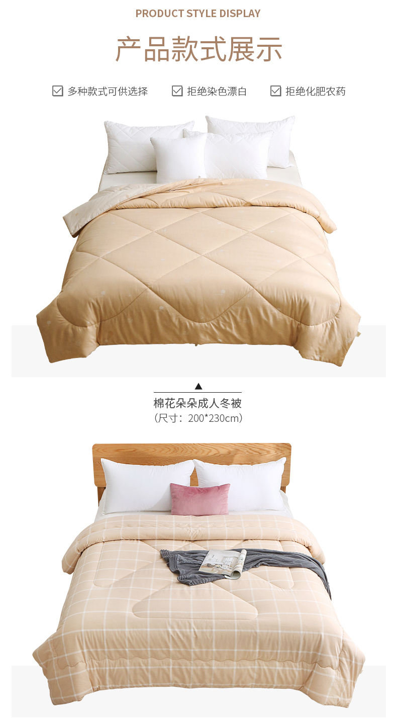 新品 素道有机彩棉秋冬棉被 加厚保暖被褥 健康透气被芯冬季纯棉双人被