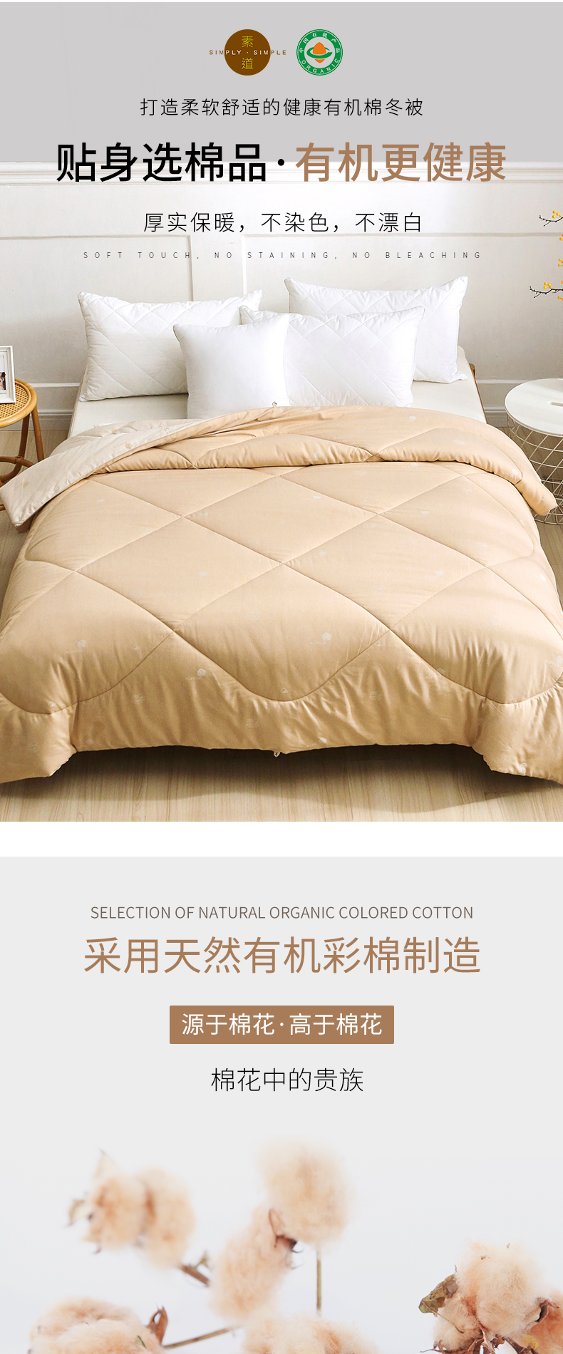 - 素道有机彩棉,源自2005年的健康纺织品牌,为上百万户家庭解决“穿”的健康、“用”的放心的问题。