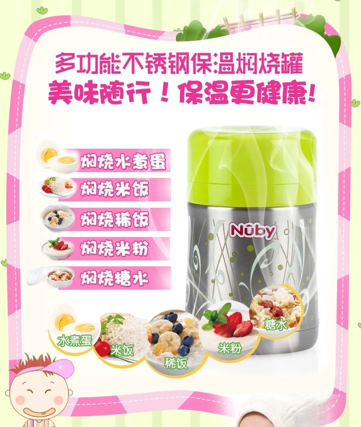Nuby努比焖烧杯保温壶儿童宝宝保温杯不锈钢真空保温懒人饭锅简易便携焖粥