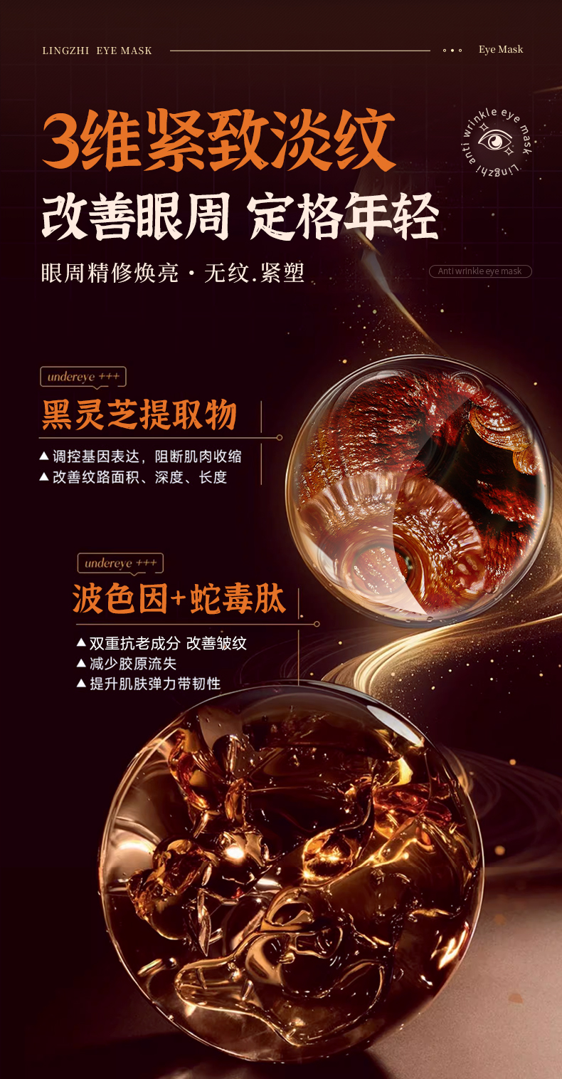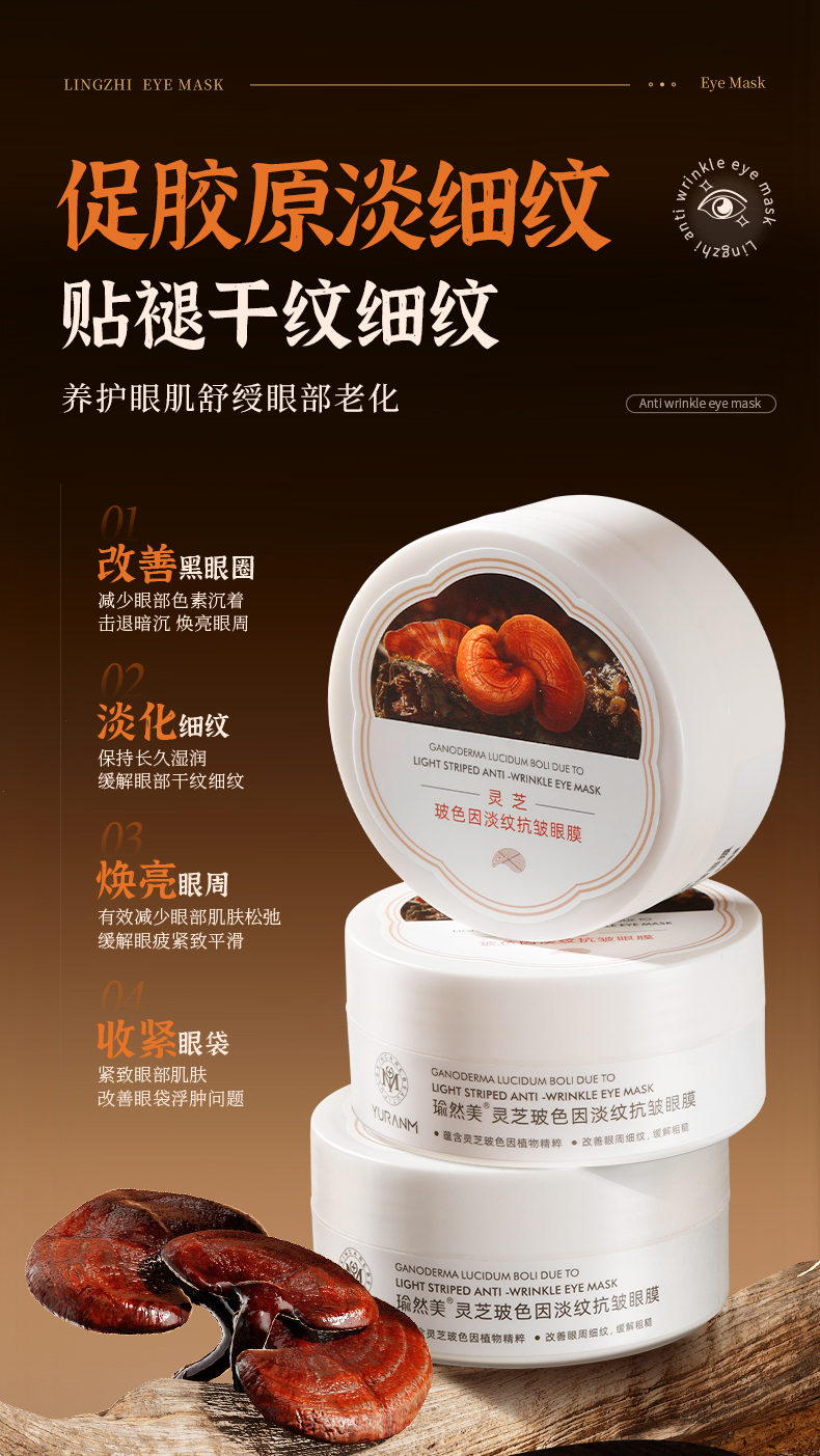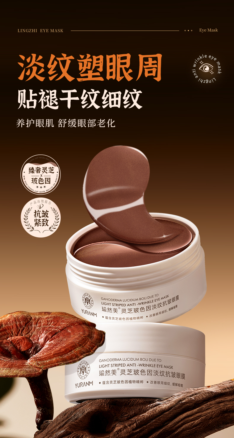 【微信会员专属】瑜然美灵芝玻色因淡纹抗皱眼膜紧致抗皱淡化黑眼圈细纹眼袋眼贴膜