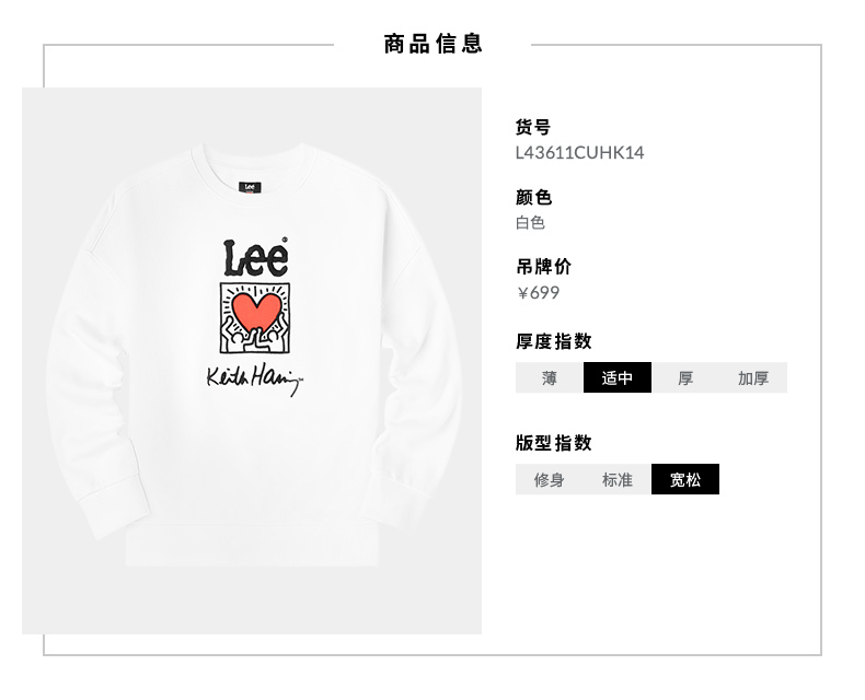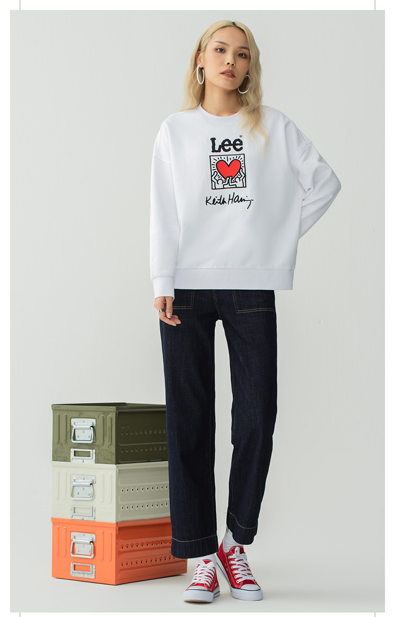 【Keith Haring联名】Lee 21新品宽松白色女卫衣L43611CUHK14