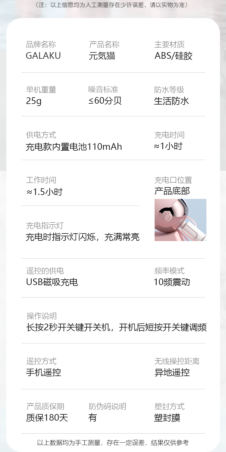GALAKU 元气猫 小巧迷你按摩震动棒 小程序远程无线遥控智能按摩隐蔽外观元气猫手机控制远程异地互动女用自慰器