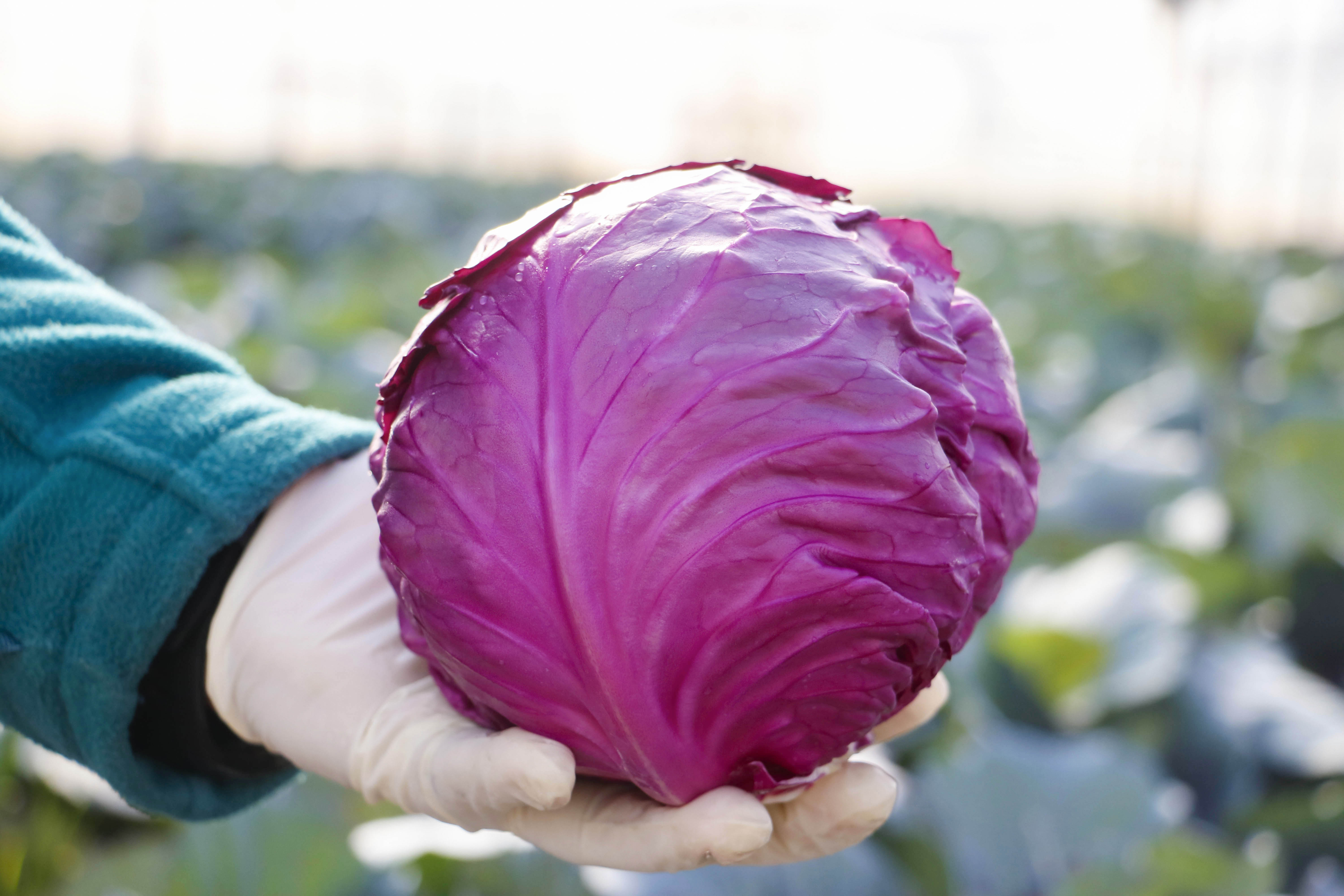 圆滚滚的紫甘蓝,叶片紧实,紫得鲜亮诱人。它富含花青素和维生素 C,脆嫩清甜,生吃拌沙拉解腻,清炒、做泡菜也超绝,耐存又百搭,妥妥的餐桌 “紫色宝藏”。