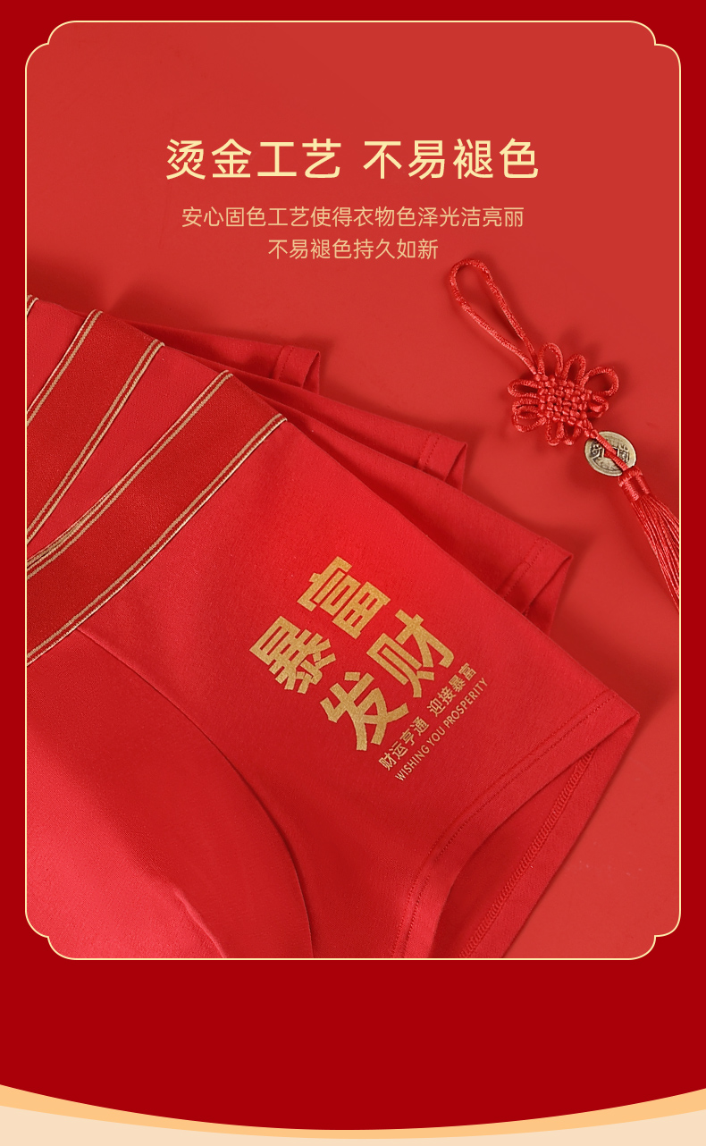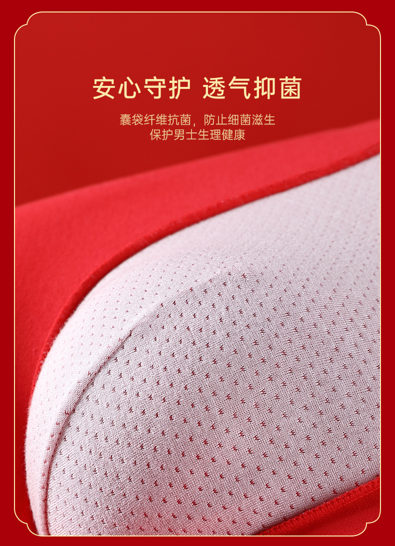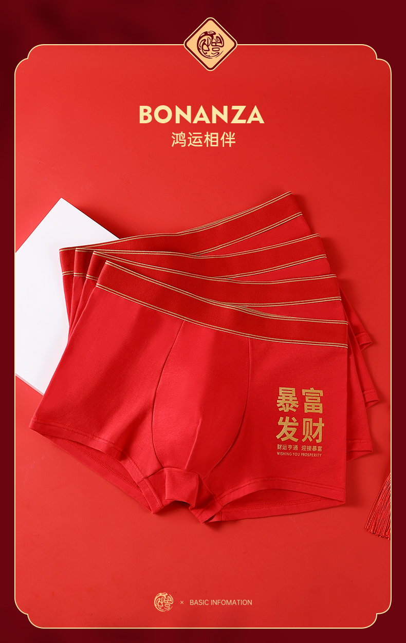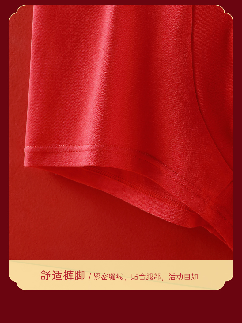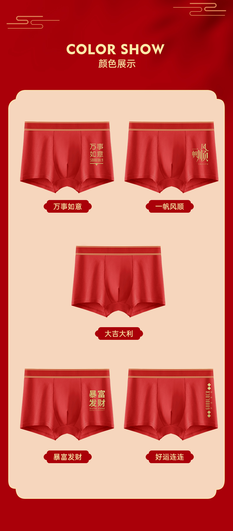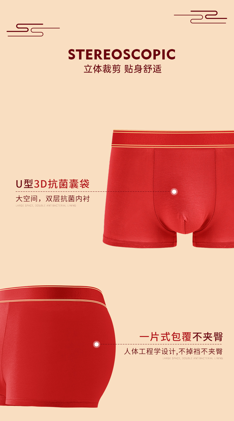 【2条装】男士大红色新年纯棉印花透气蚕丝聚乳酸抑菌底裆男生本命年内裤-58031