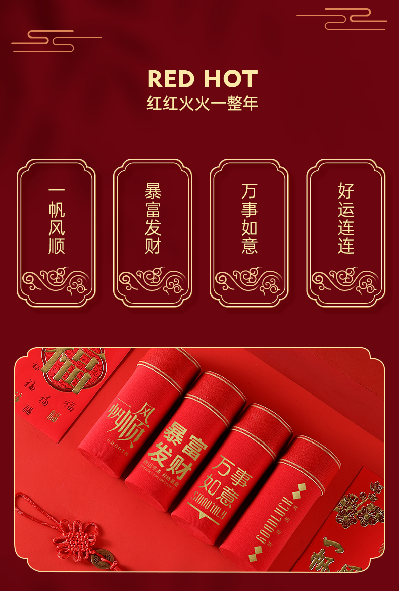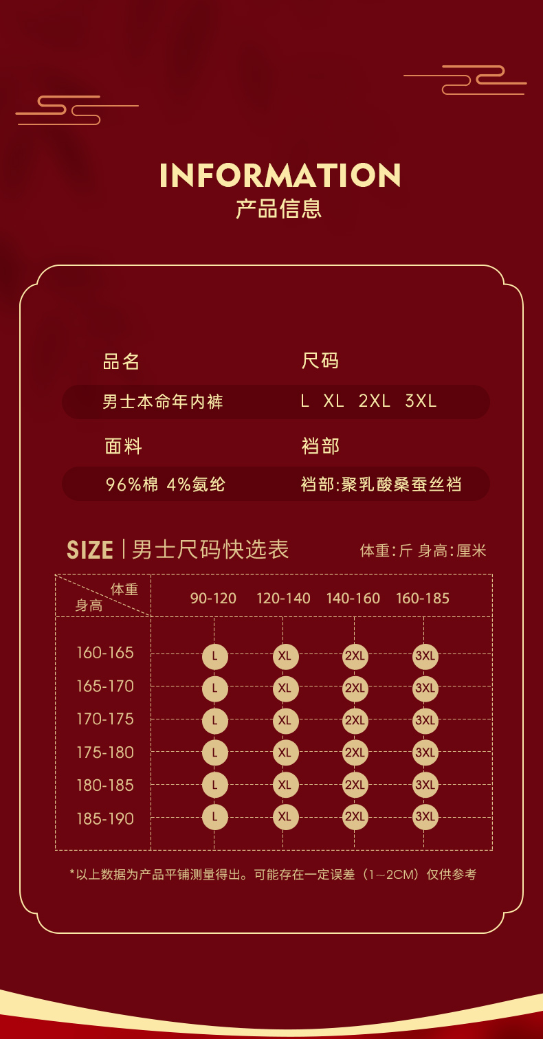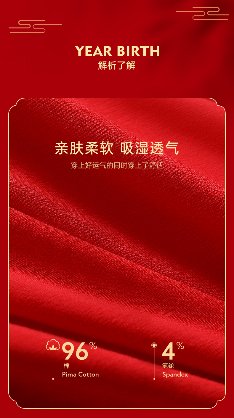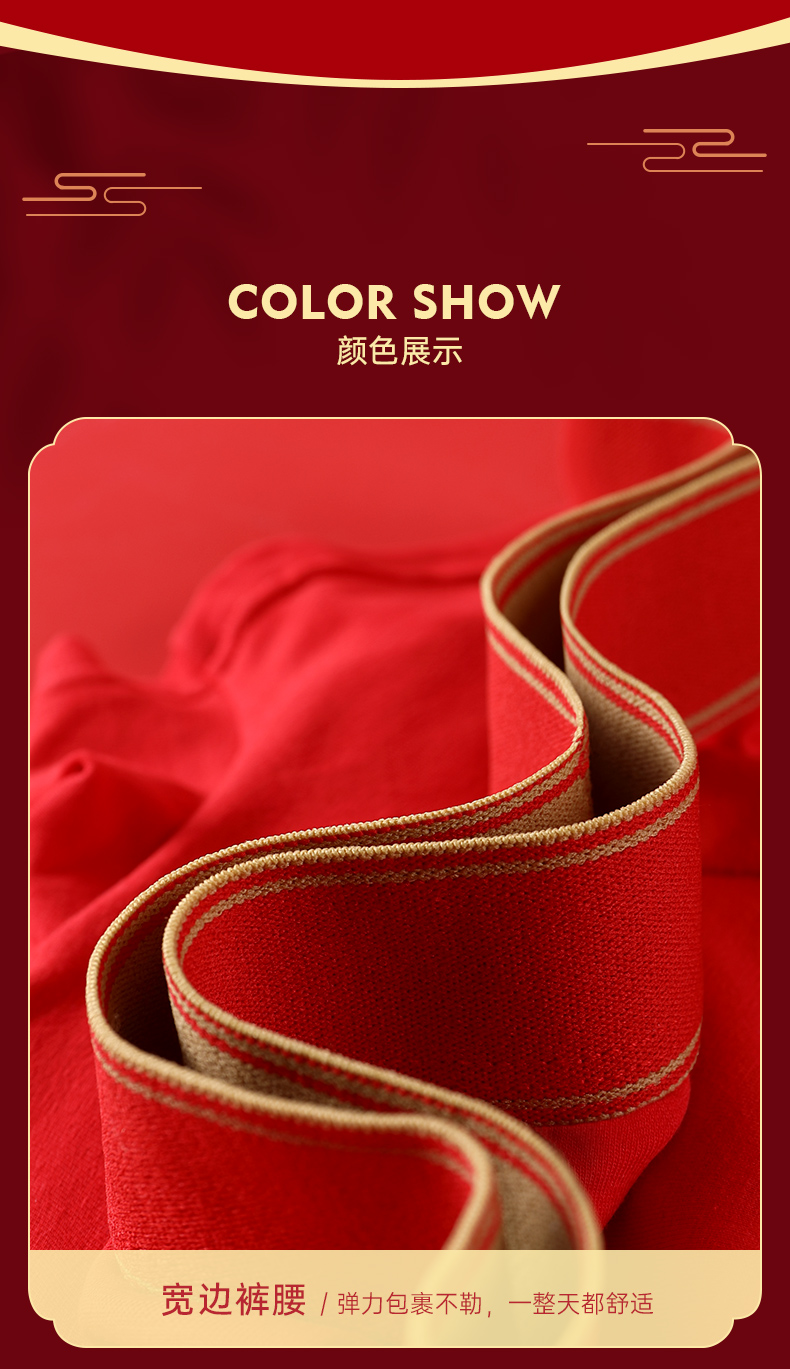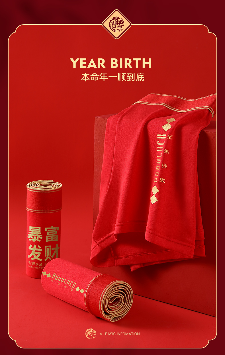 【2条装】男士大红色新年纯棉印花透气蚕丝聚乳酸抑菌底裆男生本命年内裤-58031