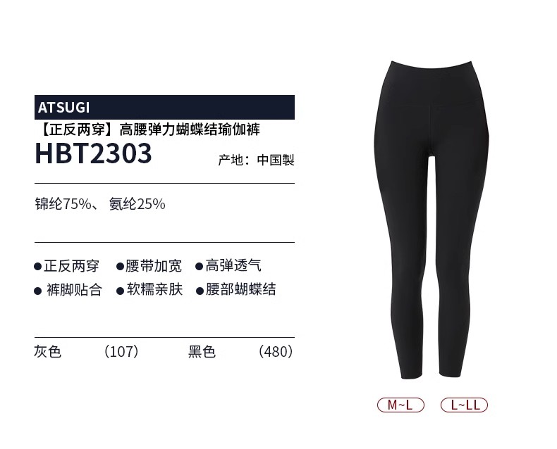 厚木BT2303蝴蝶结装饰瑜伽裤: