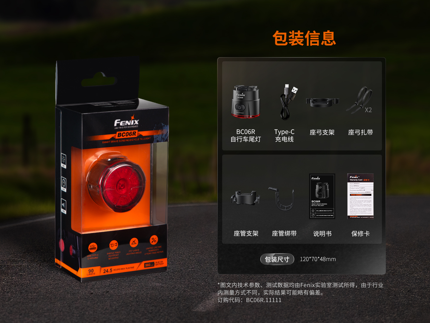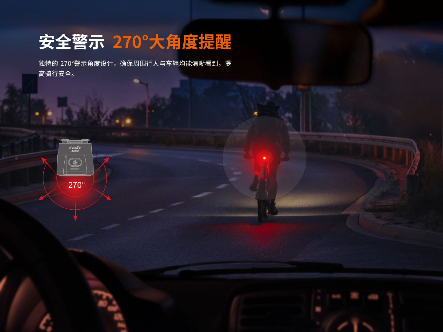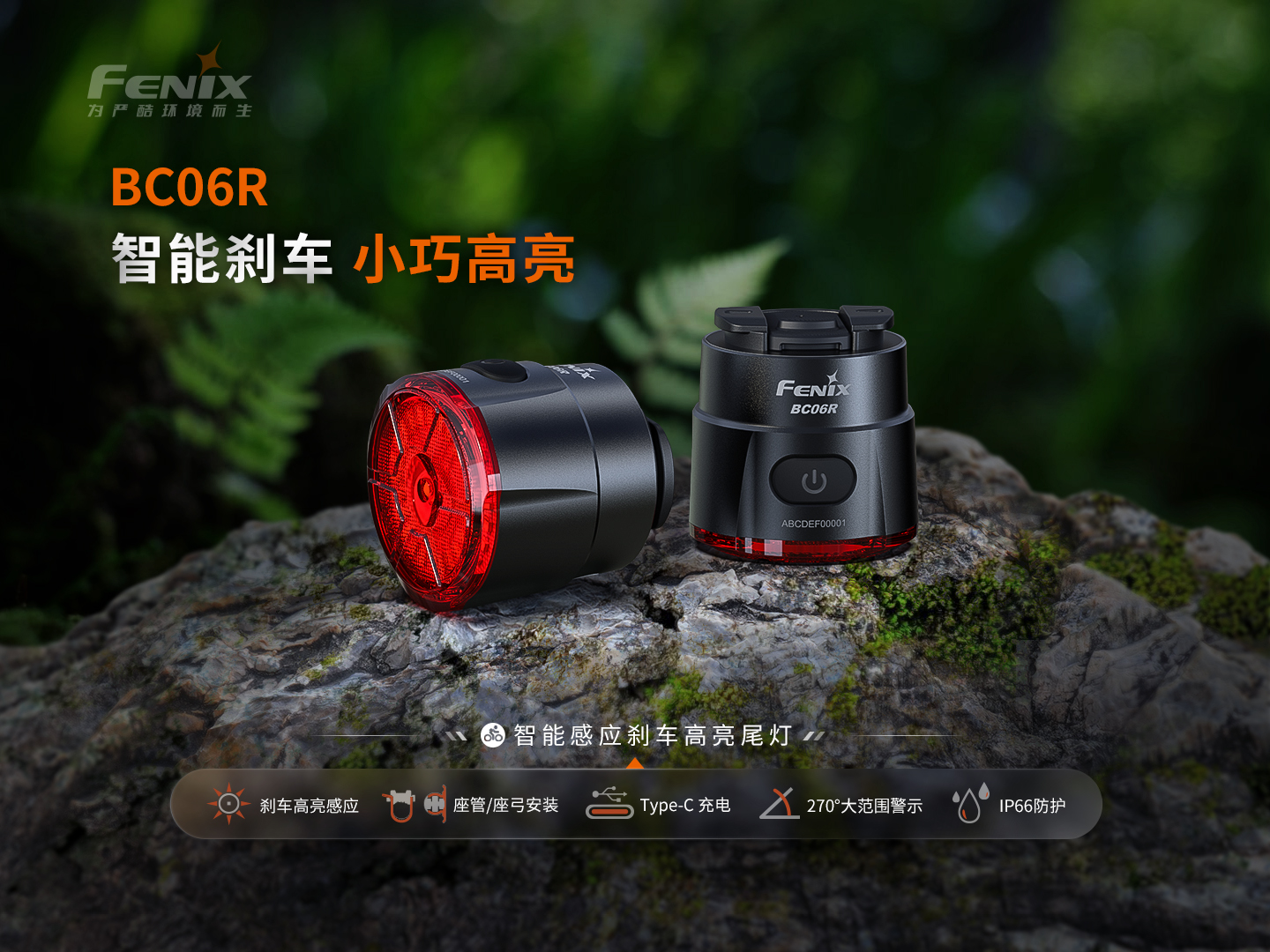 Fenix菲尼克斯BC06R高亮自行车尾灯type-c口充电山地车夜间骑行警示灯