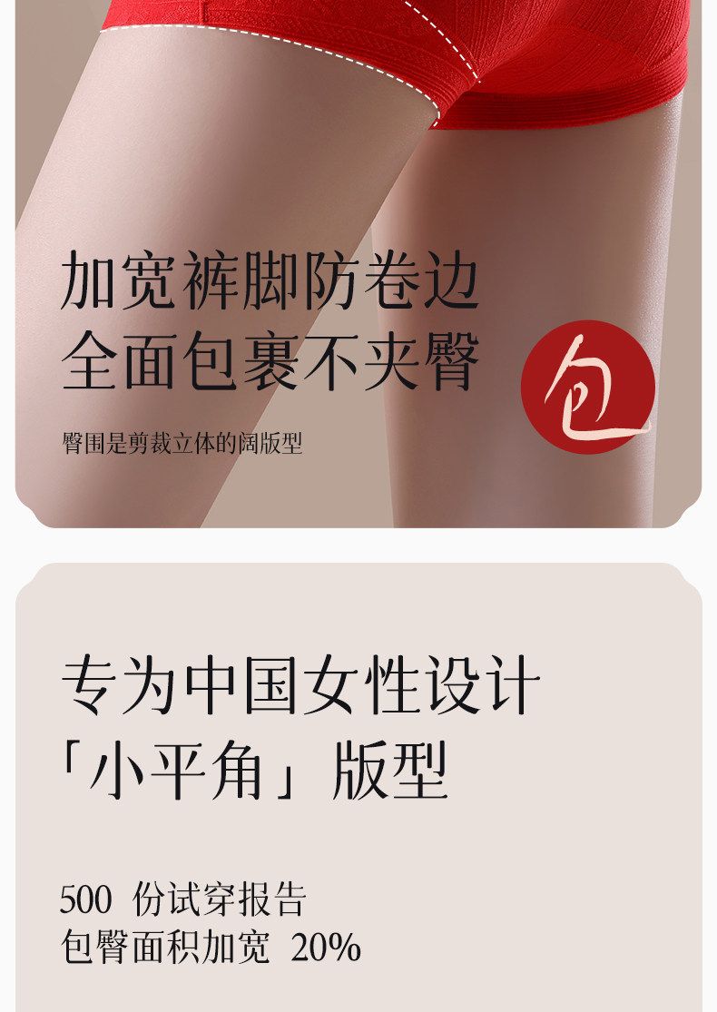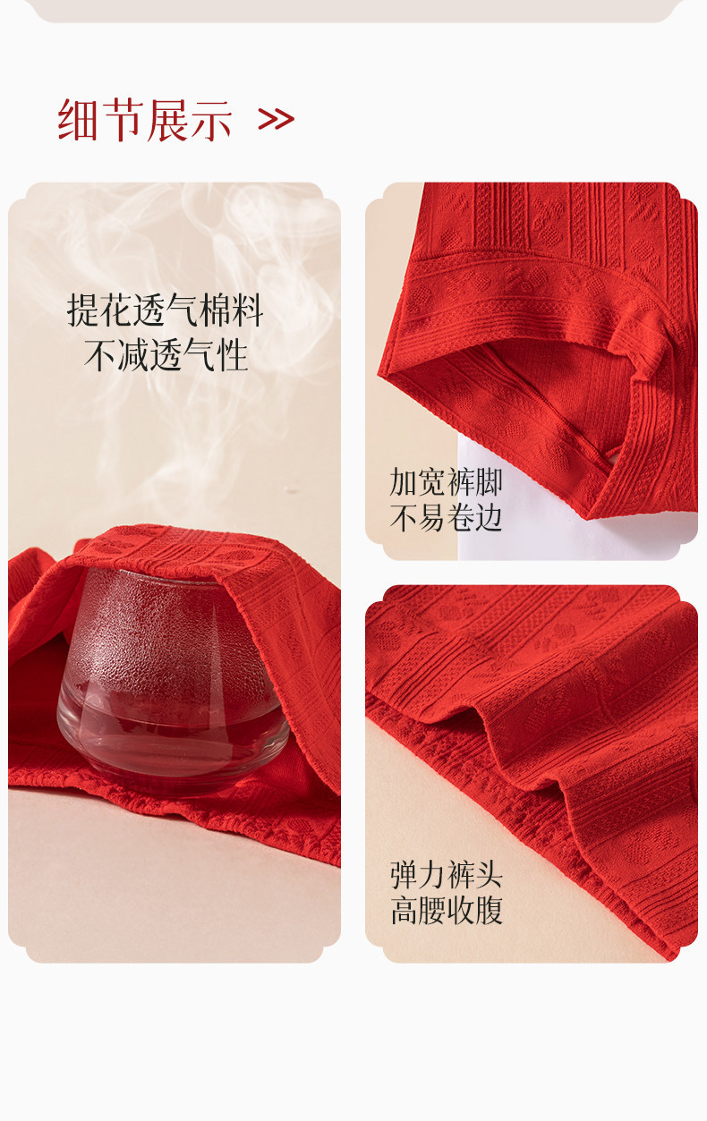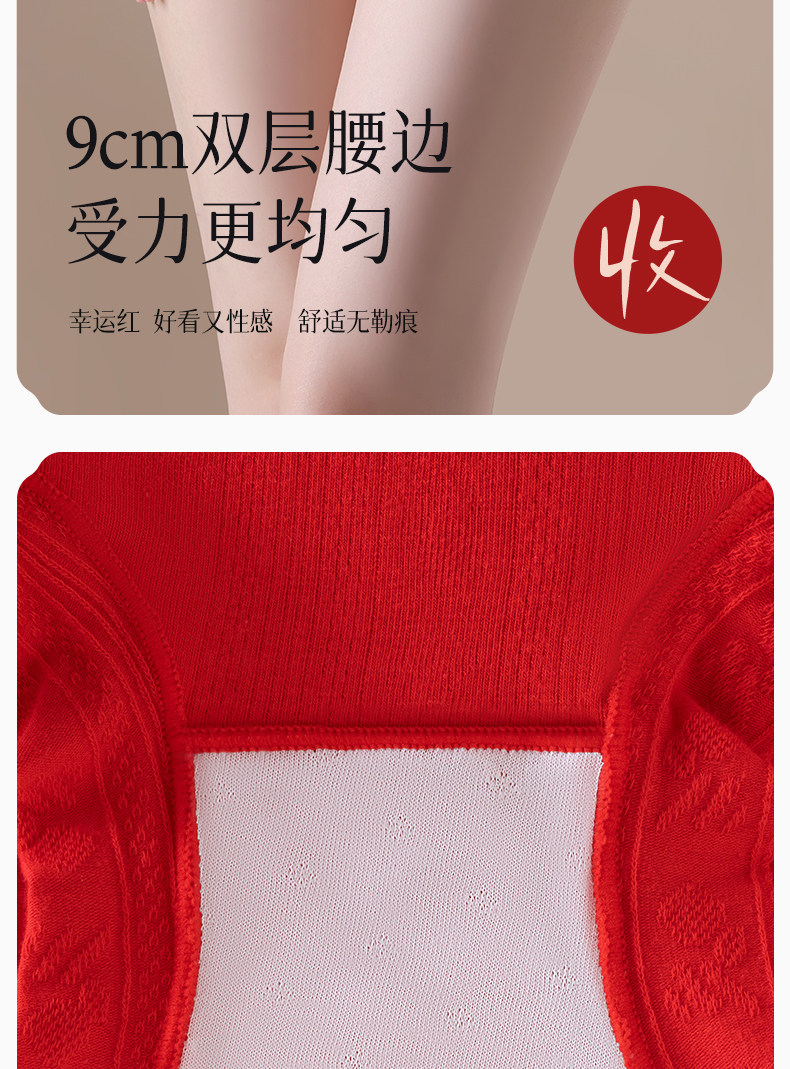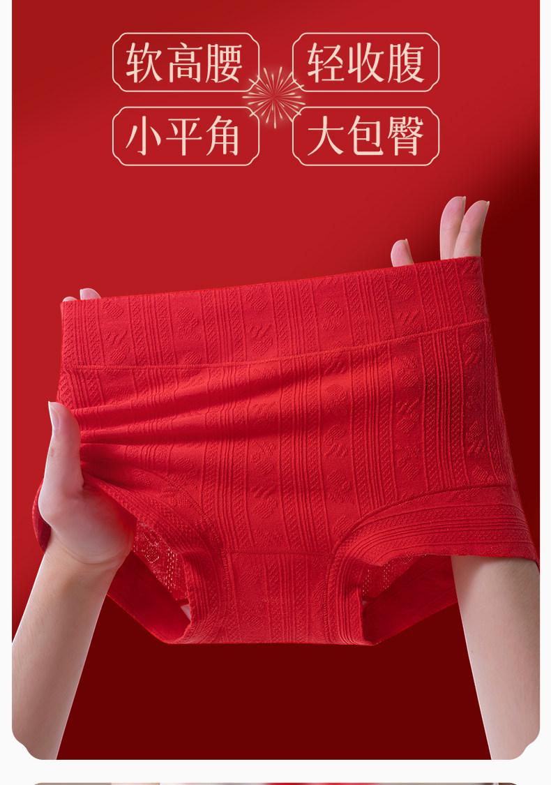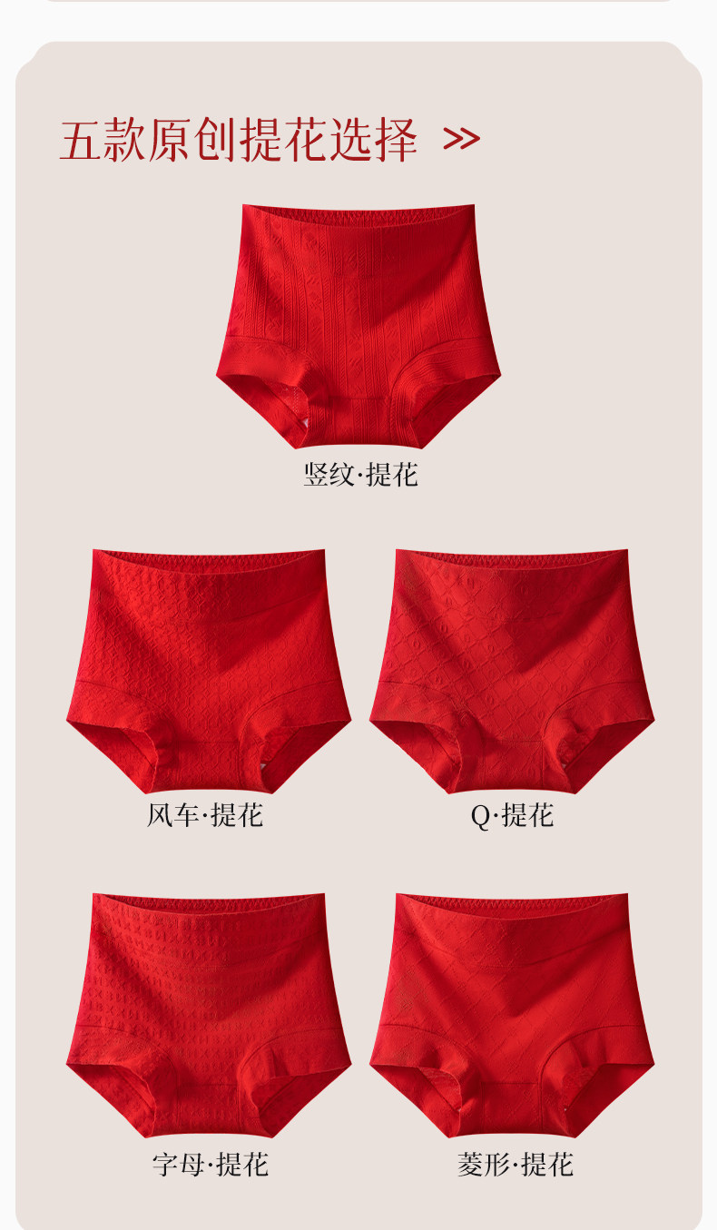 2-4条纯棉7A级抗菌无缝红色内裤 马年本命年高腰收腹内裤