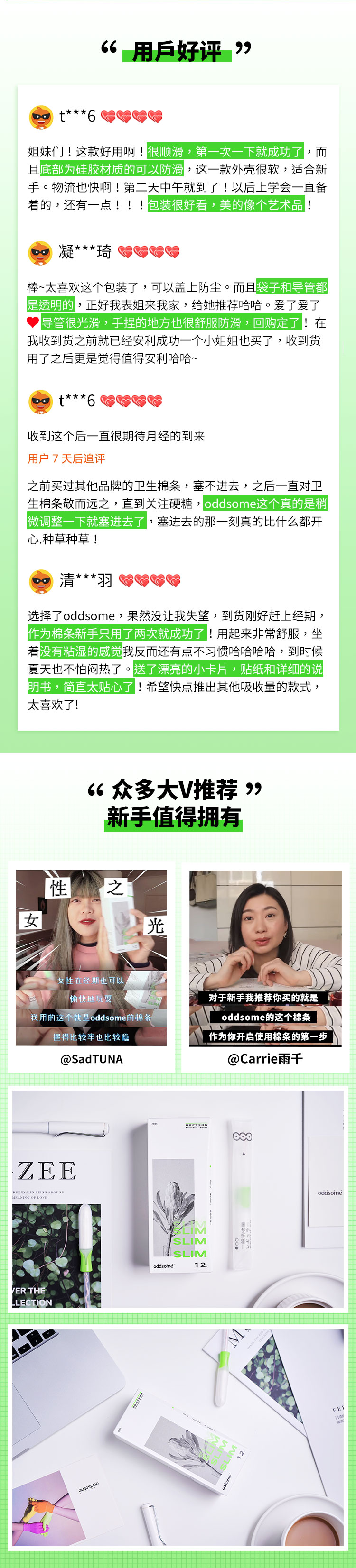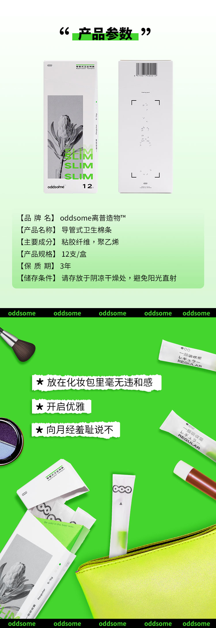 【社群】「oddsome小绿柄导管式卫生棉条」Regular 一般吸收量单盒12支|拒绝月经羞耻|顺滑好置入|软胶手柄防滑