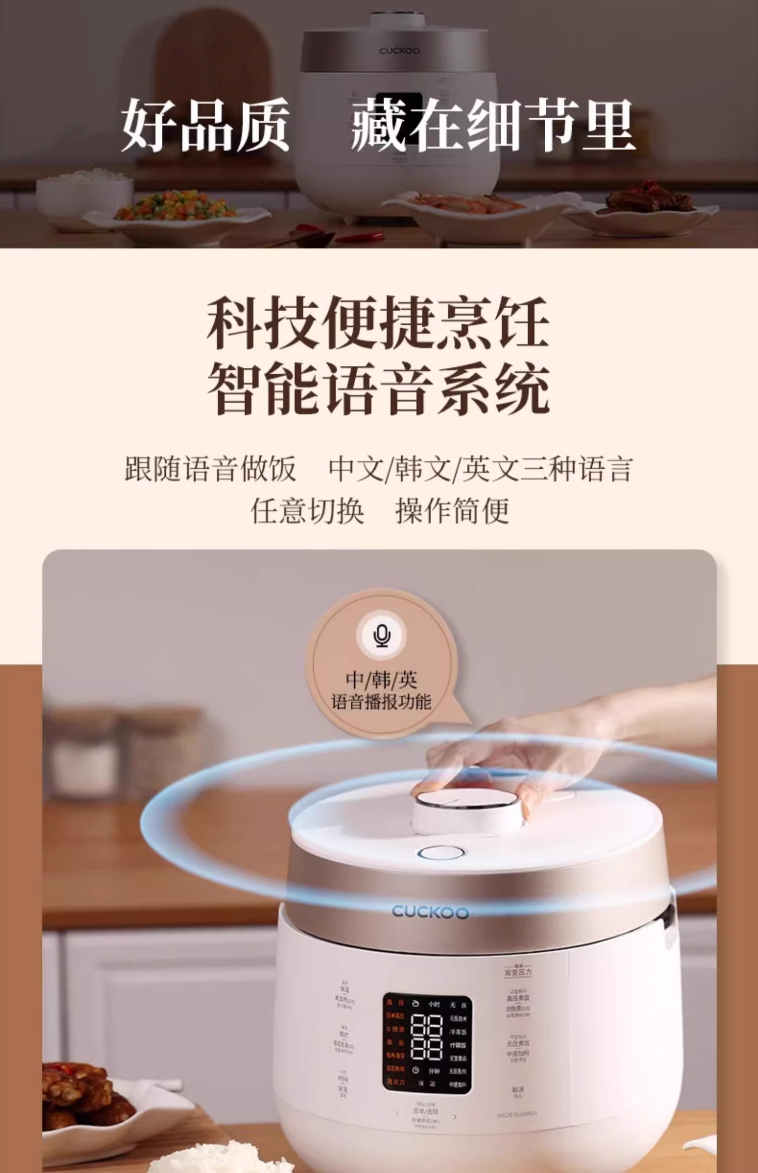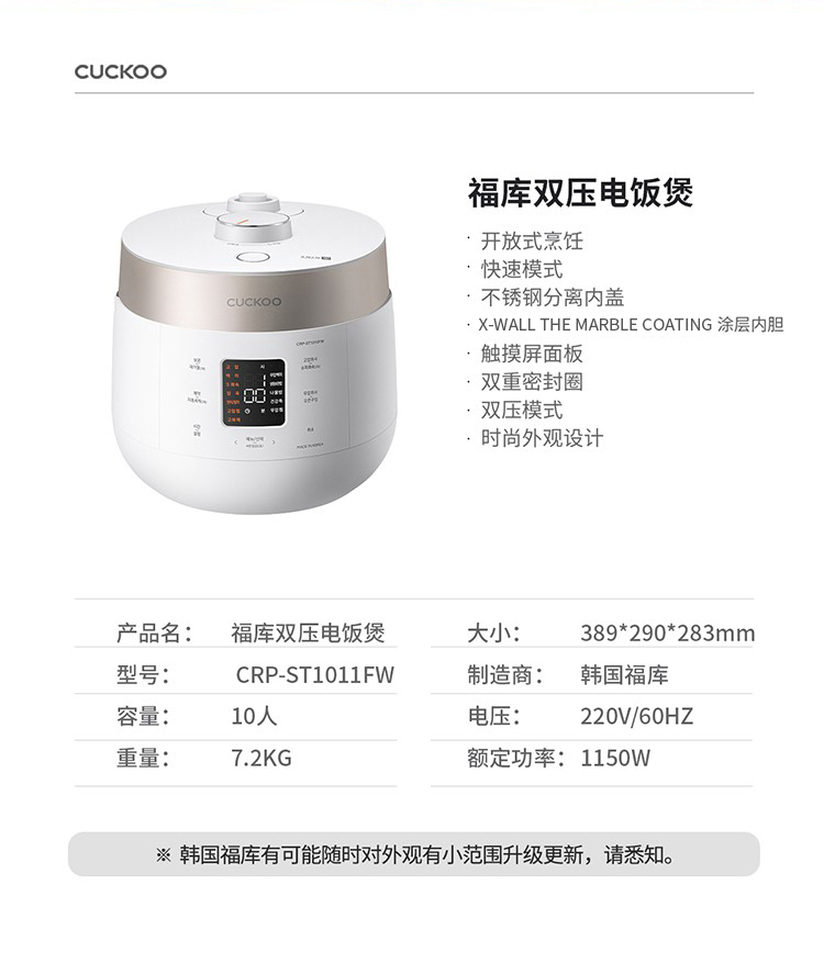 会说话的双压电饭煲|新款韩国CUCKOO/福库智能语音1.8倍大气压电饭煲ST0611FW 3L/ST1011FW 5L