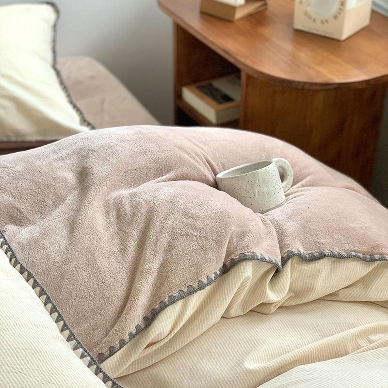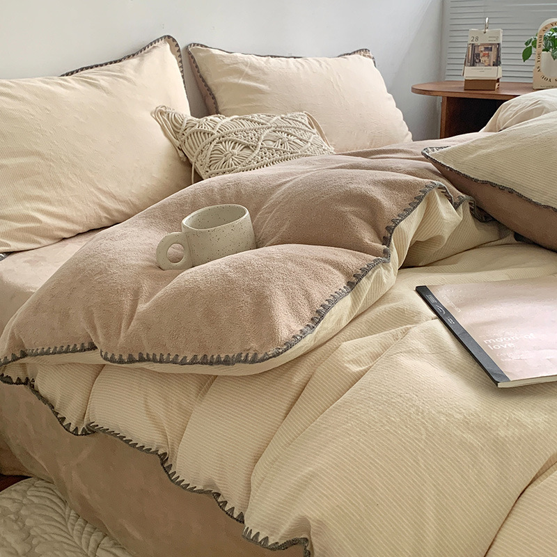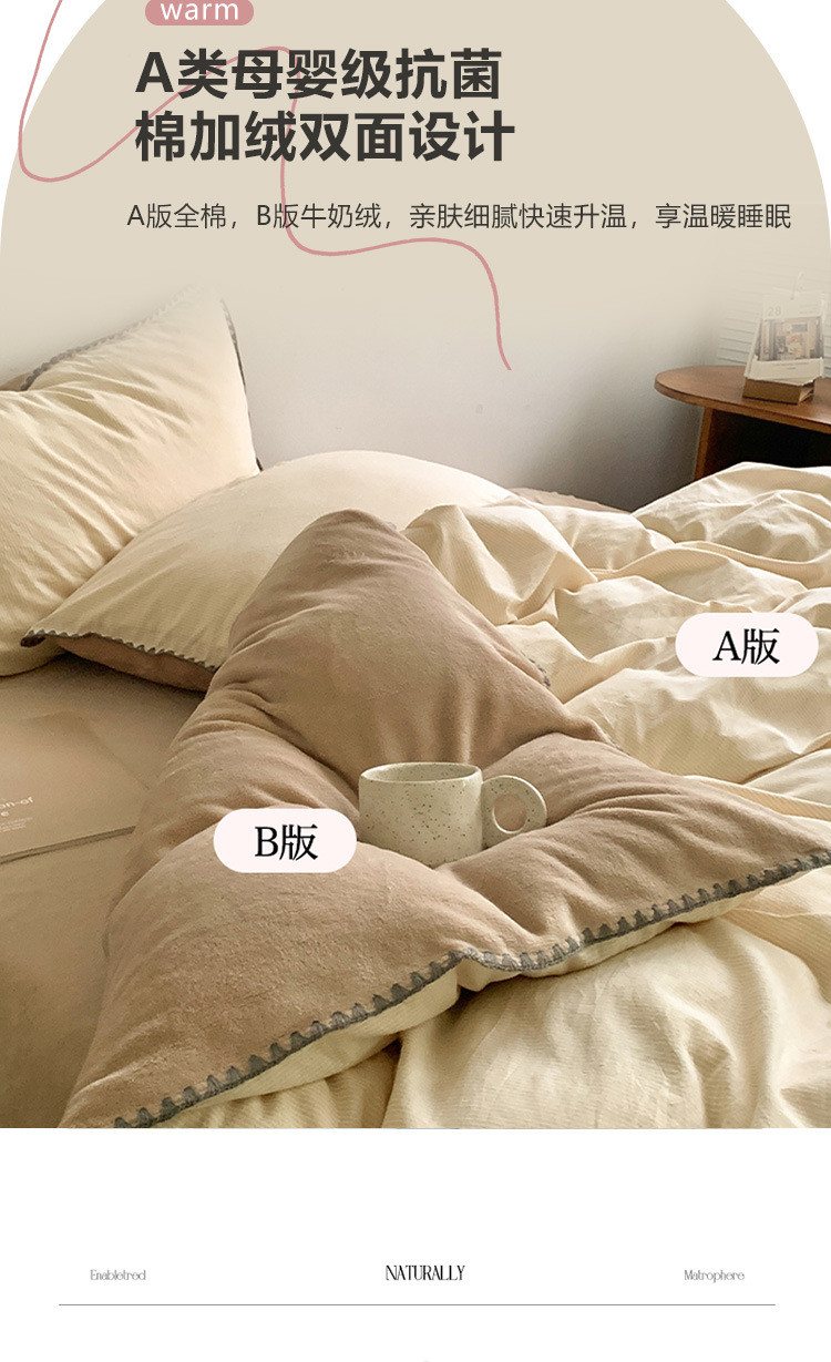 【牛奶绒秋冬棉加绒四件套】牛奶绒四件套良品秋冬棉加绒四件套保暖加厚绒布床品件套