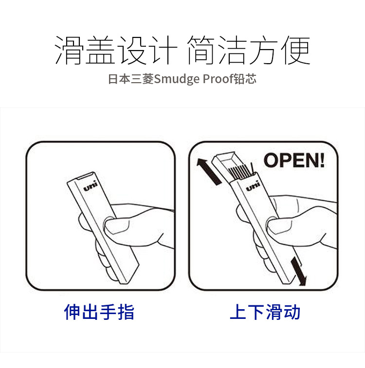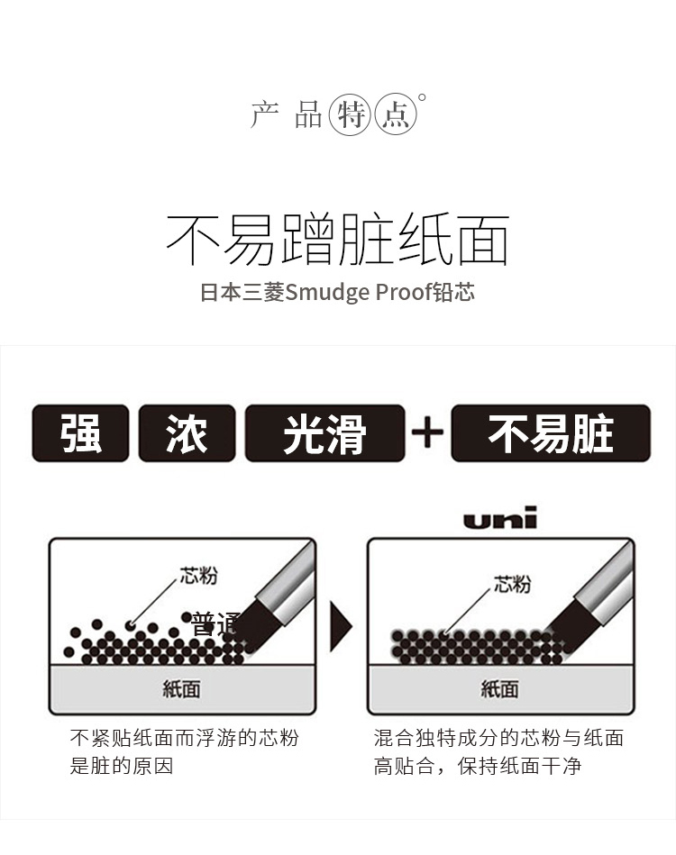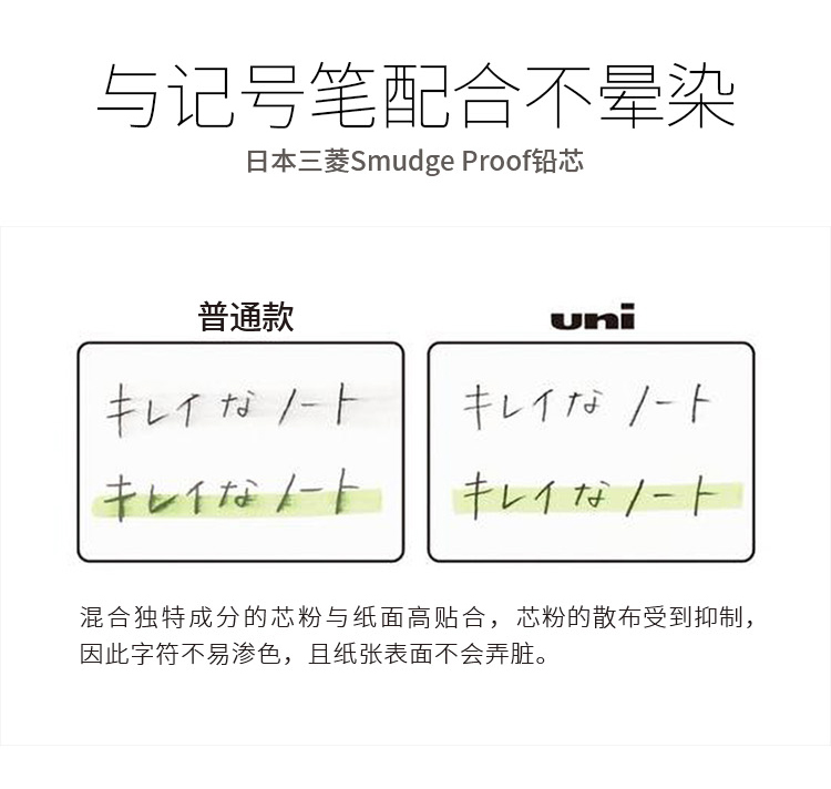 日本UNI三菱UL-S防蹭脏铅芯Smudge Proof浓黑不晕染防污替芯自动铅芯0.5 0.3不易断活动铅笔芯2b2hhb