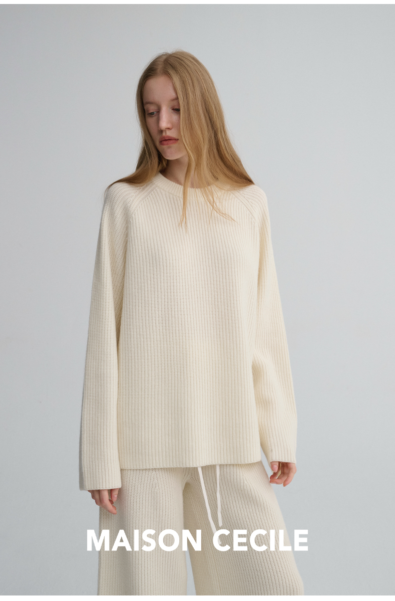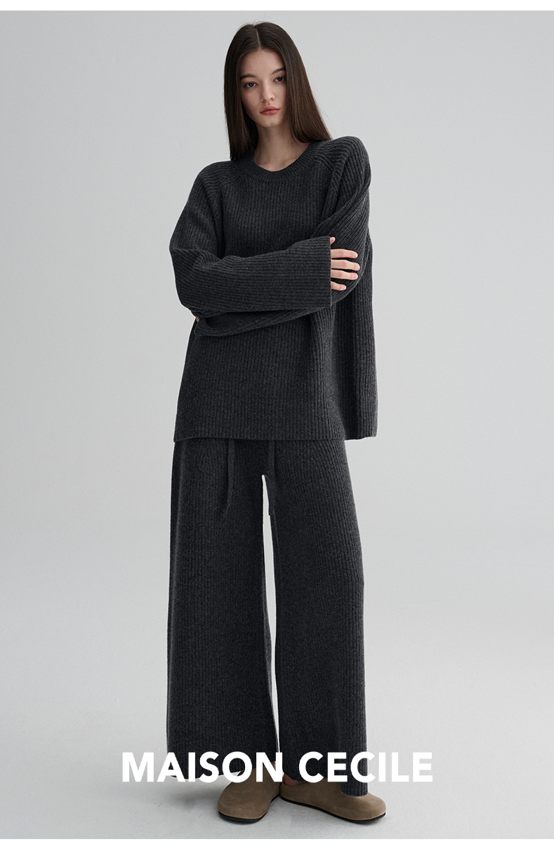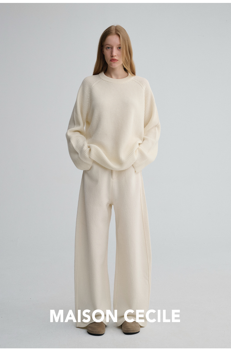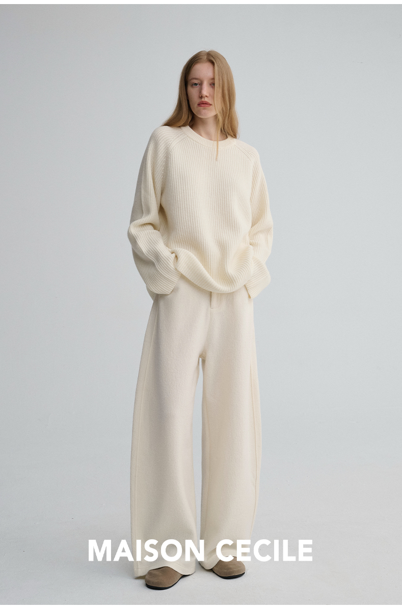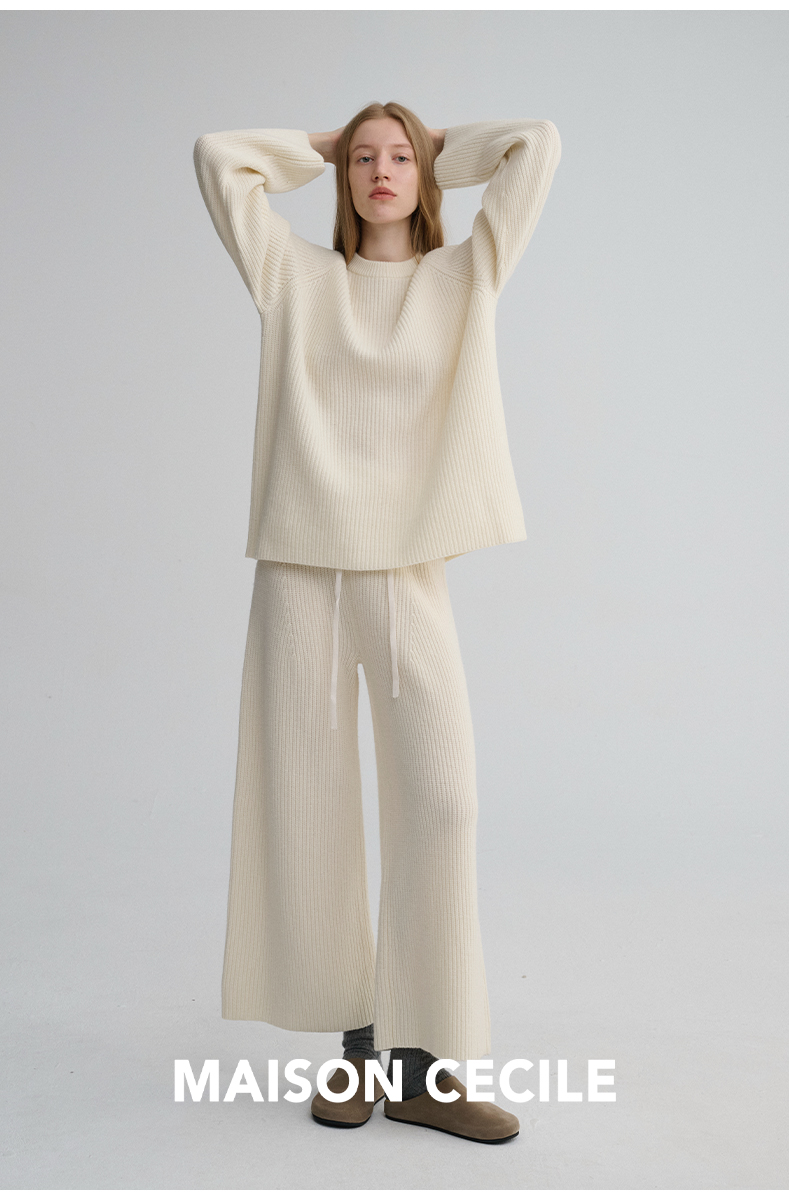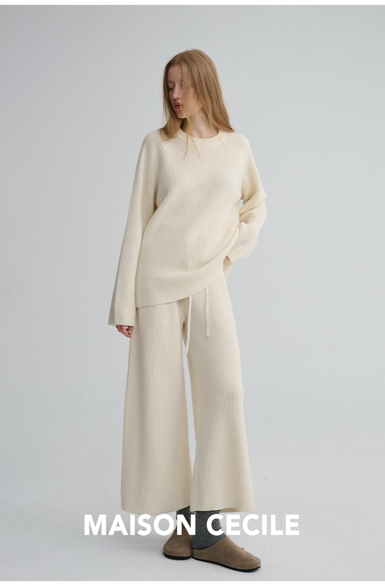 MAISON CECILE 两色|羊绒羊毛针织廓形插肩袖毛衣/抽绳八分阔腿裤