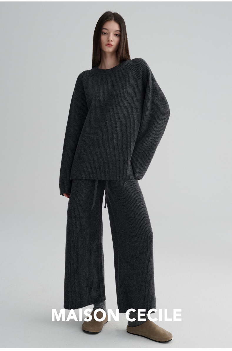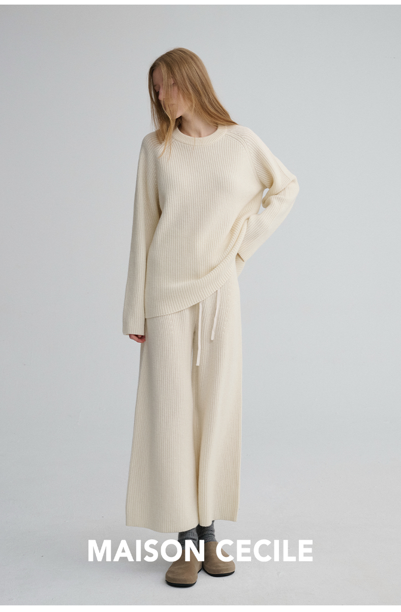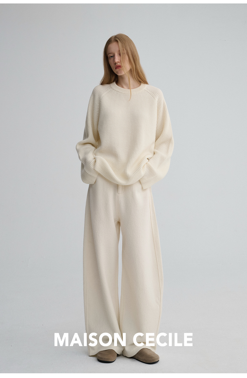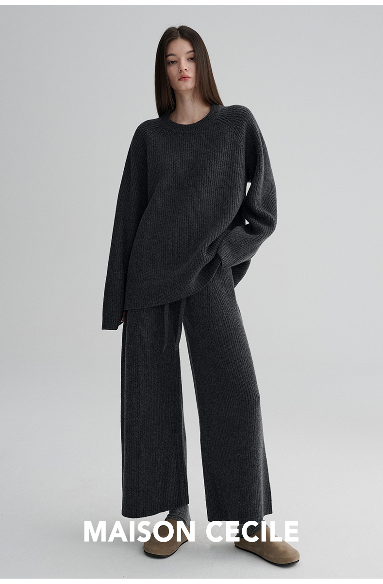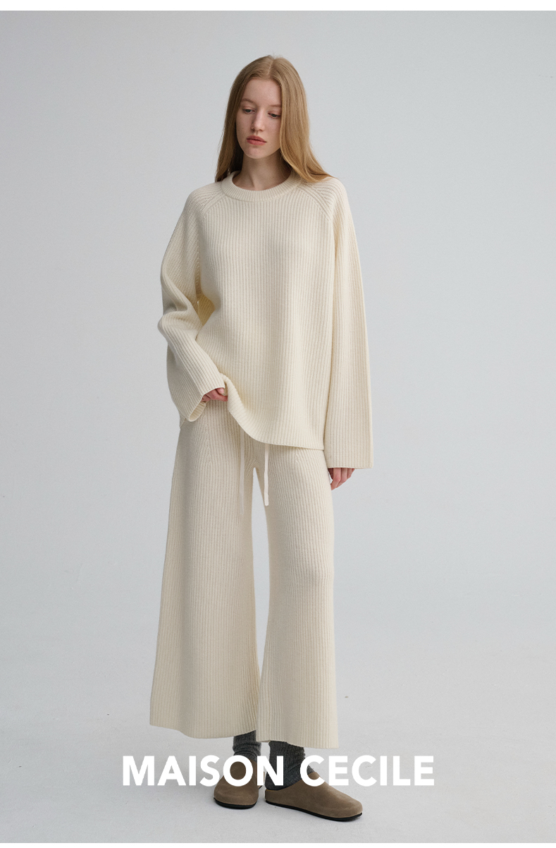 MAISON CECILE 两色|羊绒羊毛针织廓形插肩袖毛衣/抽绳八分阔腿裤