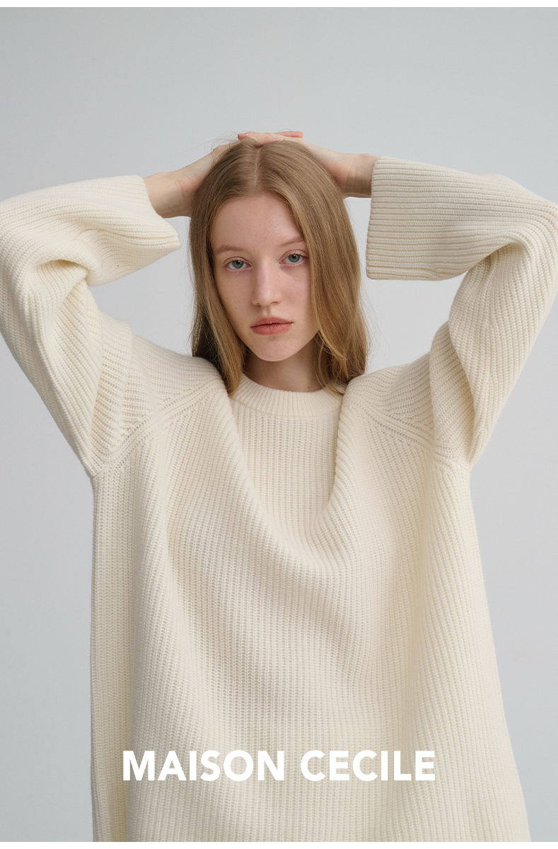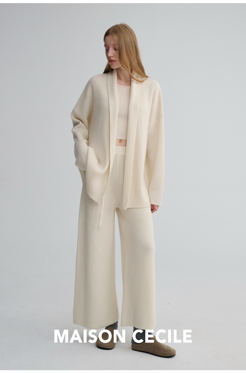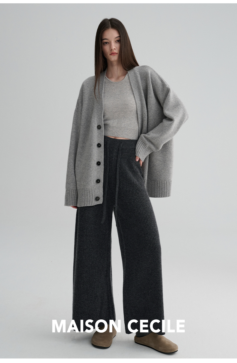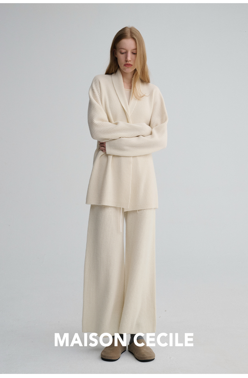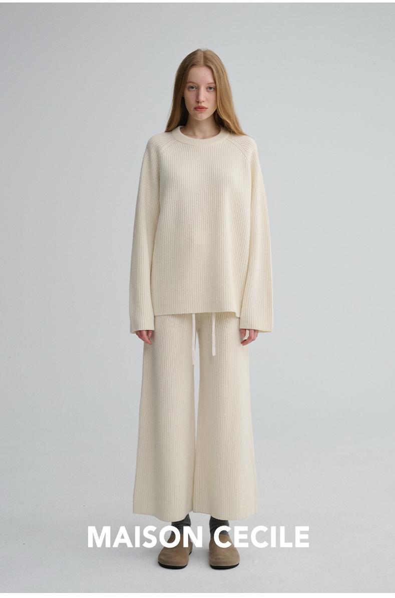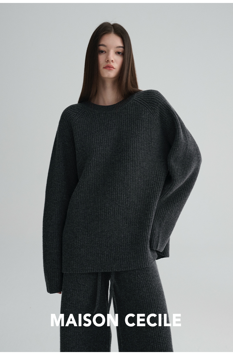 MAISON CECILE 两色|羊绒羊毛针织廓形插肩袖毛衣/抽绳八分阔腿裤
