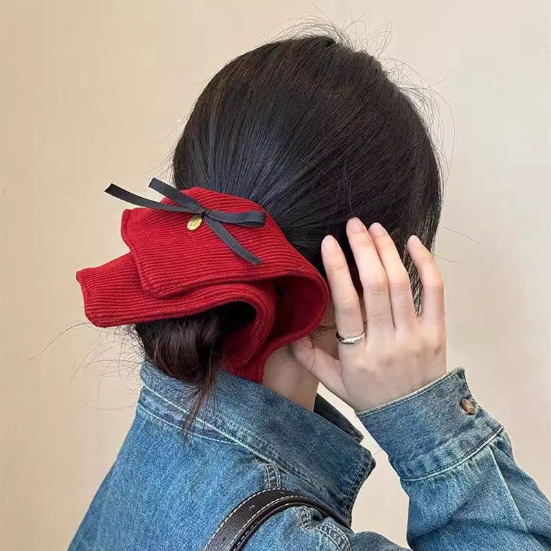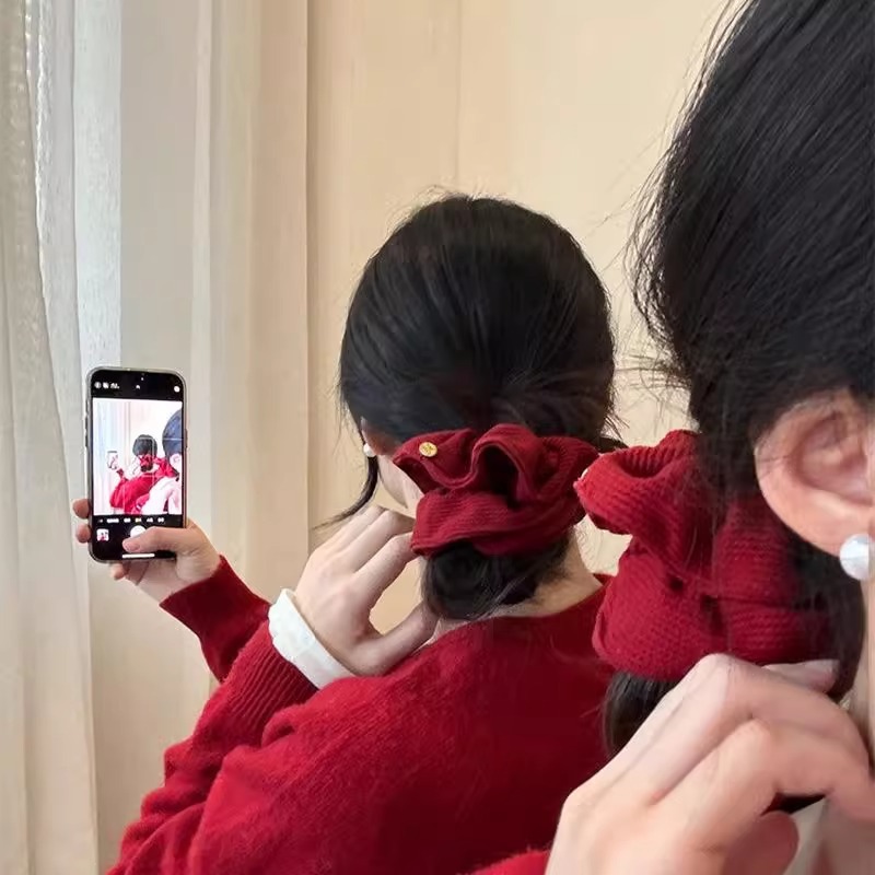 【新年氛围感担当】韩系红色大肠发圈女秋冬高级感小众气质发绳温柔扎马尾头绳发饰品。jc