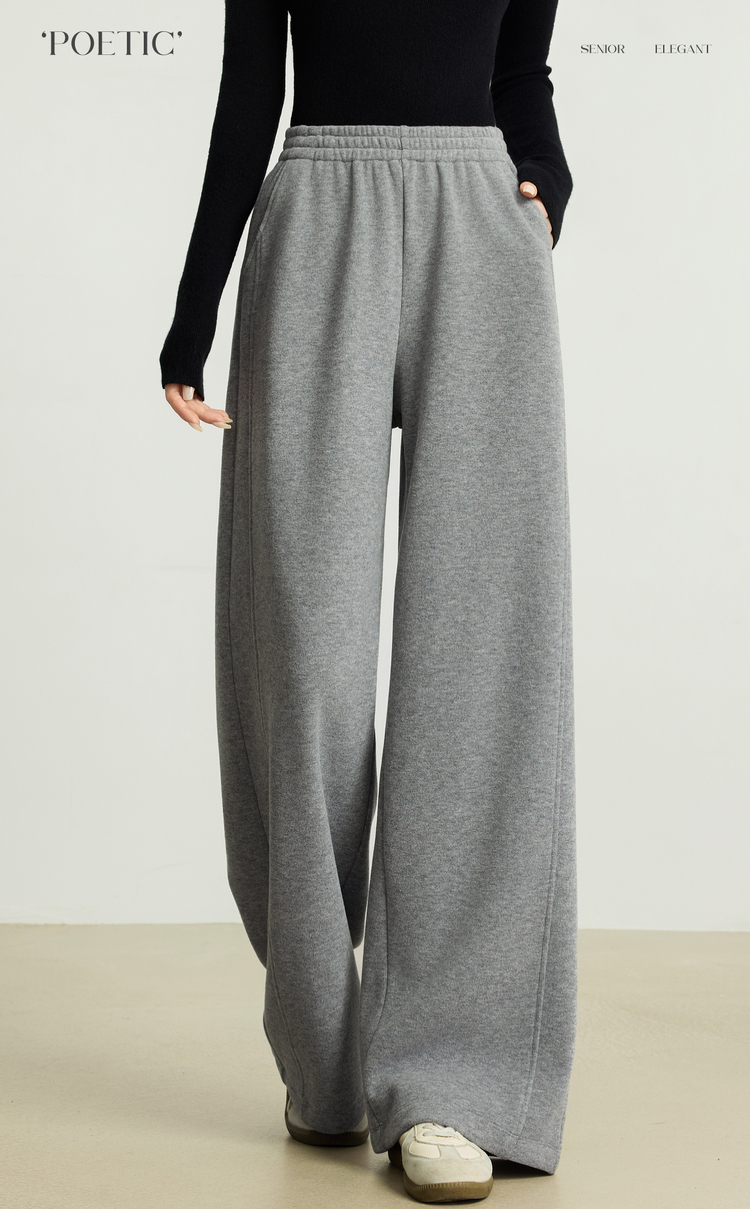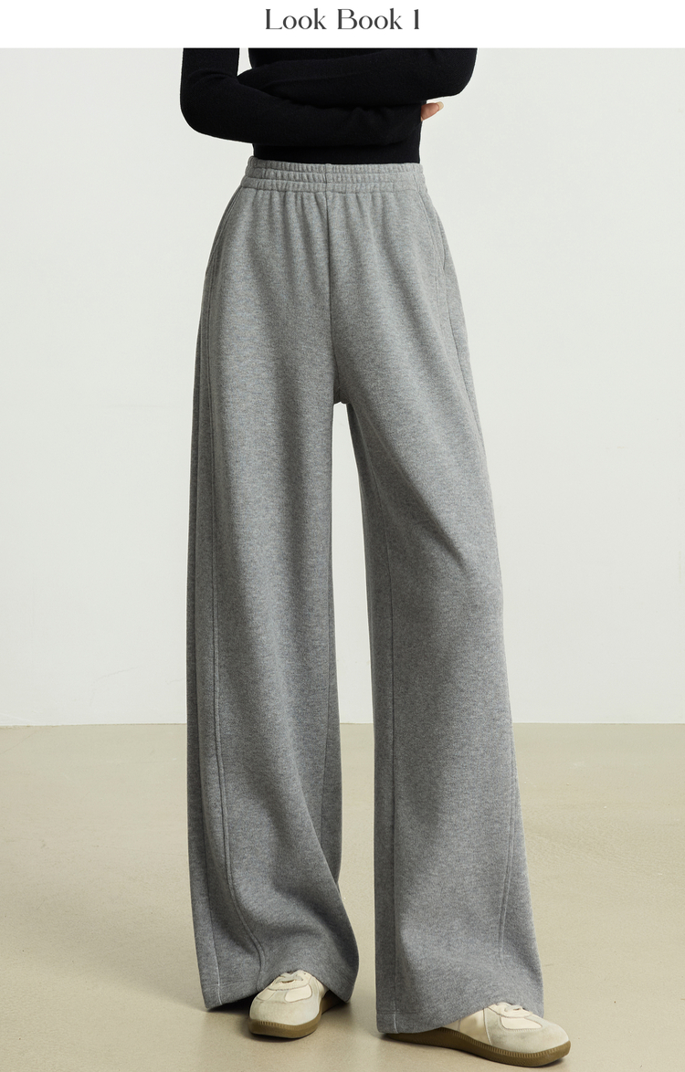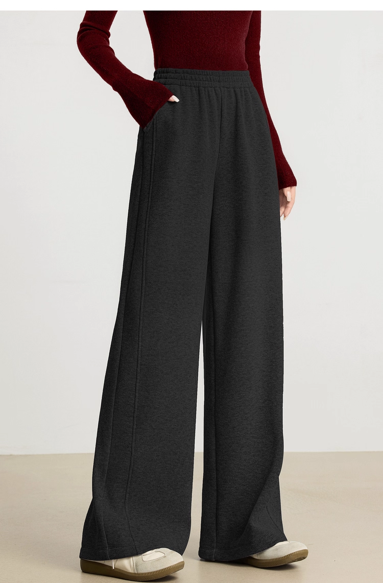 【周四狂欢价】熙世界奶芙加绒阔腿裤冬季女2025新款厚款休闲直筒裤糯米针织长裤