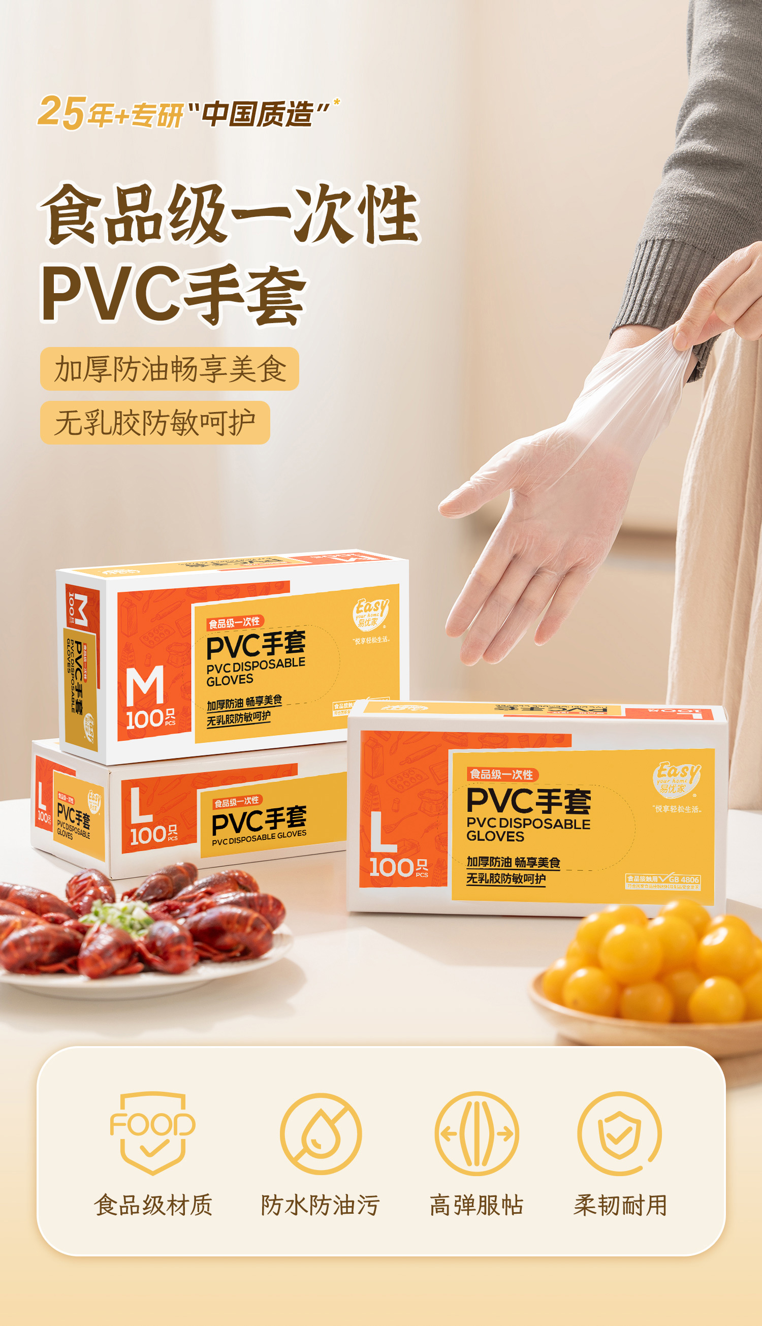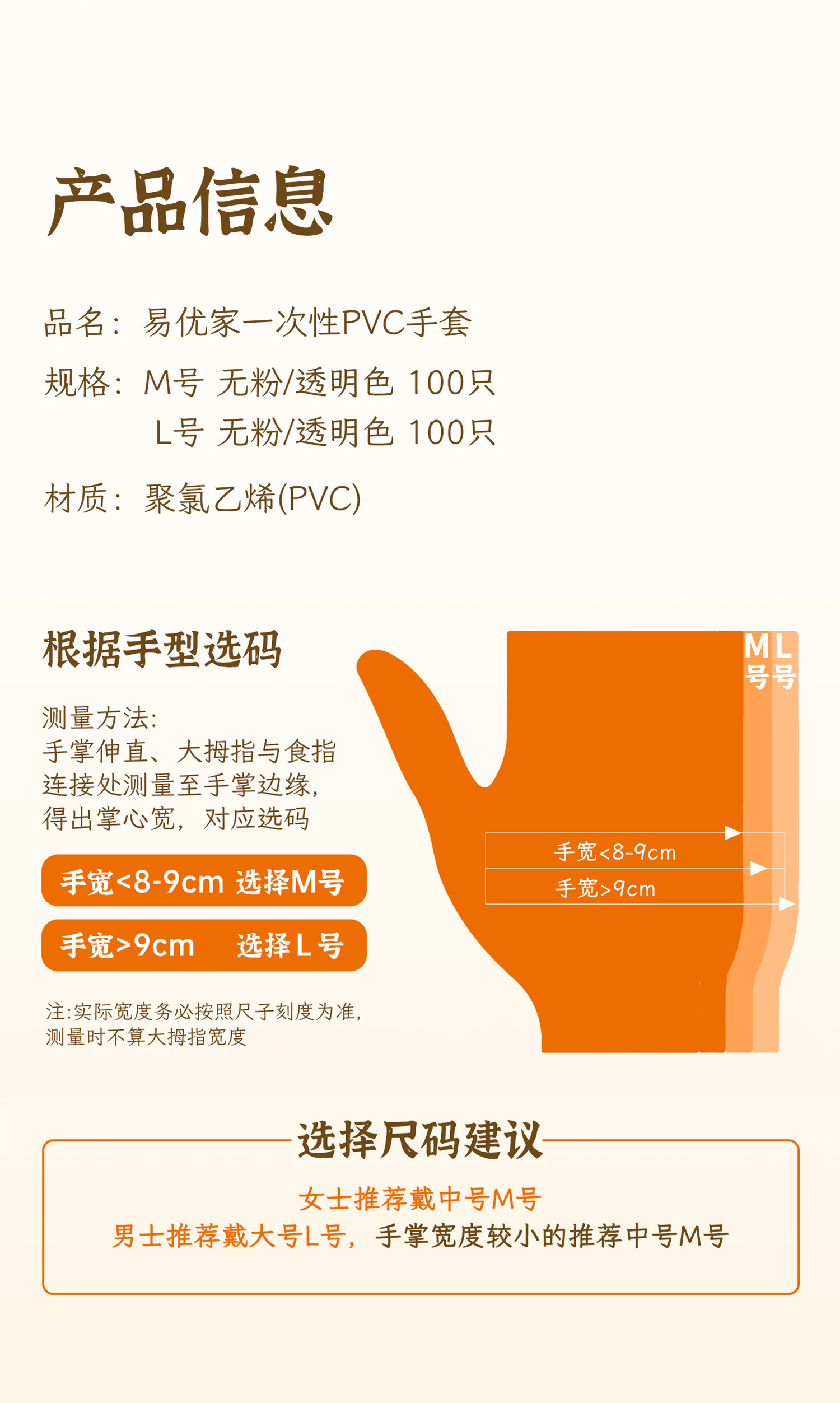 【商品名称】易优家PVC一次性手套
