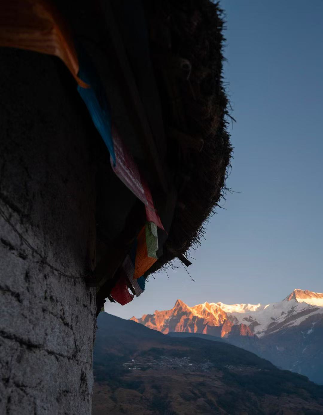 观景平台拍摄喜马拉雅雪山日出,深入村庄拍摄人文和雪山群,下午喜马拉雅雪山群日落拍摄。
