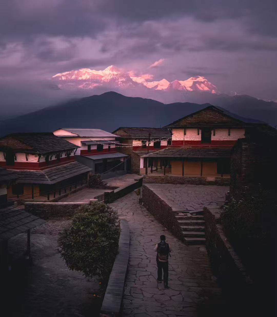 在尼泊尔清晨的薄雾是神的呼吸,黄昏的倒影是大地写给天空的情书。