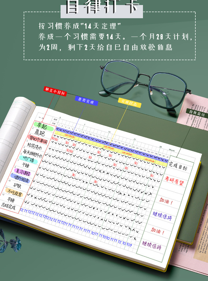 【自律打卡本】日历本学习计划表日程本时间管理好习惯养成计划本大学生考研思维导图本子todolist目标每日打卡表