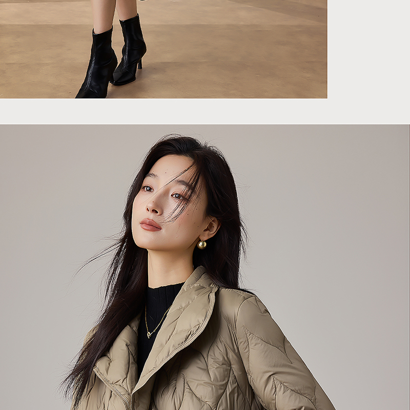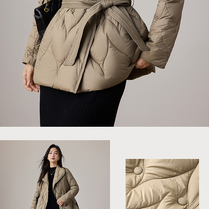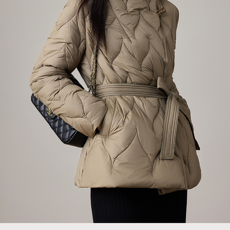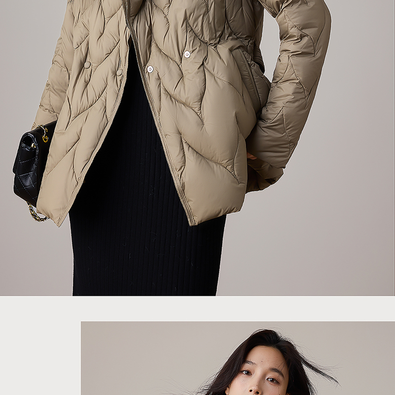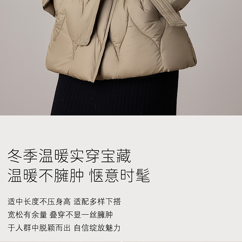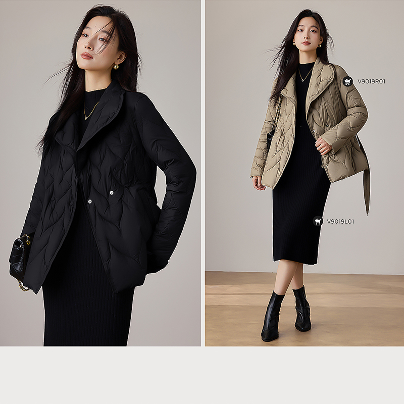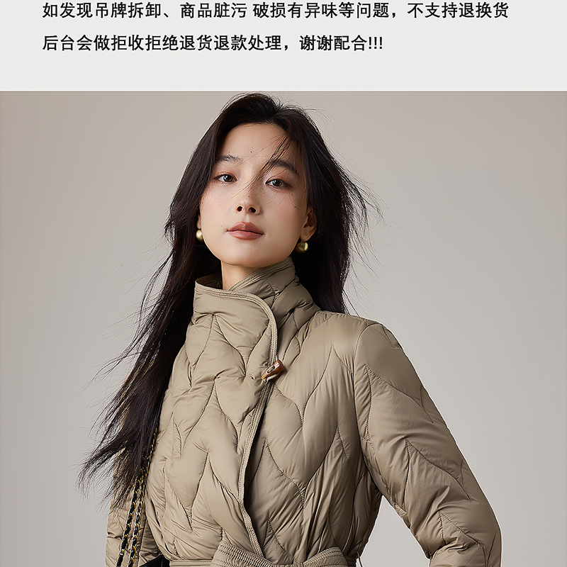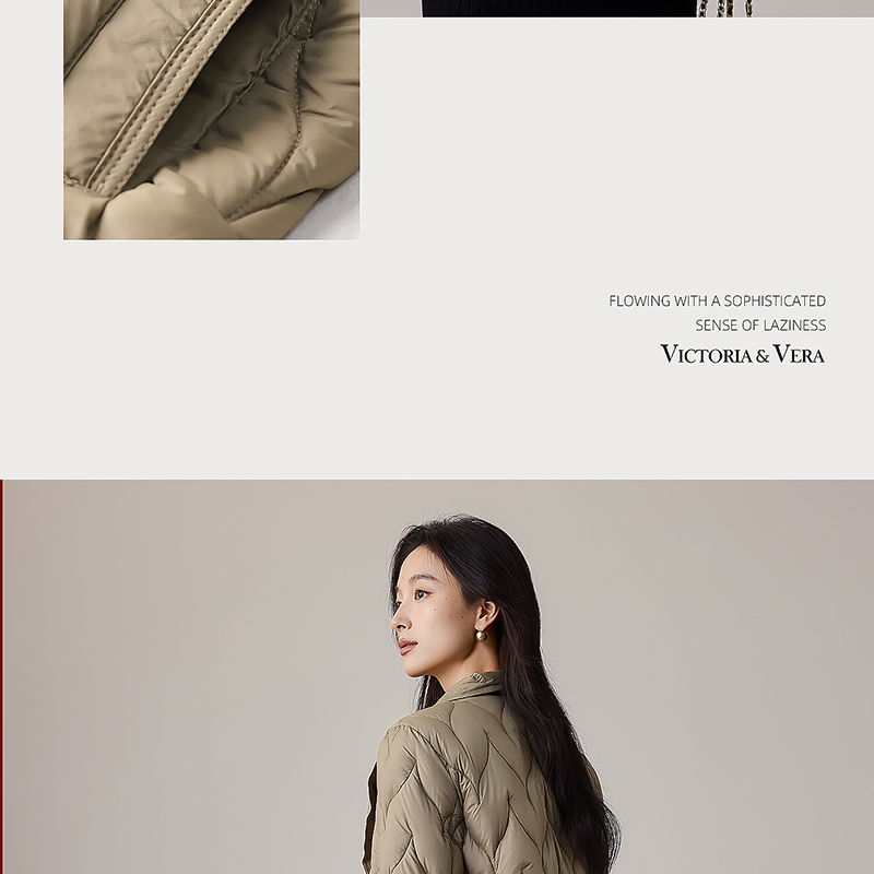 VICTORIA&VERA冬季【温雅序曲】系带收腰设计菱形绗缝羽绒服牛角扣立领短款气质修身高级大牌感