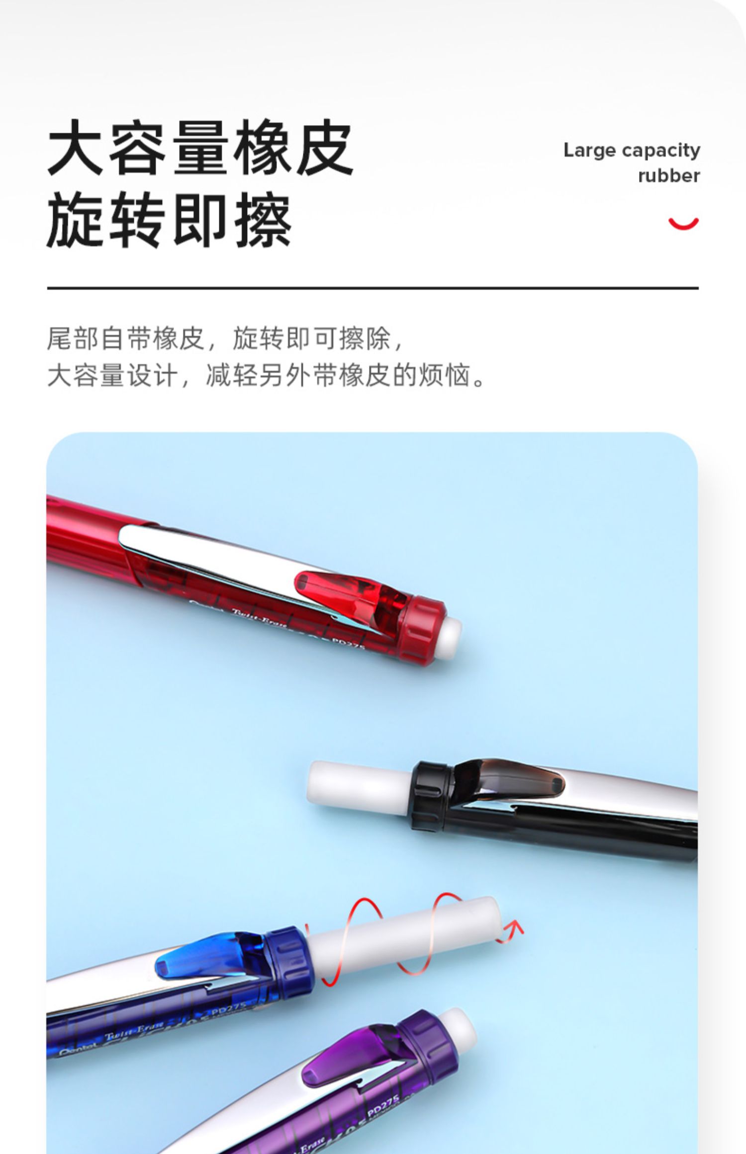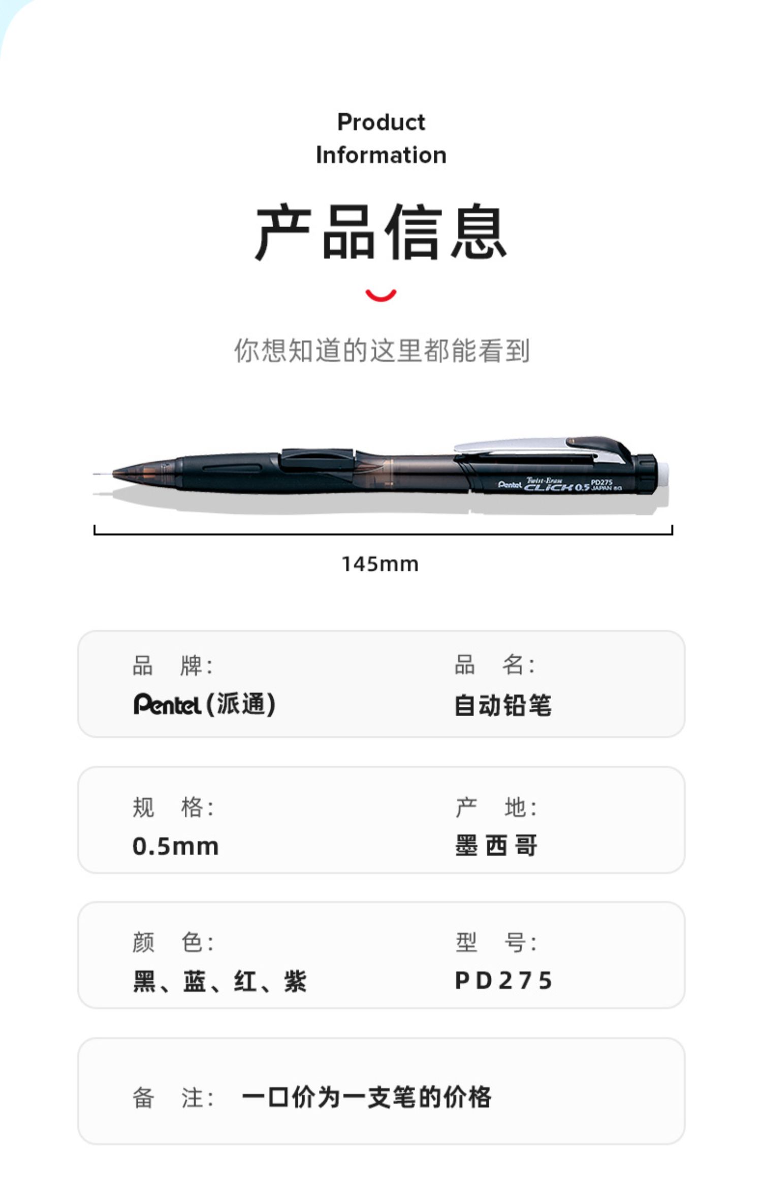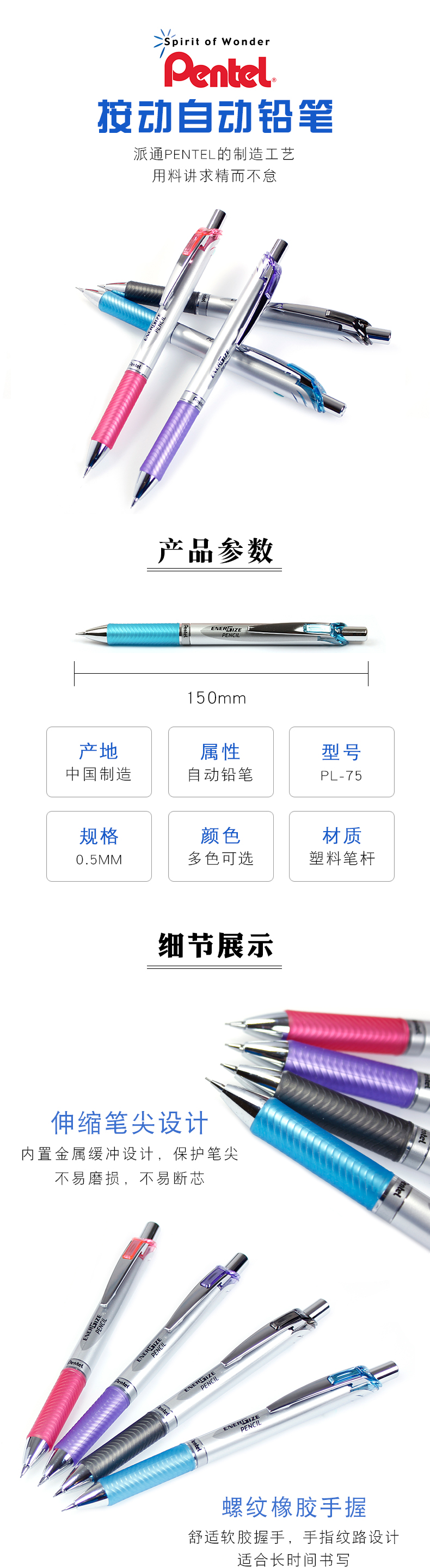 pentel派通PL75自动铅笔 按动式学生活动铅笔0.5mm/PD275侧按式自动铅笔不易断芯0.5mm写字书写活动铅笔