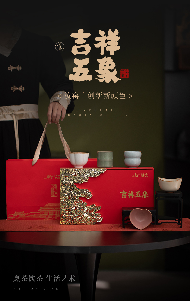 金秋时分,推出一套汝窑五福杯—— 上新了故宫吉祥五象茶杯套装