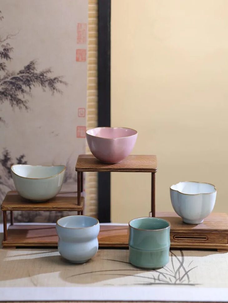 用顺治、康熙、雍正、乾隆、嘉庆五个皇帝的年号为灵感,融合宫廷祥瑞文化,通通揉进这五个汝窑杯子里!