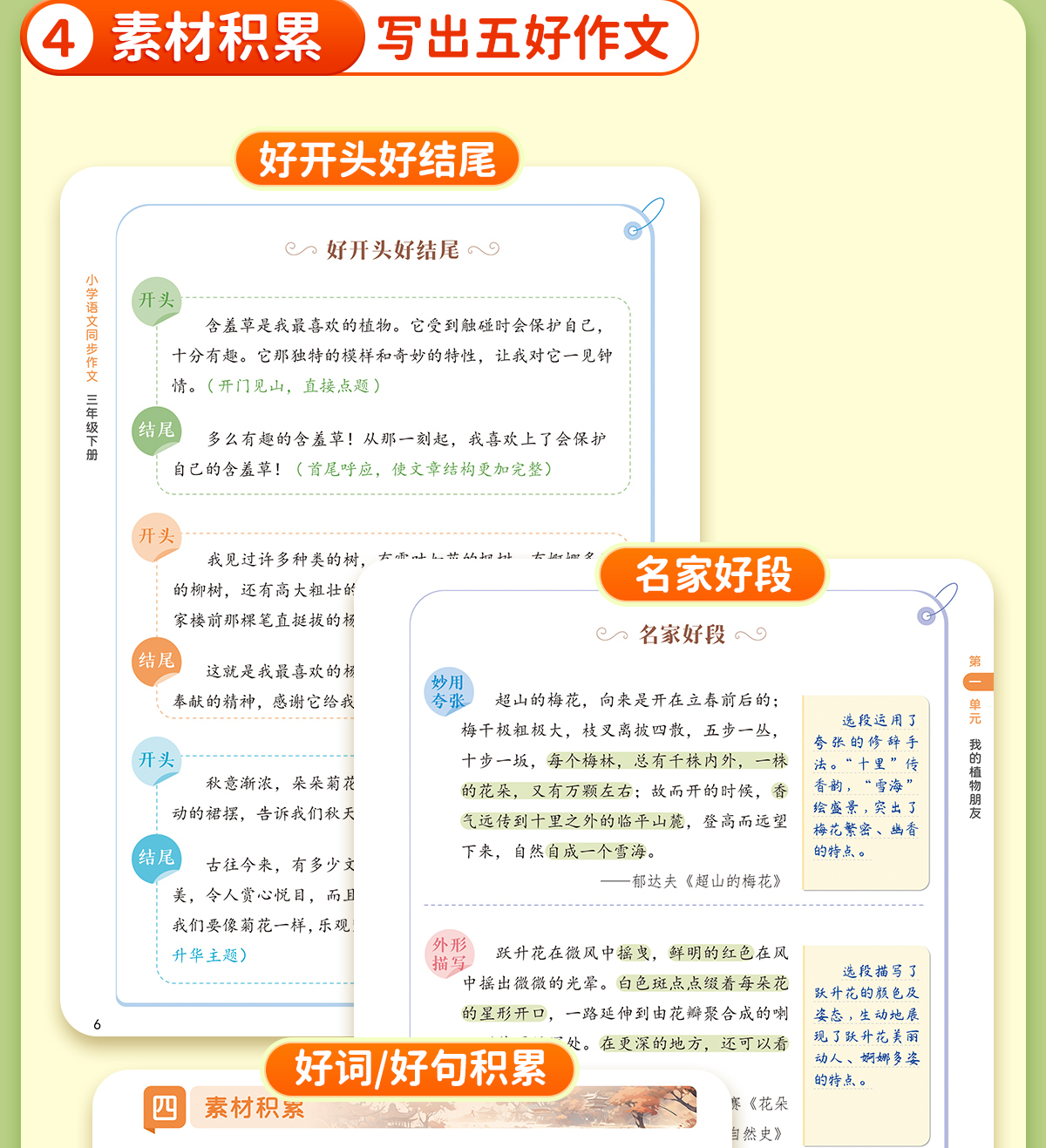 语文同步作文阅读训练册部编版小学生专用扩句法写作启蒙辅导书本 三年级四五六年级下册儿童高分作文满分范文金句积累专项训练教材