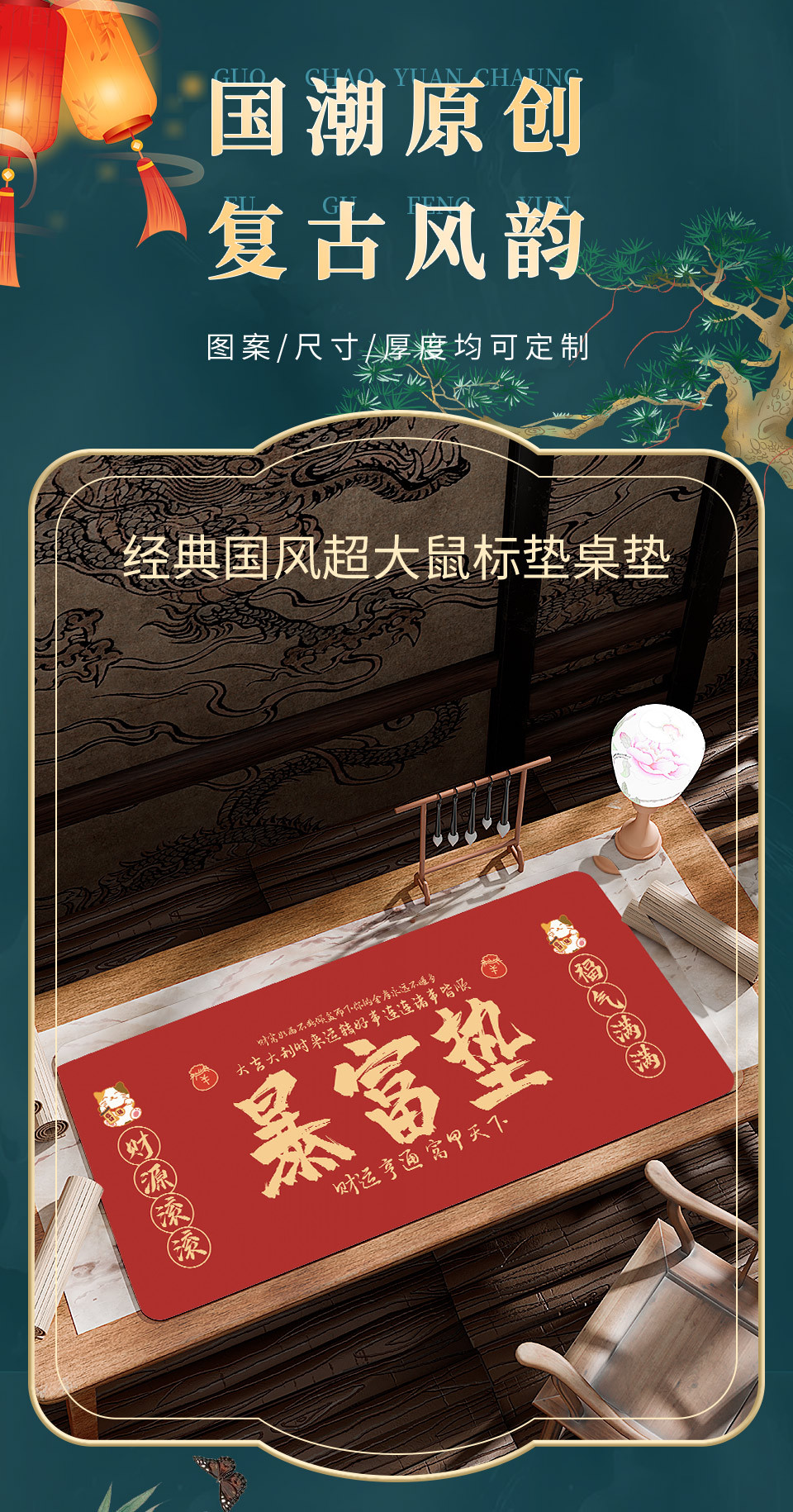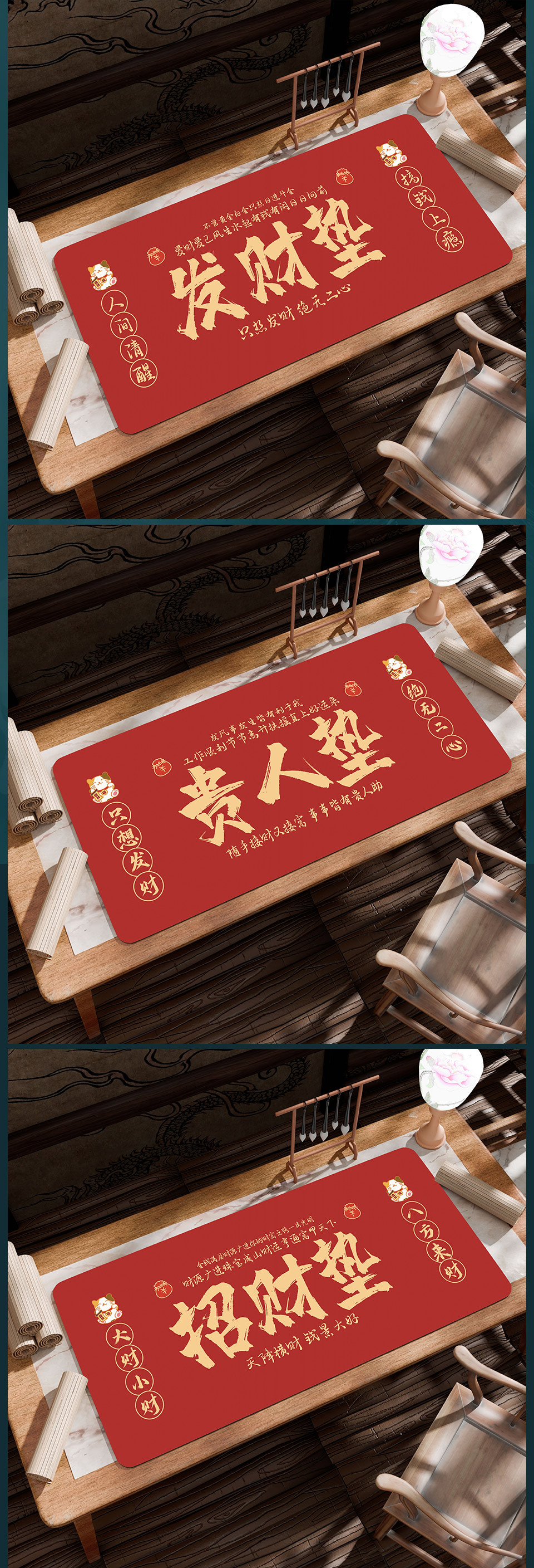【纳福接运❗️古风文字创意垫】好寓意,新年新气象,福气多多!新年马年动画鼠标垫发财文字键盘垫加大加厚锁边大号办公