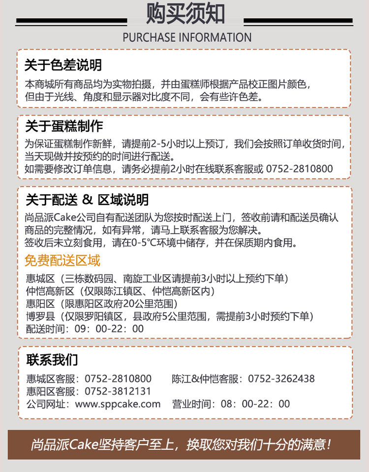 - 我们坚持当日接单、新鲜现做,拒绝罐头果肉与植物奶油,让每一口都保留食材本真的鲜活清甜。生活需要一点甜,我们的蛋糕不只是一份甜品,更是传递快乐的仪式感,为你带来视觉与味蕾的双重满足~