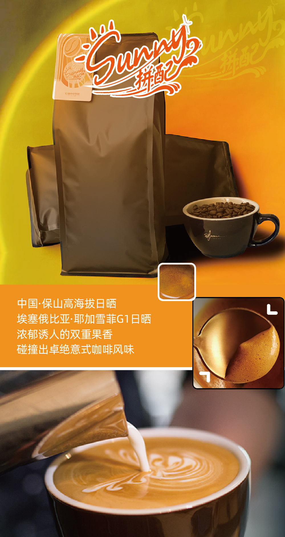 铂澜Sunny阳光拼配意式咖啡豆云南埃塞拿铁美式新鲜中深烘焙