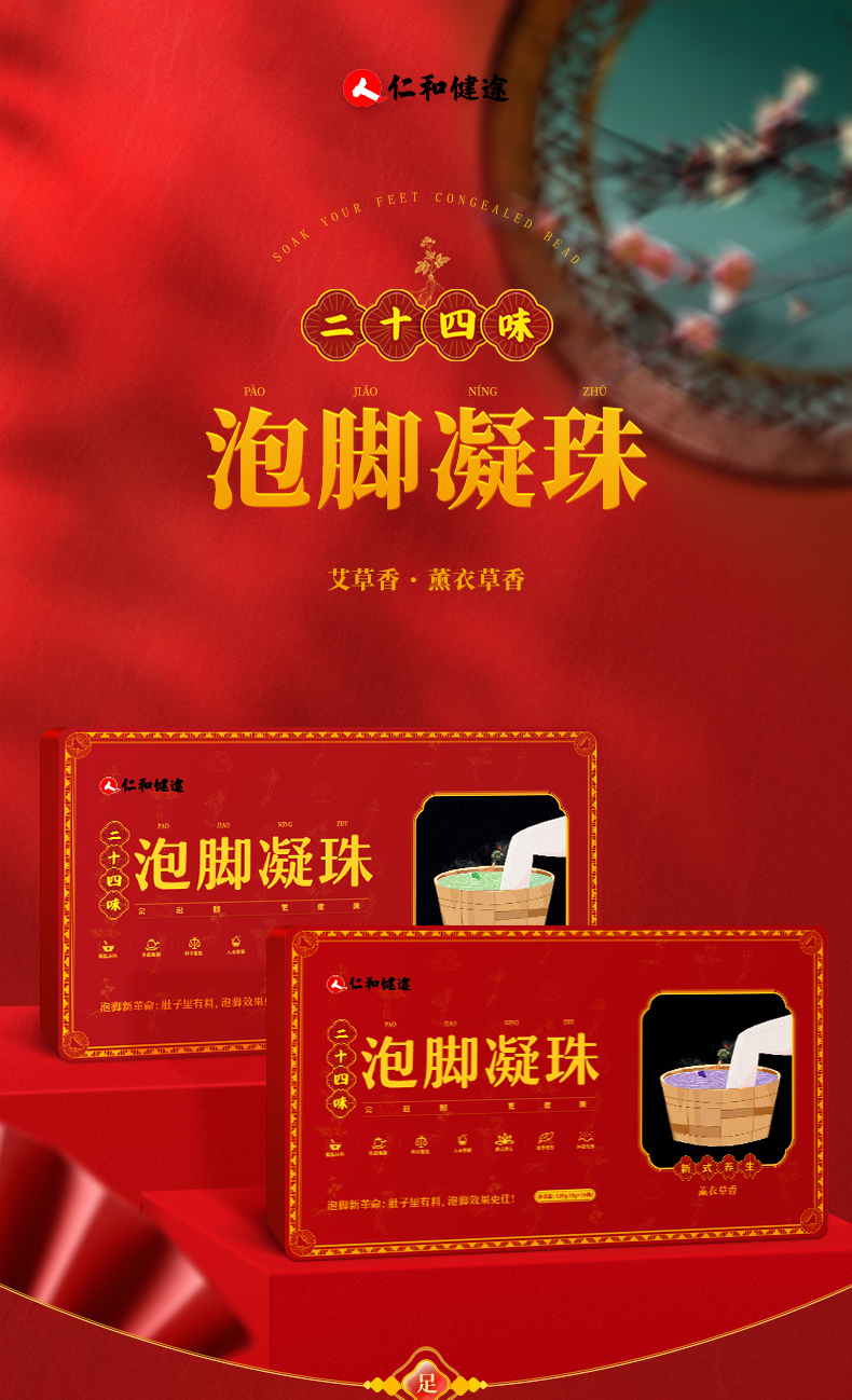 【仁和泡脚凝珠 3秒速溶无残渣】仁和二十四味泡脚凝珠 植物精油小分子配方 吸收快 拍2发3、拍4发6