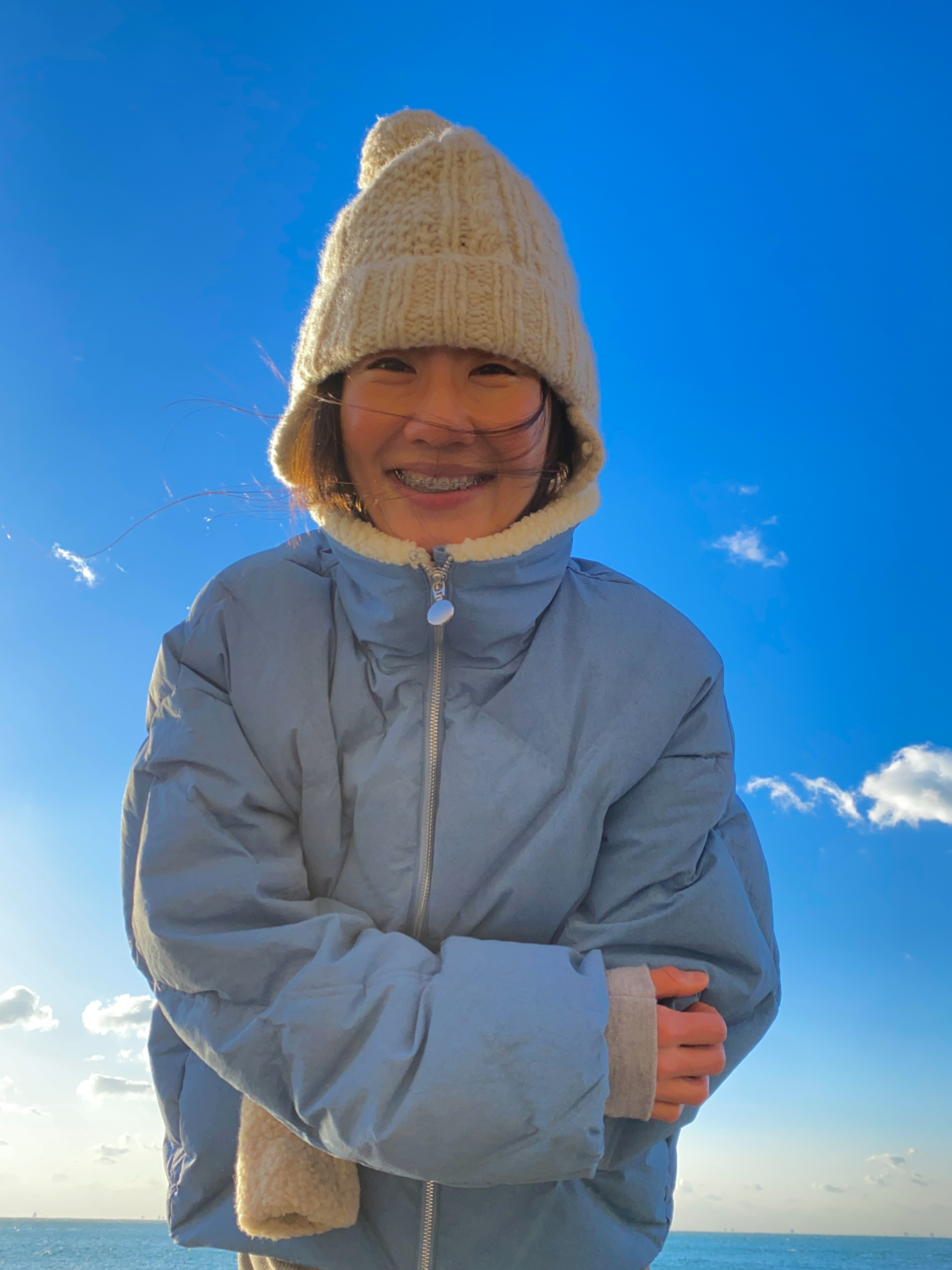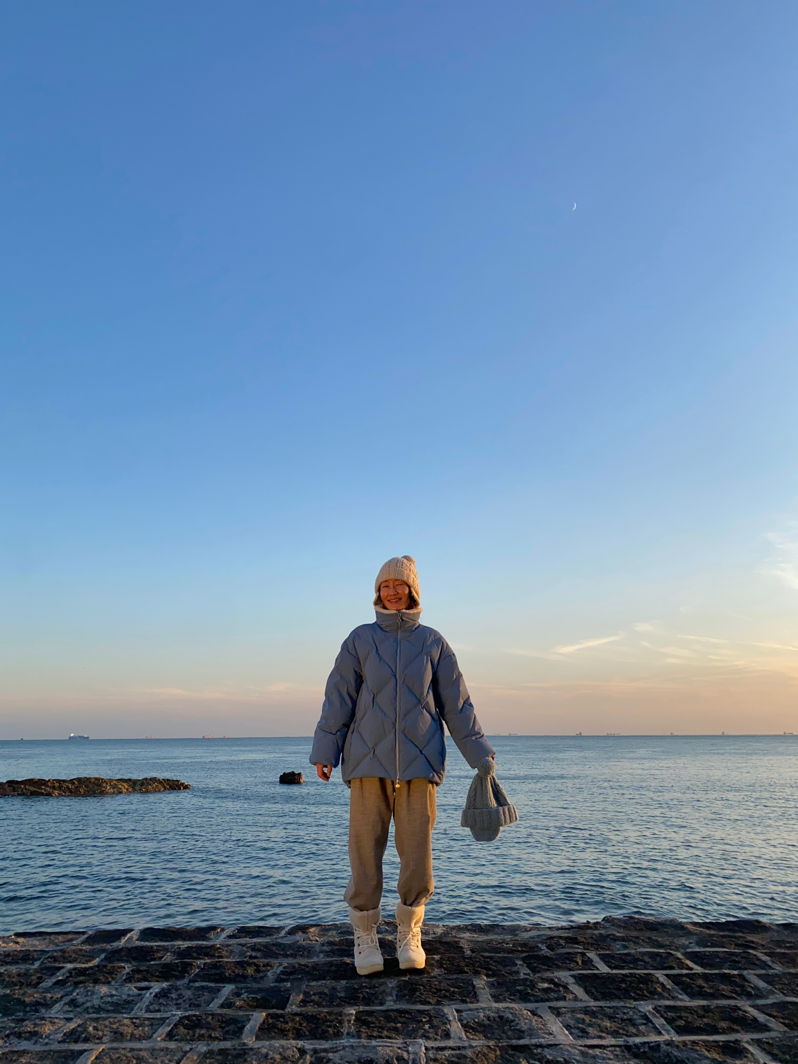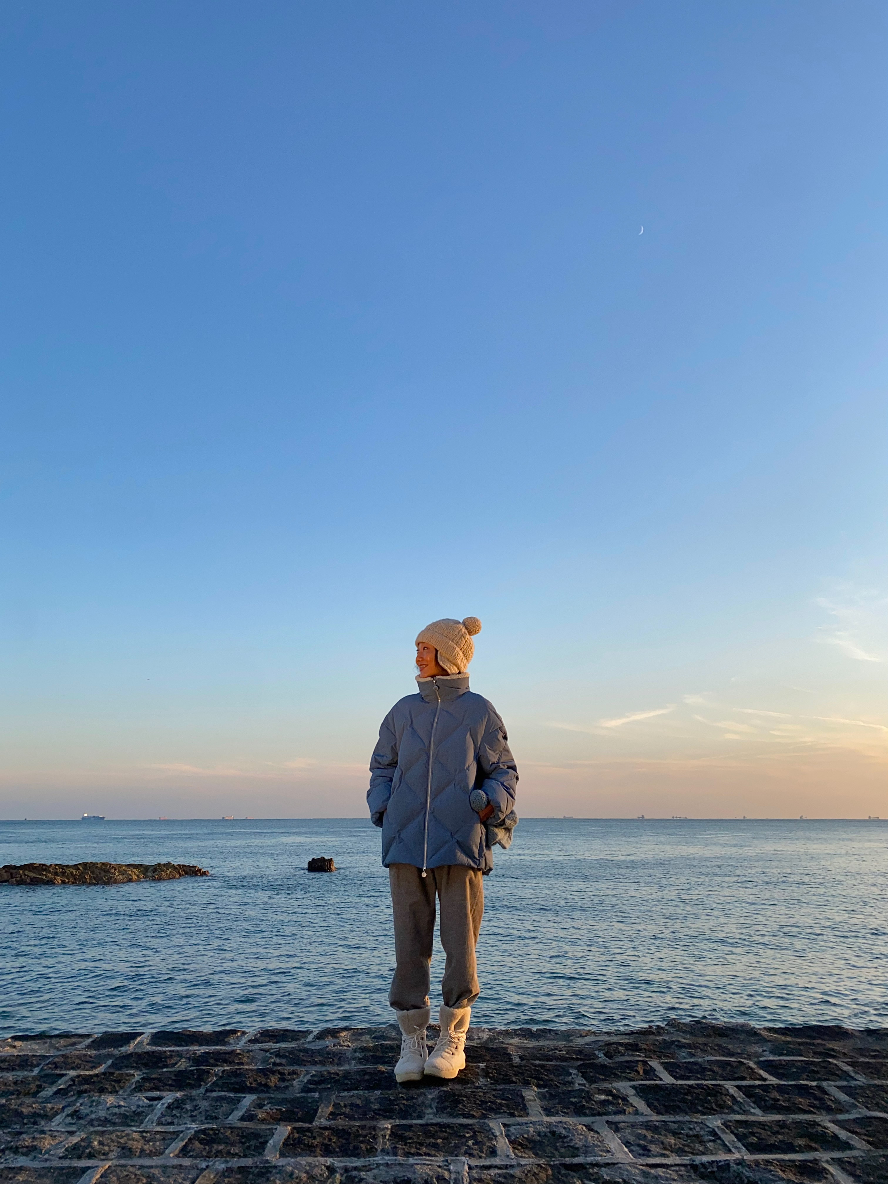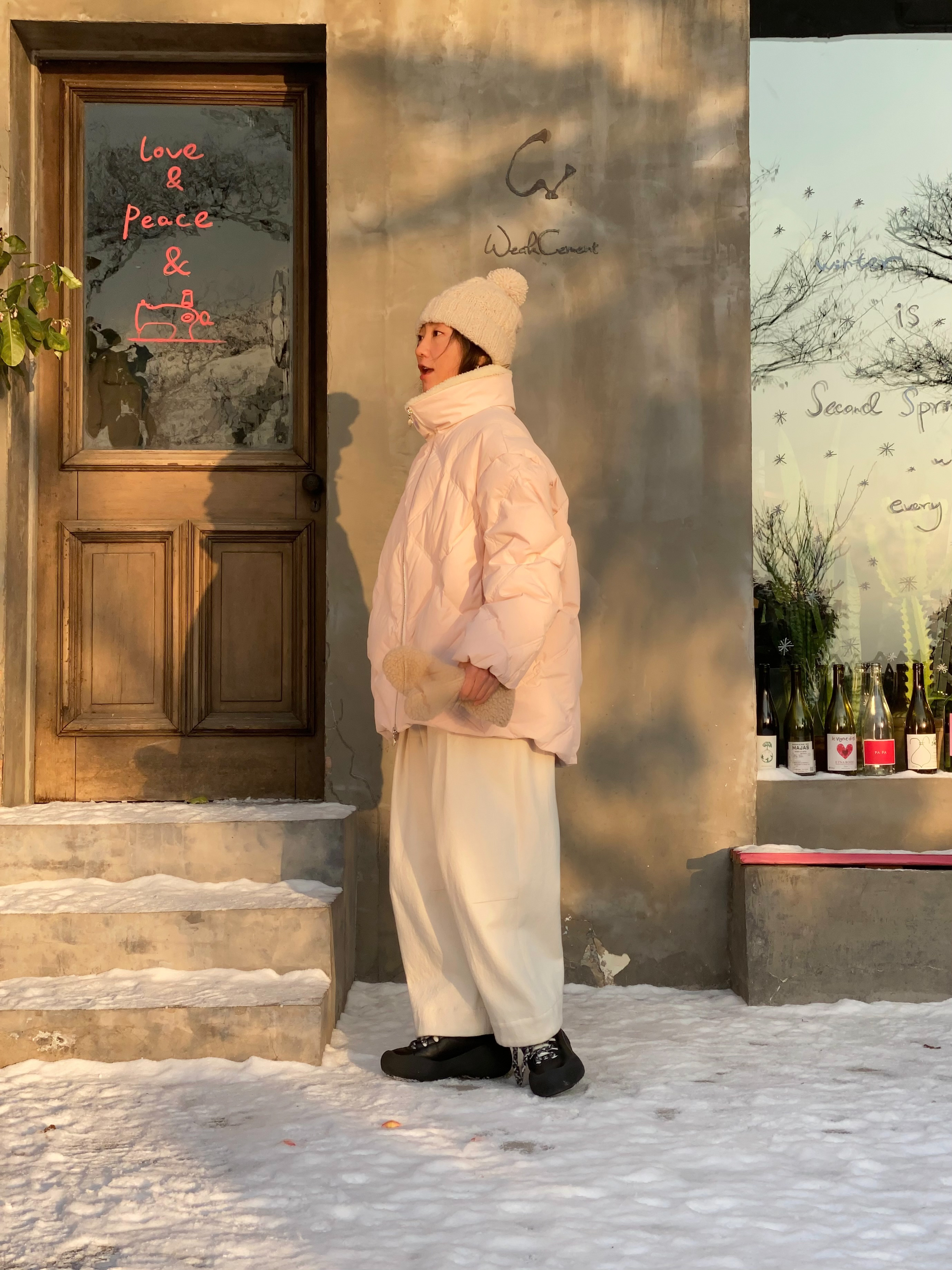 如果天气不太冷,请一定要尝试一下把护耳塞进去的带法,两侧会有垫宽头骨的效果,非常修饰脸型。