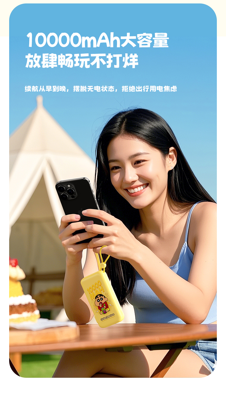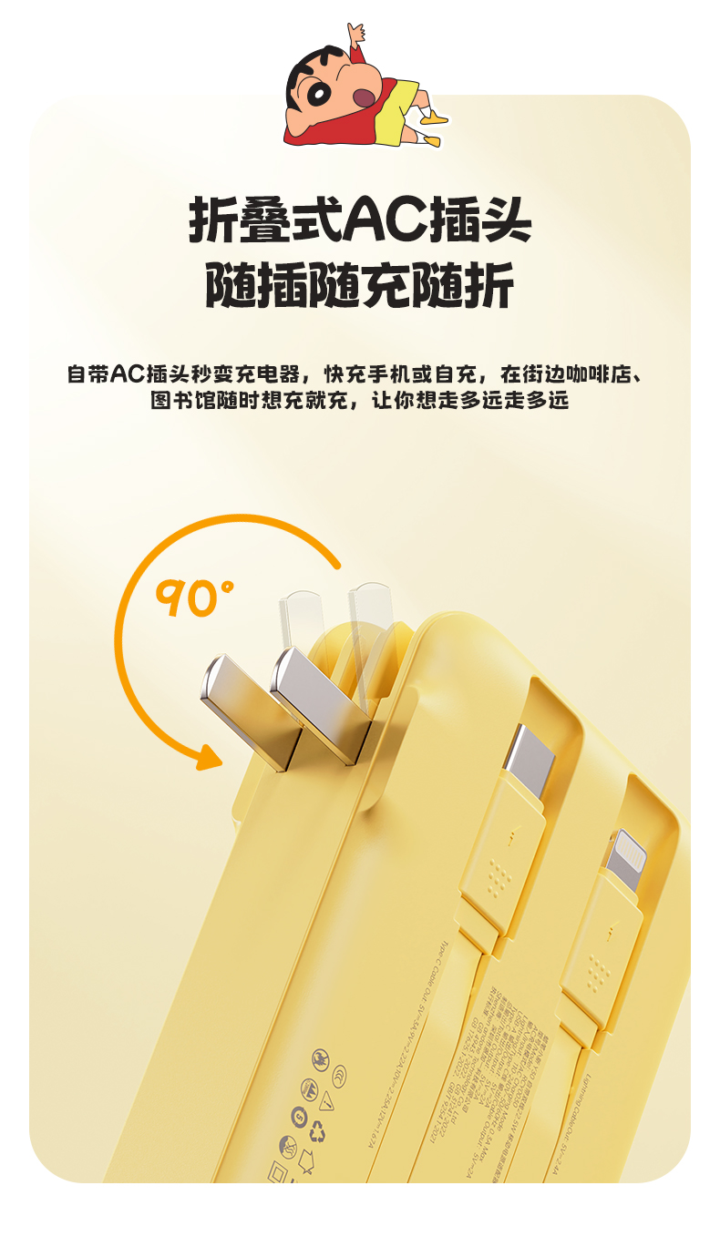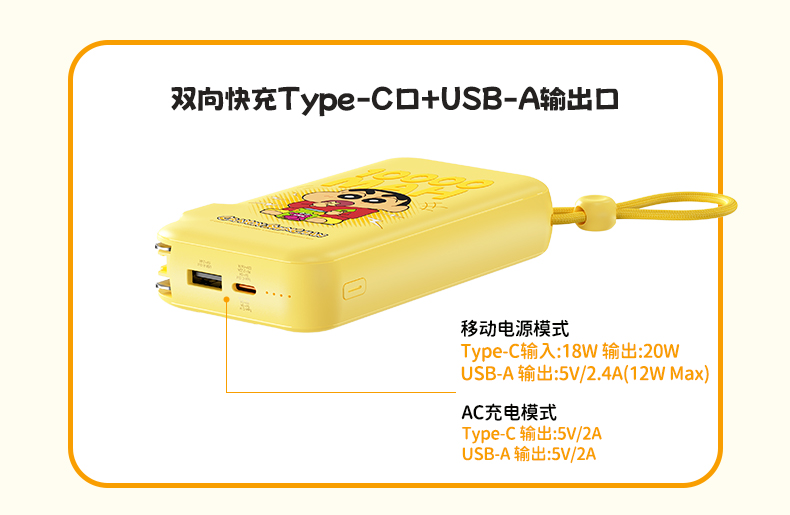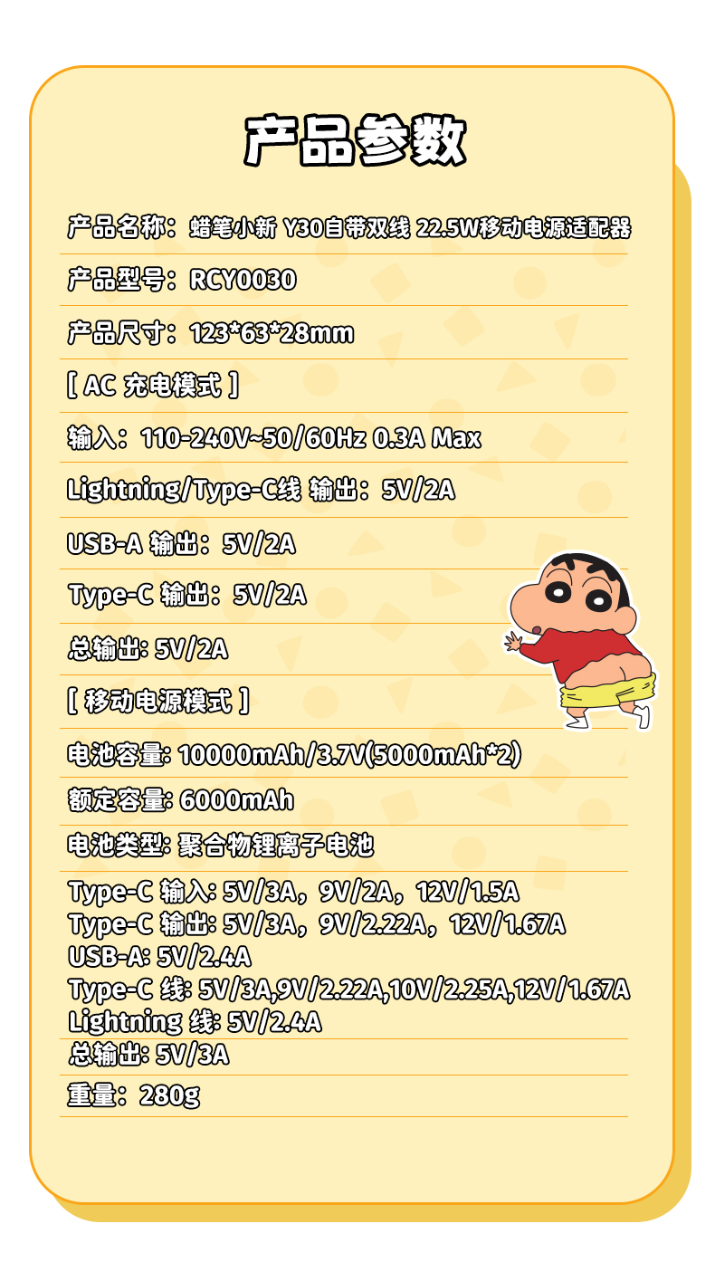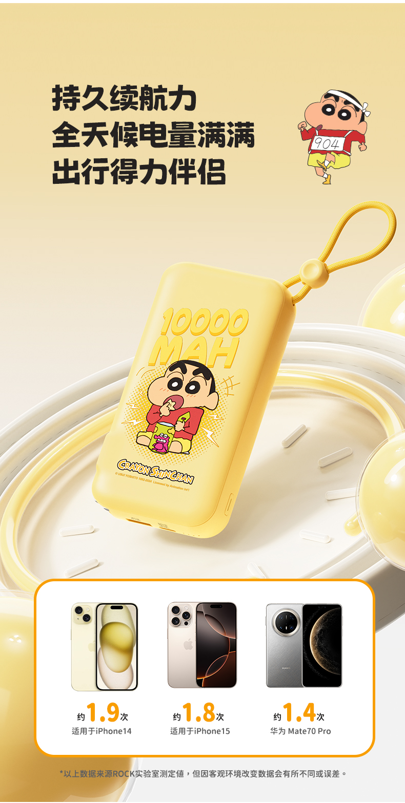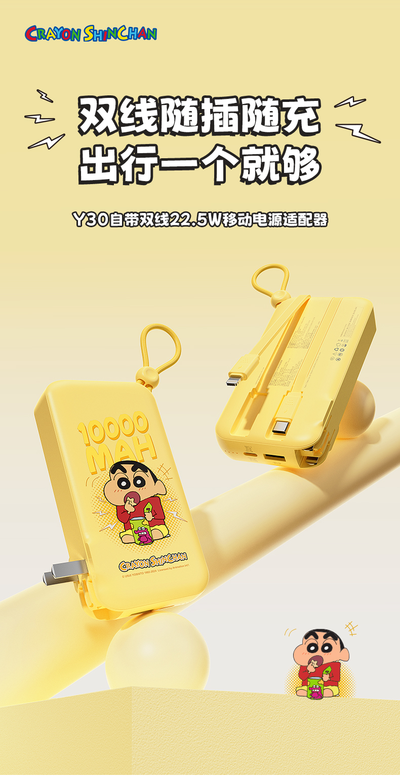 ROCK 蜡笔小新 自带双线22.5W 移动电源适配器 Y30 10000mah (中规插头)