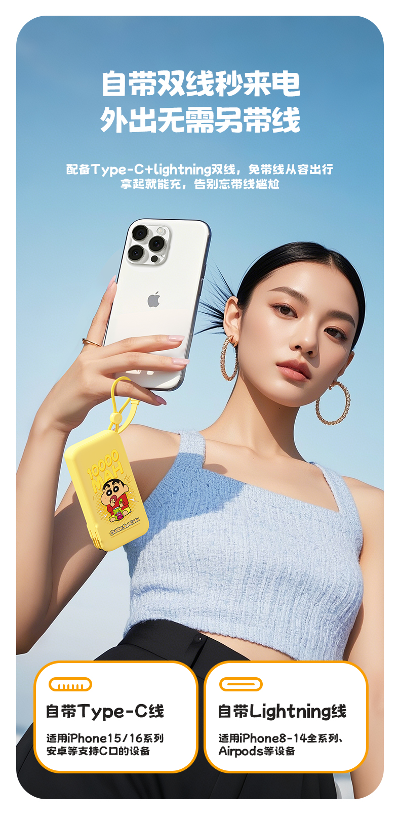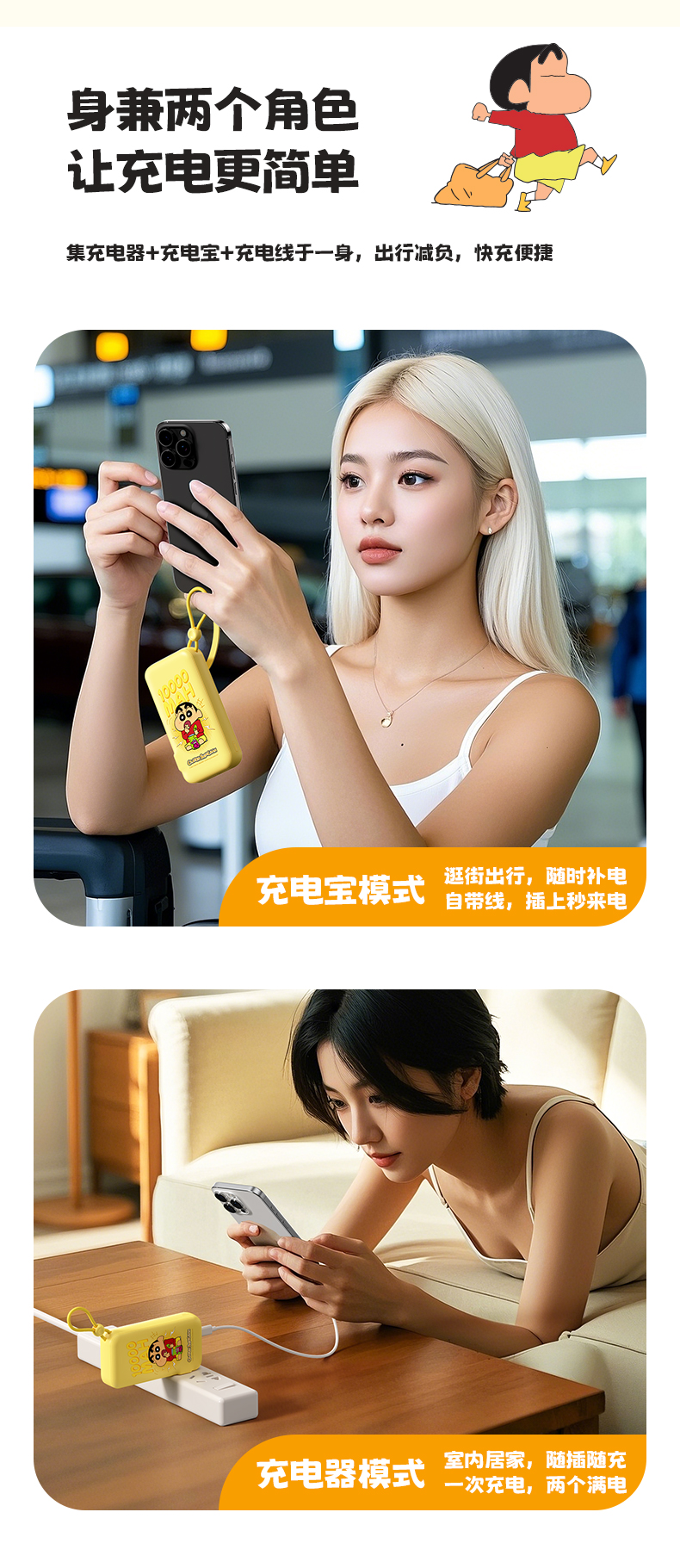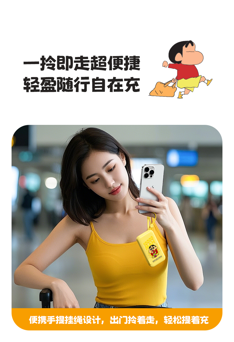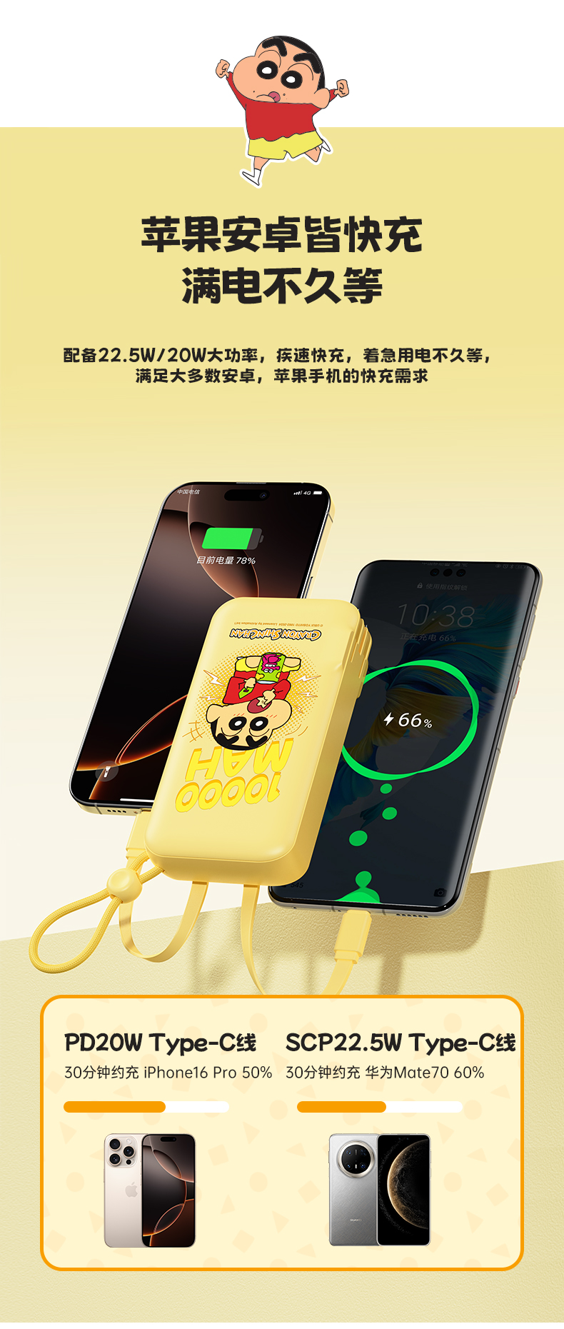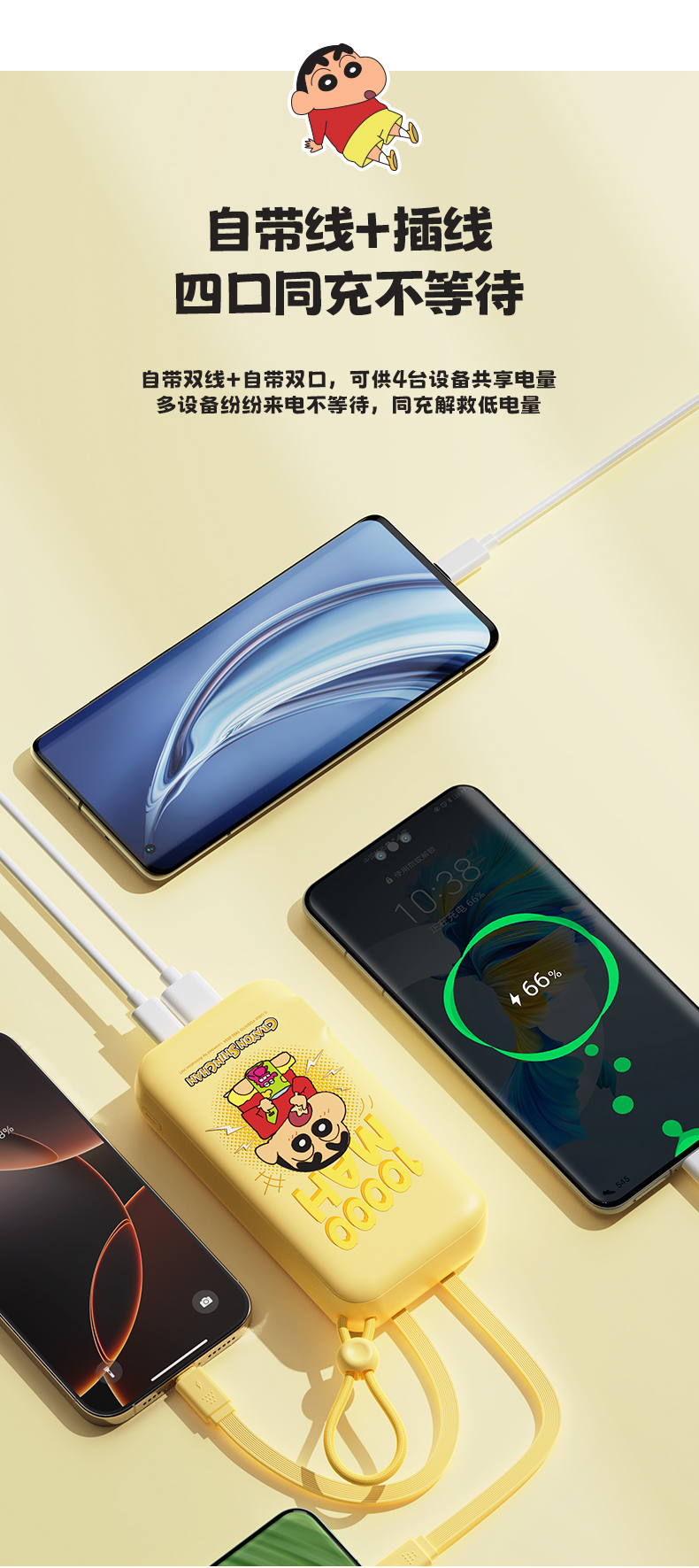 ROCK 蜡笔小新 自带双线22.5W 移动电源适配器 Y30 10000mah (中规插头)