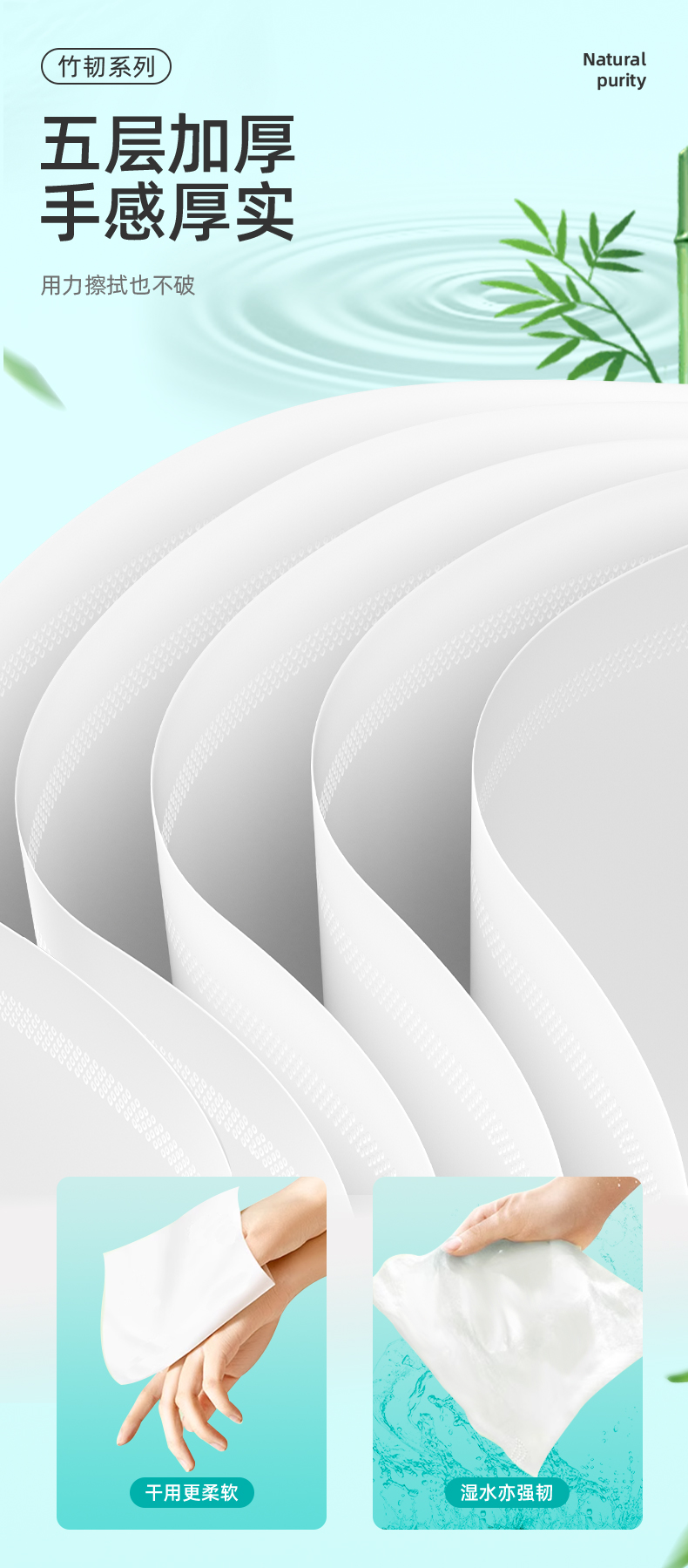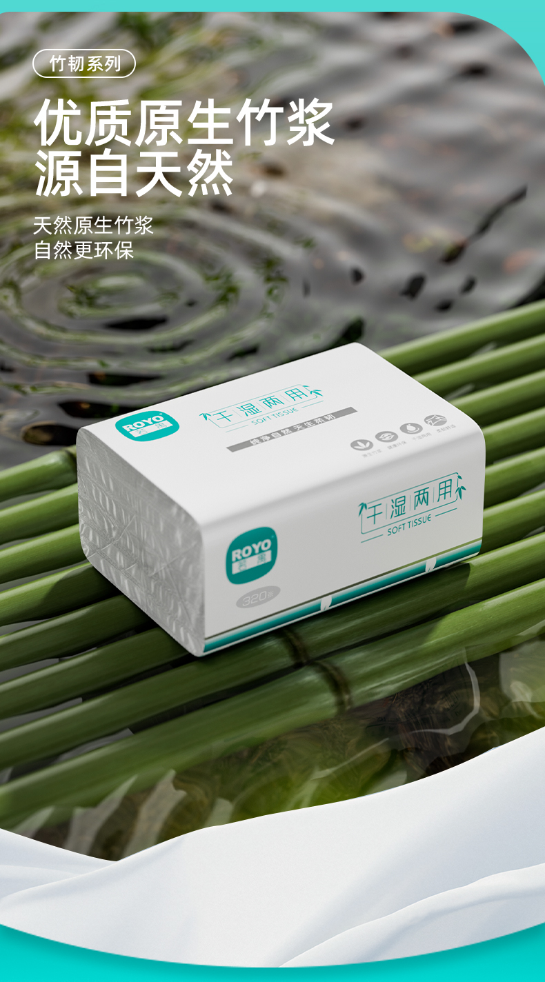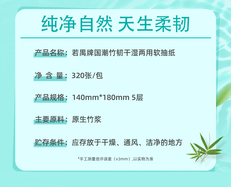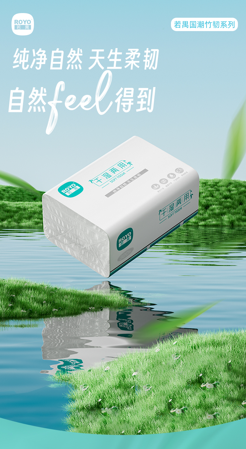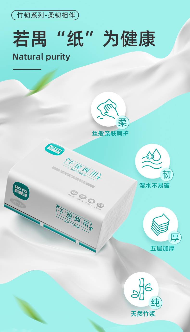 若禺软抽纸国潮竹韧系列5层加厚320张/包8包/提到手12提干湿两用柔韧舒适RR1401