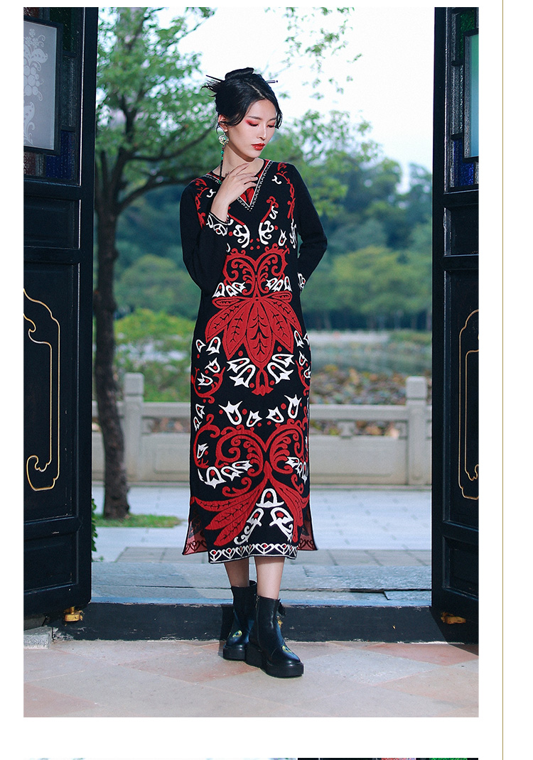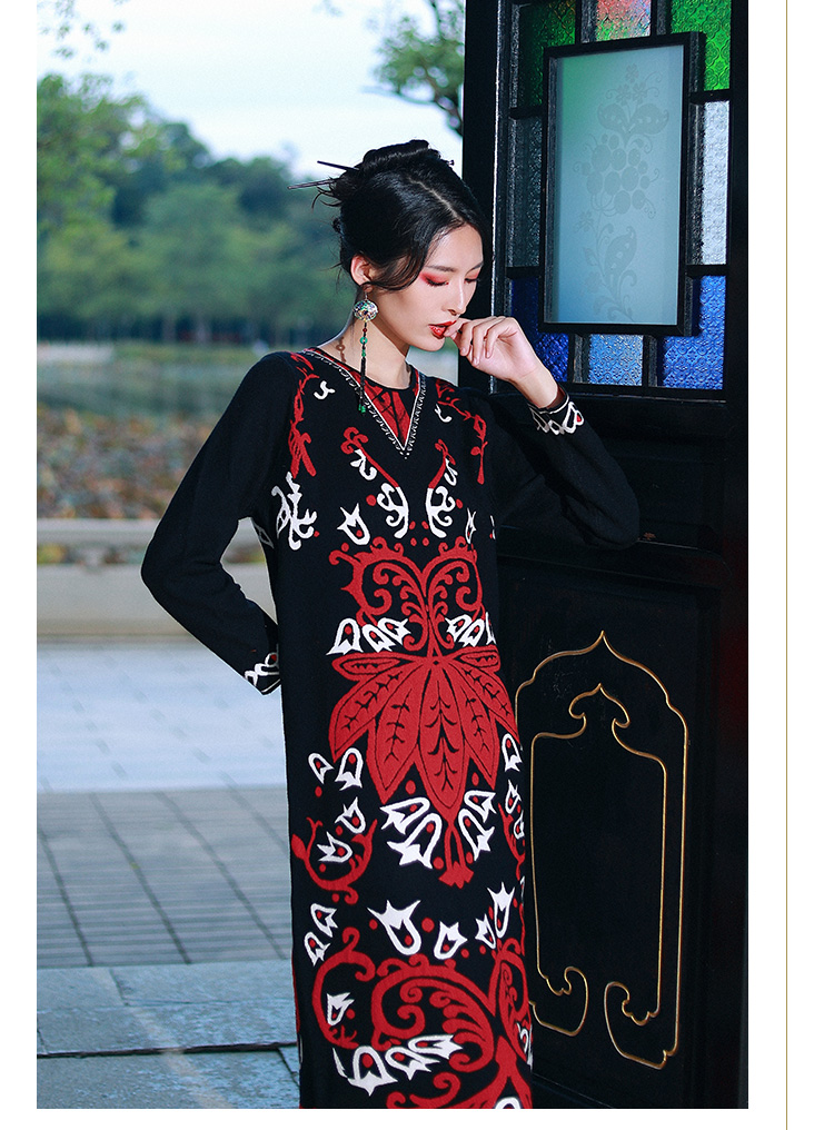 雅致旖旎长款针织花裙 | 杨老师同款 | 袖型可选:长袖短袖 | 现货加急发