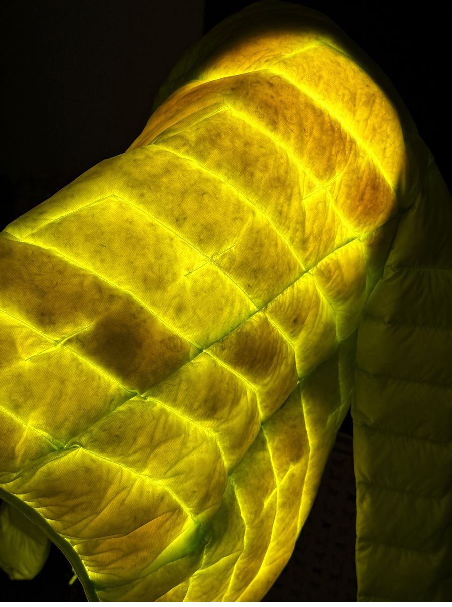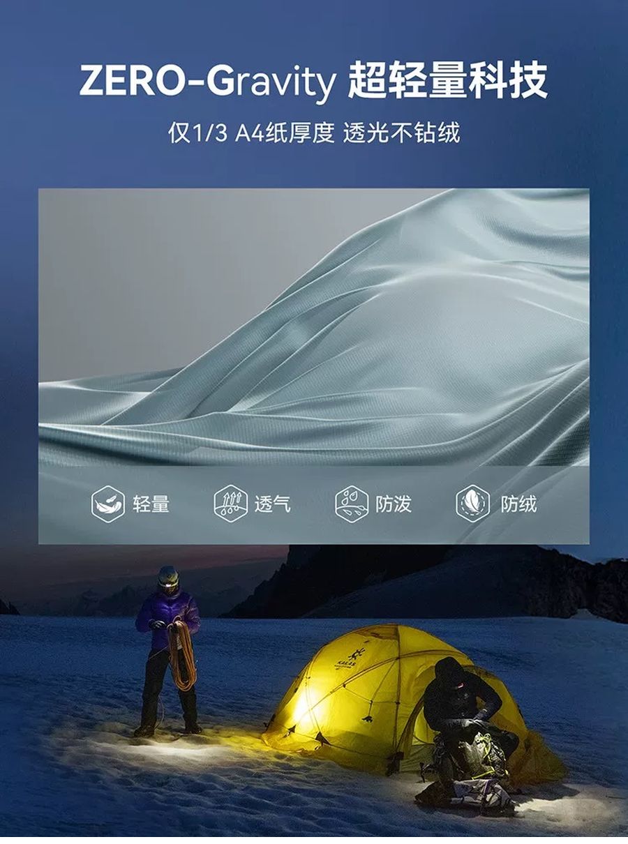 透气透光但是不透绒,这种超细的丹尼尔纱线手感真的巨巨巨好!!耐磨且抗撕裂,穿在身上就像裹了一团云,防水还保暖。